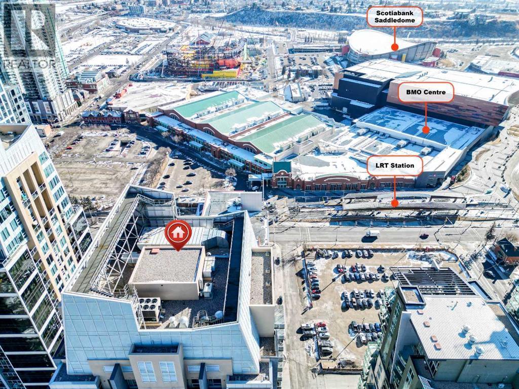 Welcome to Alura in Calgary's vibrant Beltline! This beautifully maintained 2-bedroom, 2-bathroom condo offers an exceptional downtown lifestyle featuring fantastic views of the Scotiabank Saddledome and Stampede Park. Recently refreshed with fresh paint and brand-new carpets, the home feels bright, clean, and move-in ready. The modern kitchen is perfect for entertaining, complete with quartz countertops, stainless steel appliances, and ample cabinetry. The spacious primary bedroom features a large walk-in closet and a private 4-piece ensuite, while the thoughtful floor plan provides excellent separation between the two bedrooms. Floor-to-ceiling windows fill the space with natural light and lead to a private balcony, ideal for relaxing or barbecuing while enjoying the downtown atmosphere. Residents of Alura enjoy a wide range of premium amenities including a fully equipped fitness centre, concierge service, 24-hour security, central air cooling, and a second floor rooftop terrace. The location is unbeatable—just steps from the Scotiabank Saddledome, the soon to open "Scotia Place", the Calgary C Train Victoria Park/Stampede Station, shopping, dining, and recreation at the MNP Community Sport Centre. This unit also includes one titled underground parking stall, an assigned storage locker, and in-suite laundry for added convenience. Don’t miss your opportunity to own in one of downtown Calgary’s most desirable buildings—book your private showing today! (id:6769