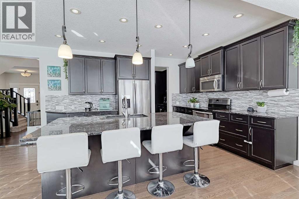 This is it!! Welcome to this amazing STERLING built home in the sought after community of Mountainview!! Featuring 4 bedrooms, 3 bathrooms, an open floor plan and over 3400 sq ft of developed space, this is the perfect home for busy families! As you walk through the front door, you'll be immediately impressed by the high ceilings and open, airy feel. The main floor features an open concept living, dining and kitchen area with loads of windows allowing sunlight in all day long from the sunny south backyard. The kitchen will impress the most discerning buyers with the oversized sit-up island, soft close drawers, walk through butler’s pantry with coffee bar and upgraded appliance package including induction stove top and double drawer convection oven. The living area features a beautiful fireplace creating a cozy atmosphere to relax. The bright dining area leads to a landscaped south backyard with pergola for privacy, gas outlet for your BBQ and plenty of room for the kids to play. Completing this floor is a ½ bath and oversized boot room with built-ins right off the oversized double garage. Heading upstairs, you’ll immediately notice the upgraded plush carpeting and extra wide staircase that leads to a well sized, open bonus room perfect for kids to play or a quiet place to relax. There are 2 ample bedrooms that share a 4-piece bath, a large upper laundry room and a primary suite to die for. The primary bedroom is the perfect retreat with room for your king bed, a large walk-in closet and a luxurious 5-piece bathroom you’ll never want to leave. The lower level has been almost fully developed with smart vinyl plank flooring, a big open TV area and plenty of room for toys or a games table plus an ample 4th bedroom. The lower bathroom has been fully roughed-in so it just needs your finishing touch to be the 4th bathroom in the home. If this weren’t enough, this home also comes with air conditioning to make summer’s a breeze! All of this, plus a beautiful n eighbourhood, will make you happy to call this home. Book your private showing today!! (id:6769
