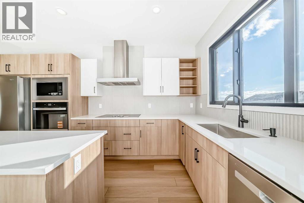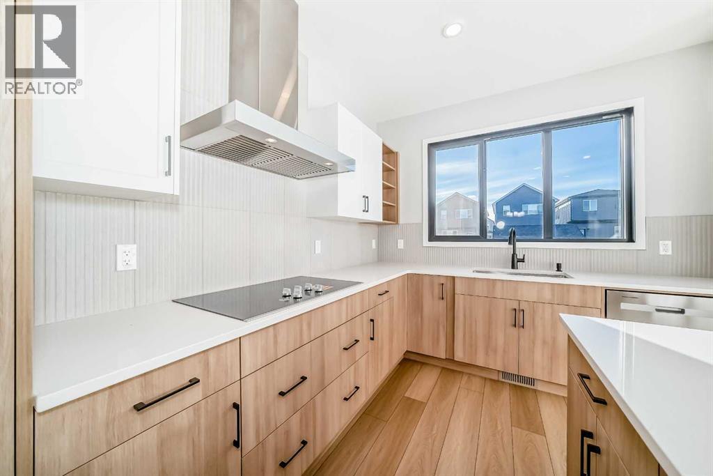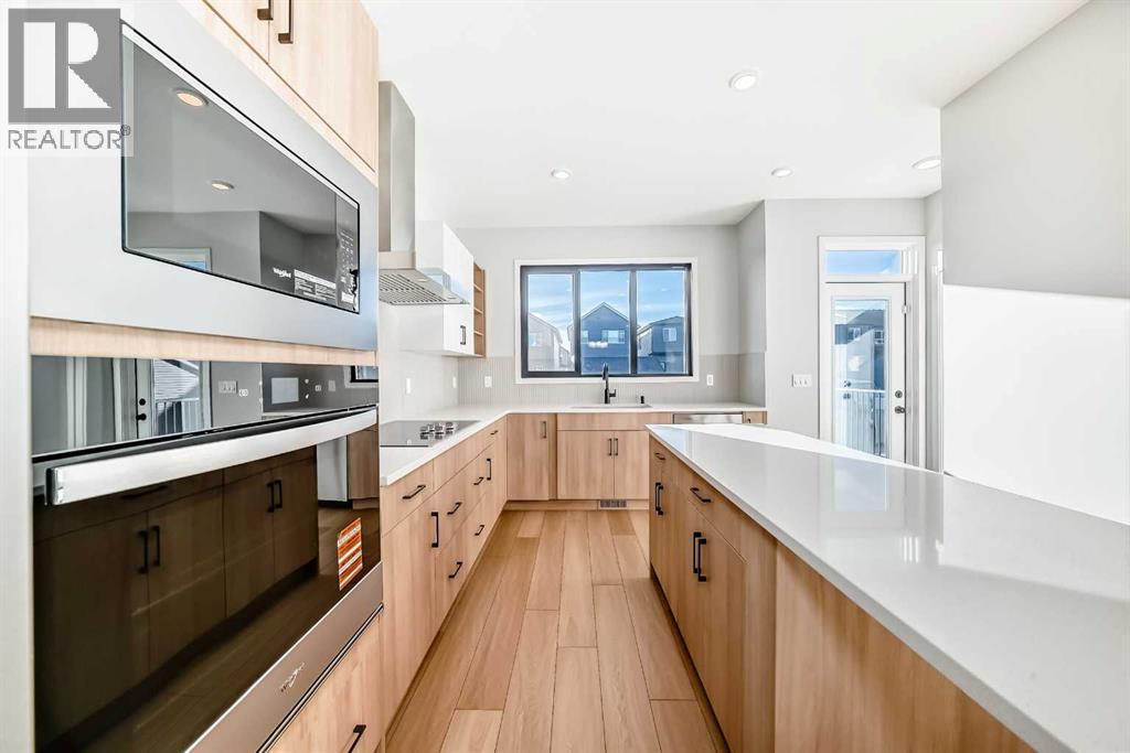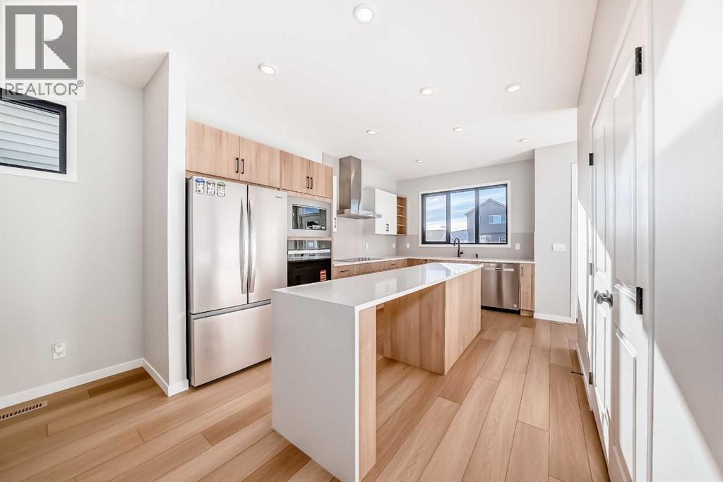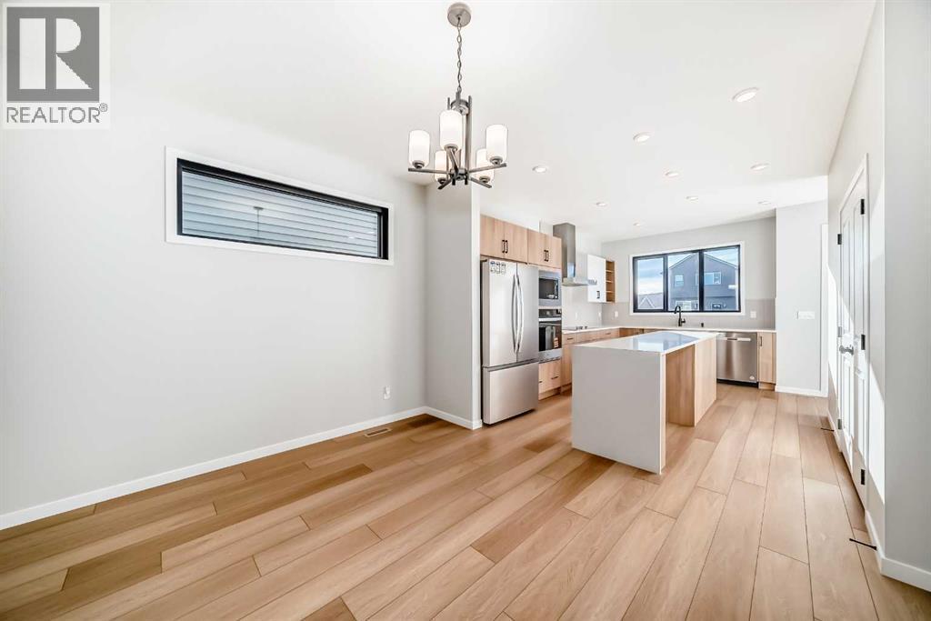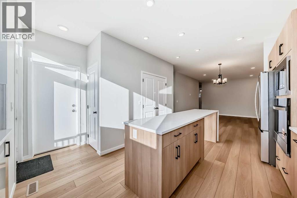 Open House March 14-15 from 1-3pm. Welcome to this brand new, upgraded home in the vibrant community of Pine Creek! Known for blending nature, family living, and modern homes, Pine Creek offers scenic pathways, nearby parks, and easy access to city conveniences. This beautifully designed property features extensive upgrades throughout and is perfect for homeowners looking for a mortgage helper opportunity with its thoughtfully designed basement living space. The main floor showcases luxury vinyl plank flooring throughout the entire main and second floor, a spacious layout, and a gorgeous extended kitchen with two-tone cabinetry, waterfall island with additional cabinet storage, upgraded backsplash tiles, built-in appliances, and a modern upgraded hood fan. A larger walk-in pantry adds both convenience and storage. The home also features upgraded black window frames, adding a striking modern exterior and interior aesthetic. A versatile additional room on the main floor is complemented by a full bathroom with an upgraded standing shower and full wall tile finish, perfect for guests or multi-generational living. Upstairs, you’ll find spacious bedrooms and an upgraded ensuite featuring a beautifully finished standing shower with full wall tiles. The extended basement bedroom enhances the lower level’s functionality, making it ideal for extended family or rental potential. Both the main floor and basement kitchens feature stylish two-tone cabinetry, creating a cohesive and upscale look throughout. Additional highlights include: Upgraded washer and dryer sets for both main floor and basement, Upgraded stair carpet, Pressure-treated backyard deck with sleek black railings, Upgraded exterior stone detailing, Doorbell camera system for both the main entrance and basement entrance.This move in ready home combines style, functionality, and income potential in one of Calgary’s growing communities. (id:6769