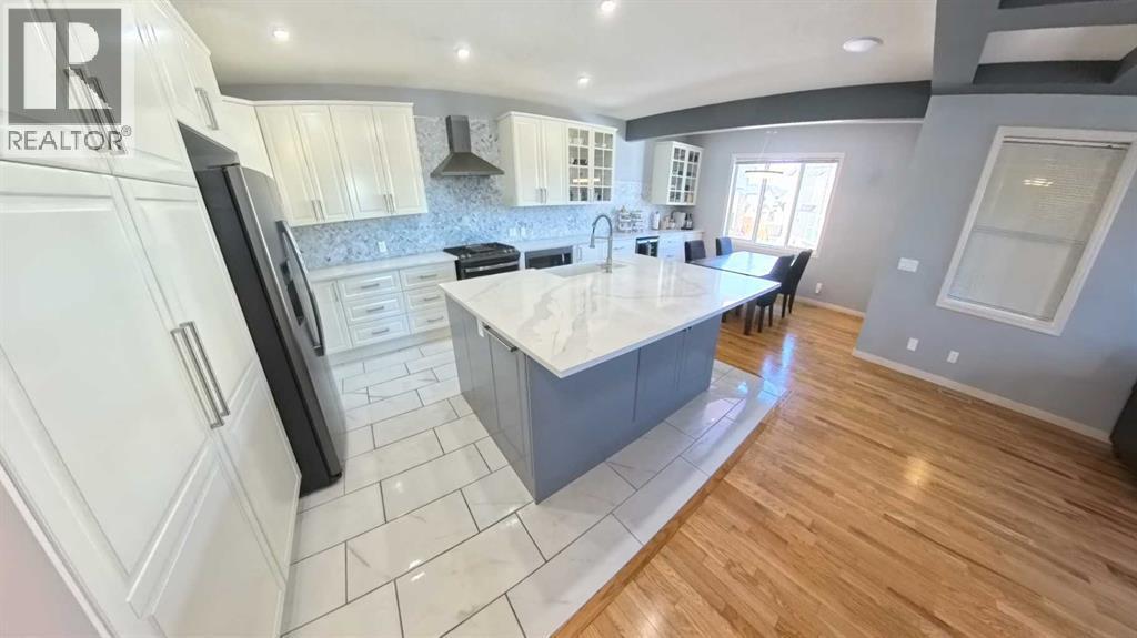 Spacious, move-in-ready family home offering 3,300+ sq ft of fully developed living space, perfectly positioned next to a green strip with only one neighbour, a rare combination of privacy, light, and open space. With 5 bedrooms plus a den, this home is built for family living, giving everyone room to spread out while keeping the layout practical and connected. At the center of it all is a true family-sized kitchen for people who love to cook and gather. Thoughtfully modernized and designed for high-traffic days, it features a huge breakfast bar and an extended countertop that easily handles big meals, baking projects, and hosting. Enjoy the convenience of a built-in wine fridge, plus a dedicated morning coffee area that keeps the daily routine organized and effortless. With generous prep space and an open, welcoming feel, this kitchen is made for everything from weeknight dinners to holiday entertaining. Comfort is covered year-round with air conditioning, and day-to-day convenience shines with hot water on demand. Storage is also a standout: the 2-car garage includes plenty of customized storage, and the utility room offers additional built-in organization—perfect for keeping seasonal items, tools, sports gear, and household supplies neatly out of sight. Downstairs, the fully developed walkout basement adds bright, flexible living space with direct backyard access—ideal for a media room, play zone, teen hangout, guest area, or home gym. Step outside to enjoy your private outdoor setup, featuring a covered deck that extends your living and or storage space. Unwind year-round in the hot tub, and for pet owners, appreciate the practicality of a dedicated dog run. The zero-scaped yard keeps maintenance low, so you spend more time enjoying the home and less time on yard work. Location adds even more value: school buses for all grades stop just steps from the house, making mornings and after-school routines simple. With exceptional square footage, smart upgrades, priv acy beside the green strip, and family-first features throughout, this home delivers the space, comfort, and lifestyle you’ve been looking for. (id:6769