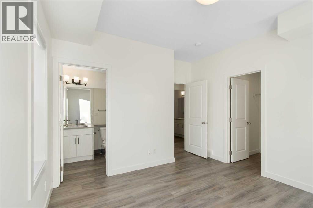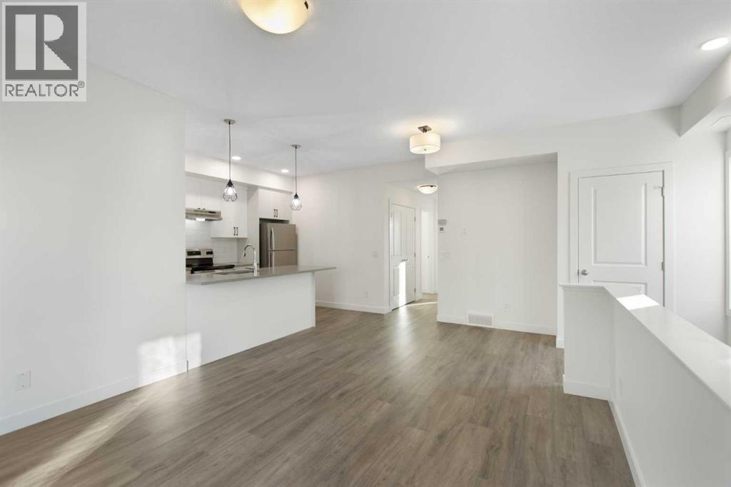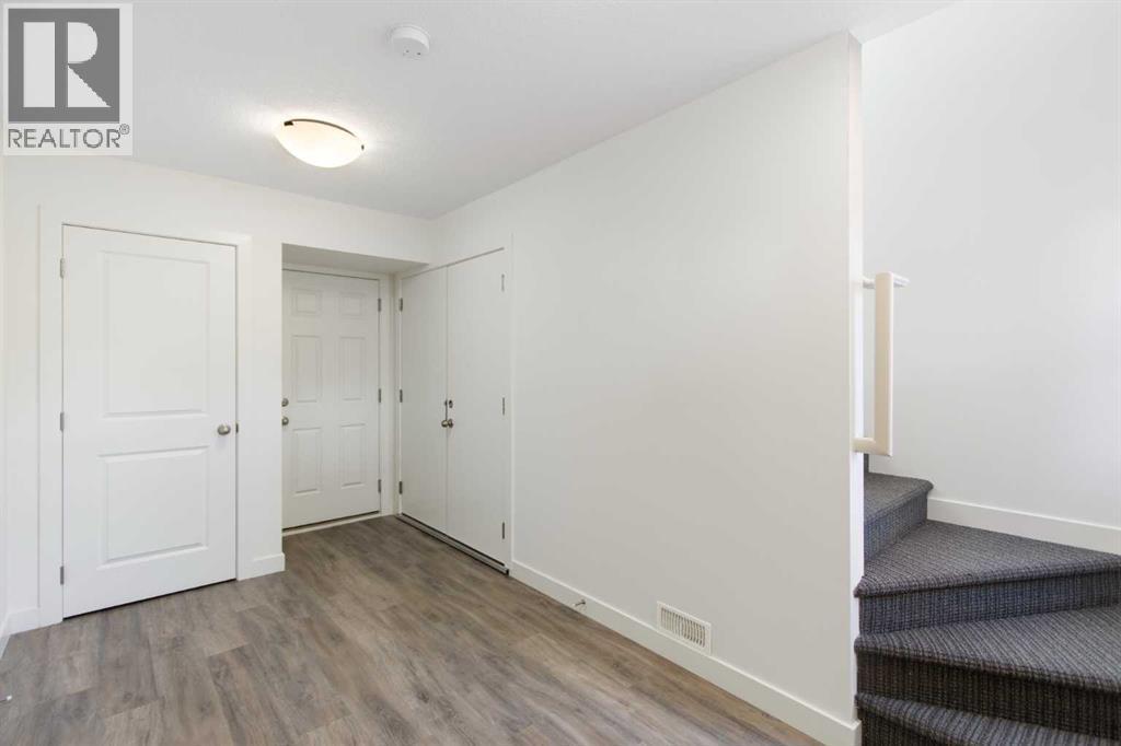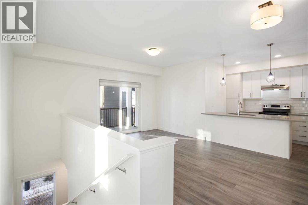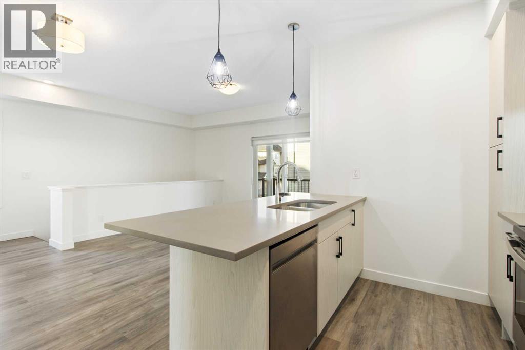 2 Bedroom 2 Bath END unit townhouse with a garage that offers the perfect blend of style and function, with most of the layout conveniently situated on a single level. Step inside and up 1 flight of stairs to the main floor and you will discover an open-concept living area with and a fully equipped kitchen boasting quartz countertops, soft-close drawers, and stylish two-tone cabinets highlighted by pendant lighting. An adjacent, flexible space is perfect for a spacious dining area or a home office. This home has two large bedrooms and two full bathrooms. The primary bedroom features a massive walk-in closet and a 4-piece ensuite. A spacious laundry room adds to the convenience. This unique floor plan is designed to feel like a modern apartment but with the added benefits of a main floor storage/flex area and direct access to an oversized, extended single-car garage.This home is perfectly situated to offer the best of both convenience and community. It's located right next to a future school site, with transit options directly at your doorstep for effortless commuting. Enjoy a short two-minute walk to Bow Valley High School, and a quick five-minute trip to the Spray Lakes Sports Centre for all your recreational needs. For bigger city amenities, you're only 20 minutes from South Calgary, and the mountains are within easy reach, with Canmore just a 40-minute drive away. (id:6769