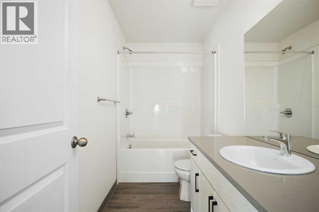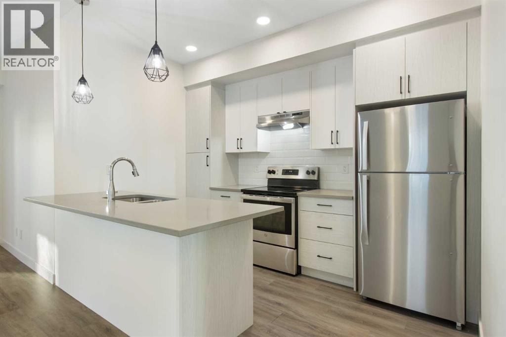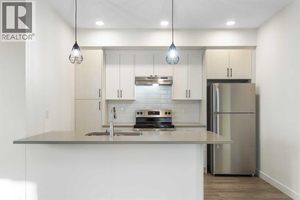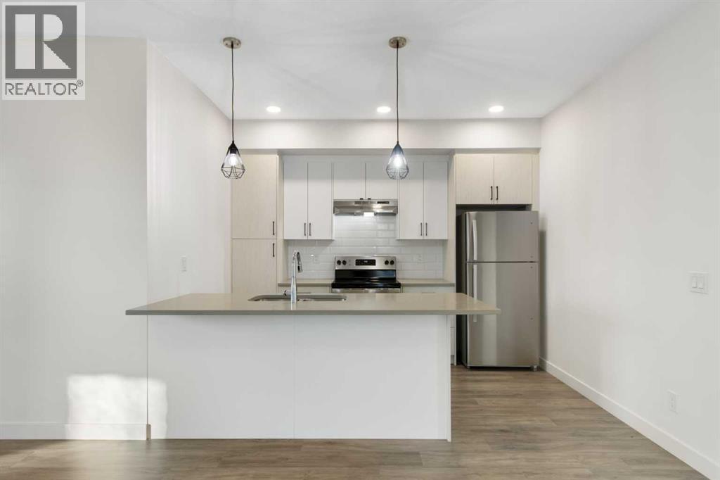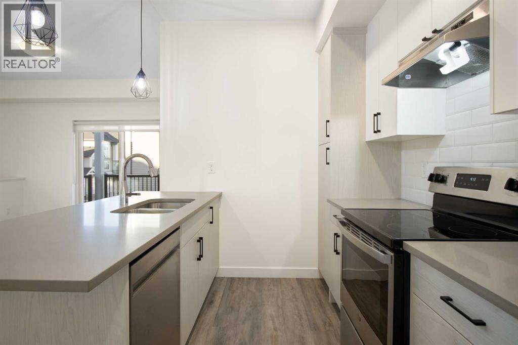 2 Bedroom 2 Bath END unit townhouse with a garage that offers the perfect blend of style and function, with most of the layout conveniently situated on a single level. Step inside and up 1 flight of stairs to the main floor and you will discover an open-concept living area with and a fully equipped kitchen boasting quartz countertops, soft-close drawers, and stylish two-tone cabinets highlighted by pendant lighting. An adjacent, flexible space is perfect for a spacious dining area or a home office. This home has two large bedrooms and two full bathrooms. The primary bedroom features a massive walk-in closet and a 4-piece ensuite. A spacious laundry room adds to the convenience. This unique floor plan is designed to feel like a modern apartment but with the added benefits of a main floor storage/flex area and direct access to an oversized, extended single-car garage.This home is perfectly situated to offer the best of both convenience and community. It's located right next to a future school site, with transit options directly at your doorstep for effortless commuting. Enjoy a short two-minute walk to Bow Valley High School, and a quick five-minute trip to the Spray Lakes Sports Centre for all your recreational needs. For bigger city amenities, you're only 20 minutes from South Calgary, and the mountains are within easy reach, with Canmore just a 40-minute drive away. (id:6769