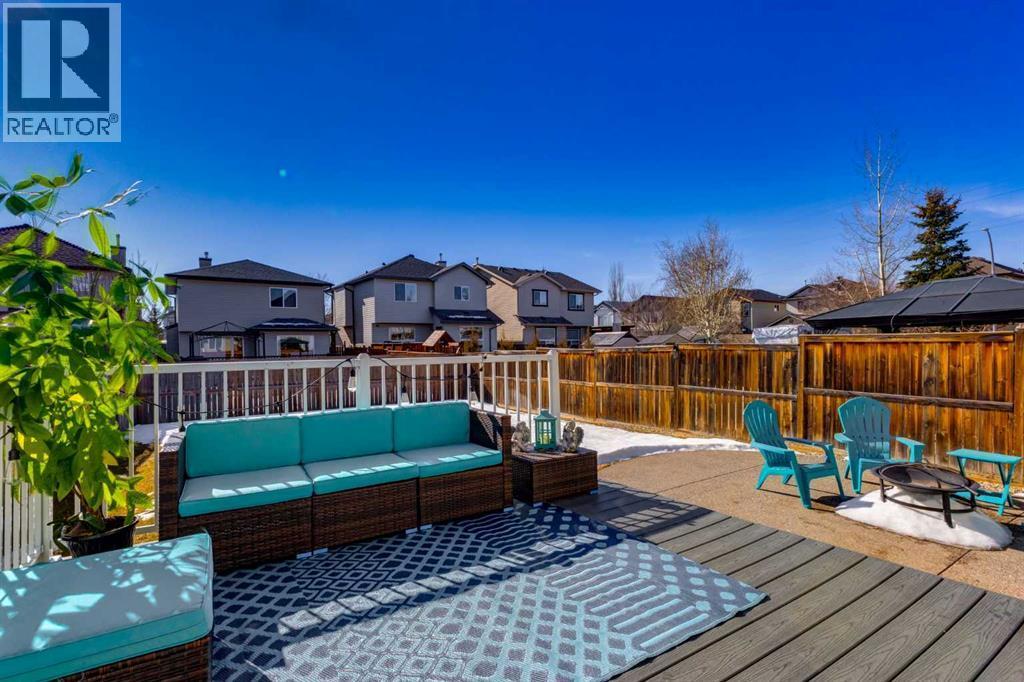 Beautifully updated and perfectly positioned to capture south-facing sunshine, this inviting family home in Tuscany blends modern upgrades with thoughtful design and comfortable living spaces. Step inside to discover a bright main floor where new luxury vinyl plank flooring flows throughout the primary living areas. The welcoming living room is anchored by a cozy corner fireplace and large south-facing windows that fill the space with natural light. The fully renovated kitchen is the heart of the home, featuring soft grey cabinetry accented with sleek polished chrome hardware, elegant quartz countertops, and a spacious island ideal for gathering. Glass-front upper cabinets add a refined design touch, while a large corner pantry provides generous storage. A full suite of stainless steel appliances completes the space. The adjacent dining area opens through double sliding patio doors open to an oversized composite deck, creating seamless indoor–outdoor living and a sunny backyard perfect for entertaining. A practical mudroom with main floor laundry connects directly to the double attached garage, while a tucked-away two-piece powder room adds convenience for guests. Upstairs, new plush carpeting leads to a spacious bonus room with two large windows—ideal as a family media space or children’s play area. The primary suite offers a relaxing retreat with a beautifully updated ensuite featuring a soaker tub, glass & tile shower, and quartz vanity. A large walk-in closet is accessed from the ensuite. Two additional bedrooms and a renovated four-piece bathroom complete the upper level. The fully developed lower level adds flexibility with a large recreation room, an additional bedroom or home office, and a three-piece bathroom. Located near the Tuscany Club, scenic pathways, excellent schools, and transit at Tuscany LRT Station, the home also offers quick access to the Calgary Farmers' Market West, WinSport Canada Olympic Park, and Stoney Trail. Extras: New Roof 2021 | A/C 2 023 | New Fridge 2026 | New Hot Water Tank 2024 New LVP 2024 | New Carpet Upper Floor 2025 | New Kitchen 2024 } New Bathrooms 2024 | New Microwave 2024Bright, beautifully renovated, and move-in ready—this is modern Tuscany living at its best. (id:6769