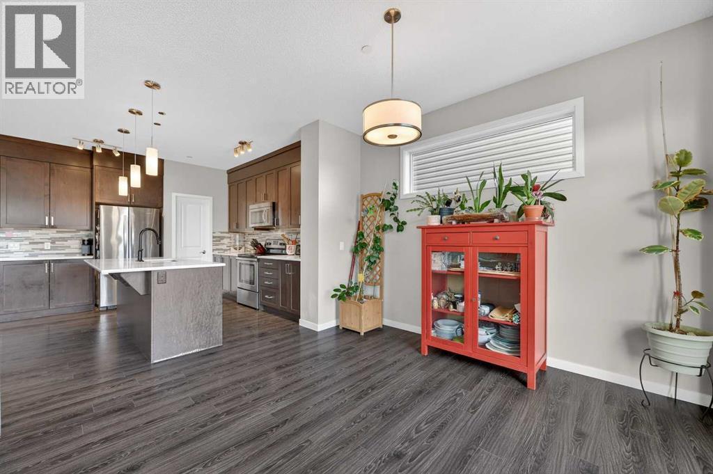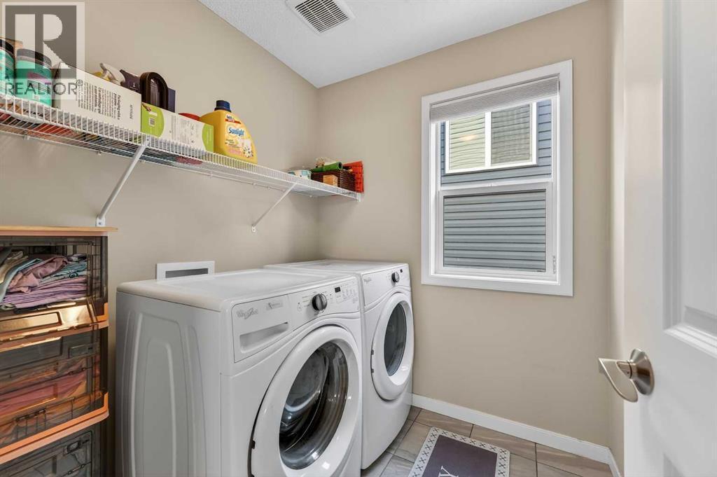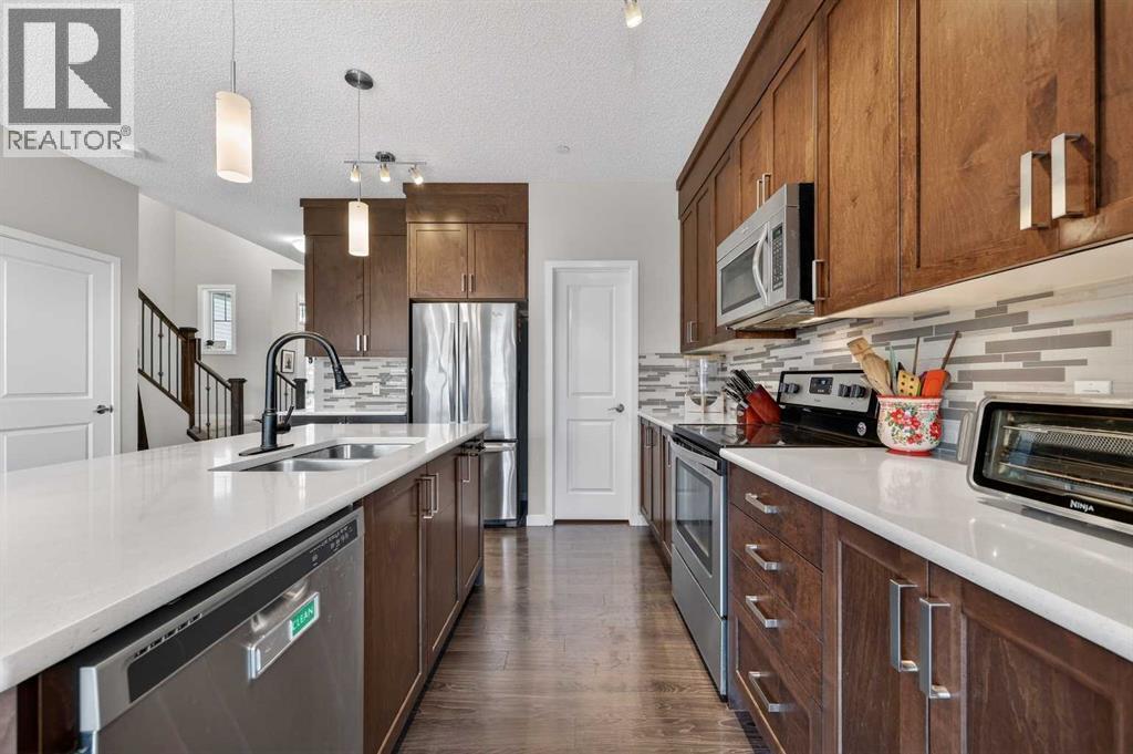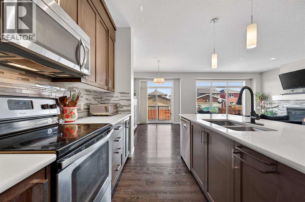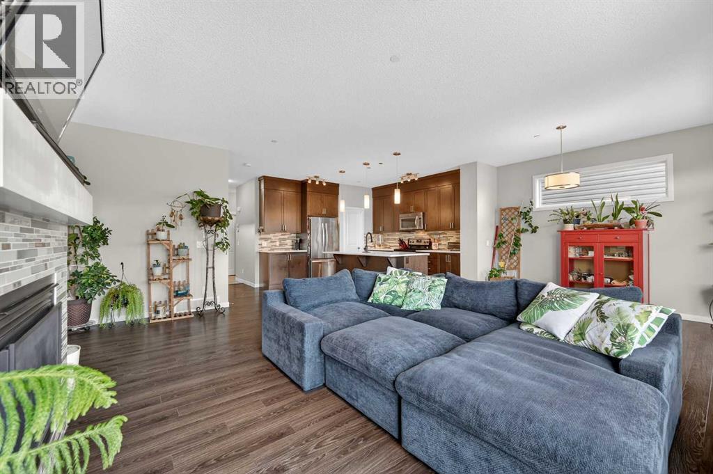 This very well maintained Cochrane 2-storey home in family-friendly Fireside offers over 2,066 square feet of functional above-grade living space designed for modern comfort. Built in 2016, your next home features a smart layout and numerous builder upgrades throughout. The open-concept main floor is anchored by 9-foot ceilings and large windows that fill the space with natural light. The kitchen is a chef’s dream, featuring quartz countertops, a massive island with a breakfast bar, stainless appliances, and a walk-through pantry for effortless organization. Adjacent to the kitchen, the spacious living room is centered around a cozy fireplace and flows seamlessly into the dining area. From here, step out onto the elevated deck to enjoy summer barbecues in the large, fully fenced backyard. A well-appointed mudroom and a 2-piece powder room complete the main level.Upstairs, the family retreat begins with a generous central bonus room that provides a versatile space for a home office, media area, or playroom. The west-facing primary bedroom is a true standout, offering mountain views, a large walk-in closet, and generous 5-piece ensuite with double vanities and a soaking tub. Two additional large bedrooms, a central 4-piece bathroom, plus a dedicated laundry room ensure convenience for the whole family. The undeveloped basement with 8-foot ceilings offers nearly 900 square feet of additional potential for a future recreation room, gym, or guest suite. Practical features include an insulated double attached garage.. Located close to schools, parks, and shopping with easy access to the walking trails and nature that Cochrane is known for. This home is move-in ready and perfectly positioned for your family's next chapter. (id:6769