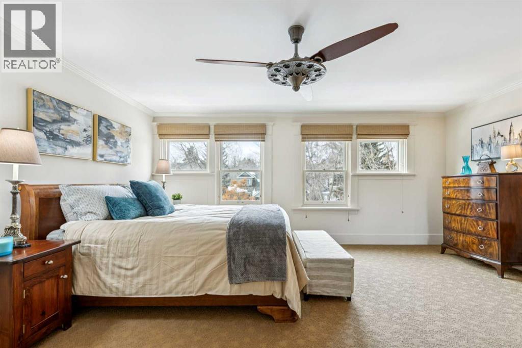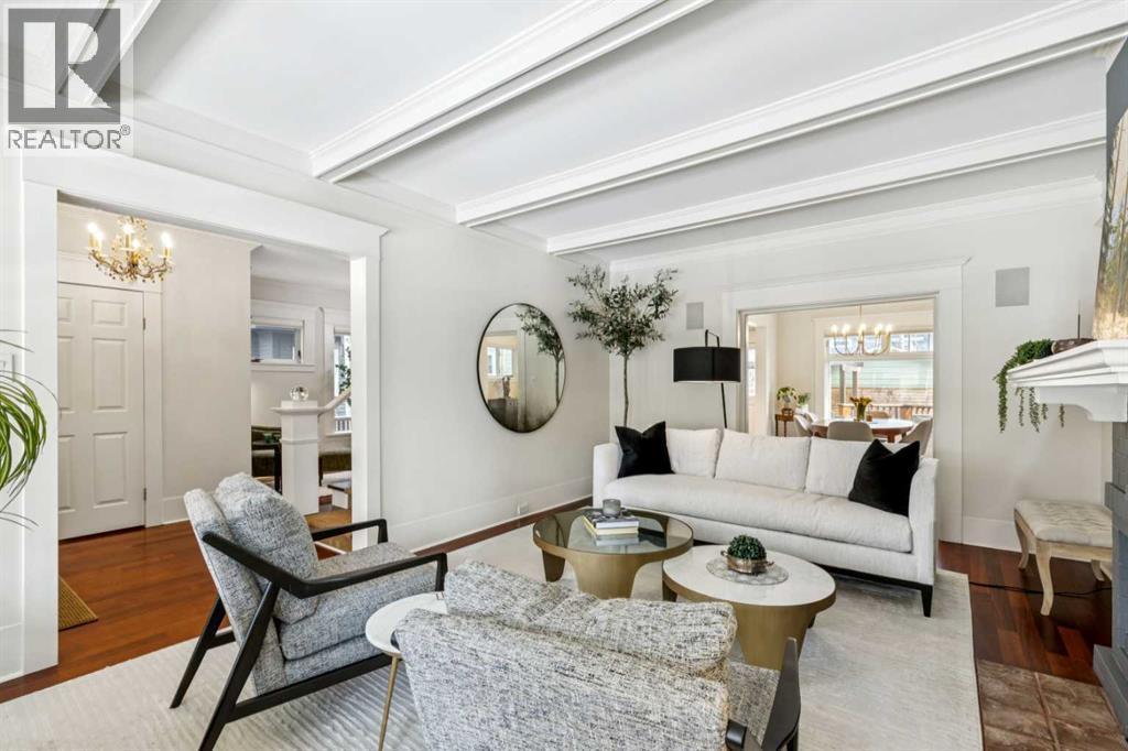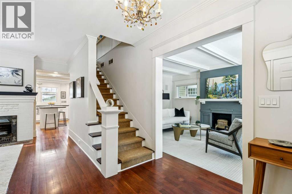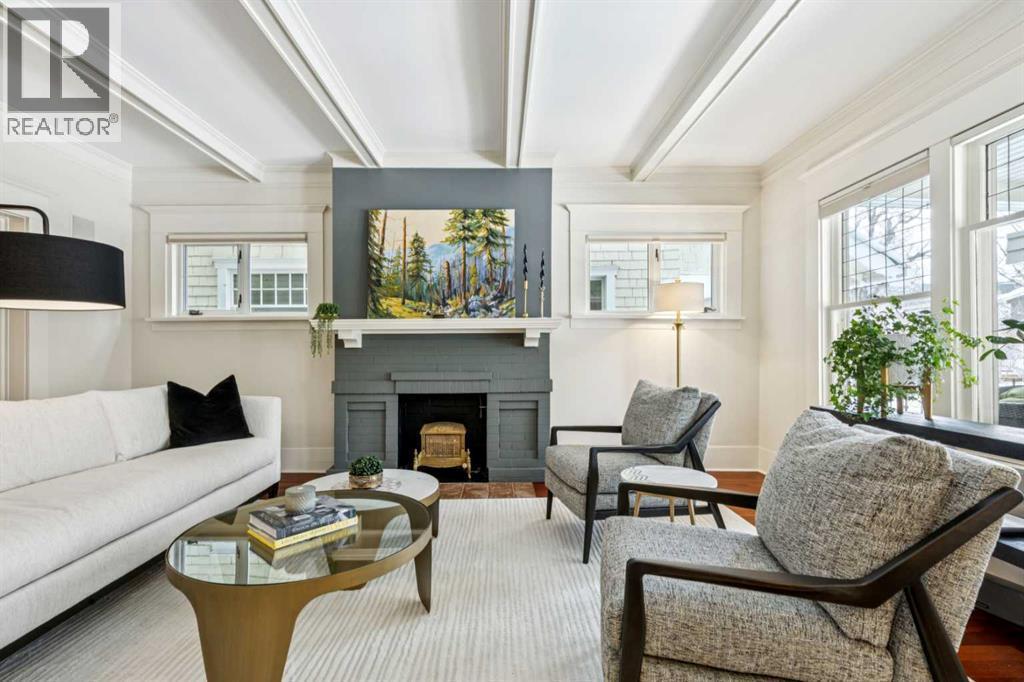 OPEN HOUSE Saturday March 14th from 2-4. Don't miss out on this charming, beautiful move in ready 2 story, 4-bedroom home boasting 2946sqft of living space. When you enter the home, you will notice that the bright living room and large dining room have maintained their charm, with impressive details including exotic hardwood floors, coffered ceilings and two gorgeous decorative fireplaces. On this level, there is also an inviting sitting room, half bath and spacious updated kitchen with granite, stainless steel appliances, island and nurtural cabinetry. The upper level has an ideal layout with a huge master bedroom with a walk-in closet, an extra closet and a spa like ensuite. This level is also home to 2 more good sized bedrooms, laundry room and a spacious family bath perfect for two kids to share. The lower level includes a large family room, den/bedroom, loads of storage and an immaculate updated mechanical room. Enjoy the low maintenance back yard with BBQ gas line, large west facing front porch and insulated double garage. Updates include Hunter Douglas blinds throughout, most windows on the main level updated with automated blinds and all upper-level updated double hung Pella windows that open from top to bottom for amazing summer airflow. Other updates are newer washer/dryer and fridge all 2024, redone front and back decks, new Pella front door and exterior paint all done in 2025, two sump pumps and back flow valve. Enjoy the stunning perennial rock garden in the front yard and treed back yard for summer privacy with quaking aspens, chokecherry, nine bark and rare river birch. Walk to amazing schools, river path, shopping and the Glencoe form this prestigious address. (id:6769