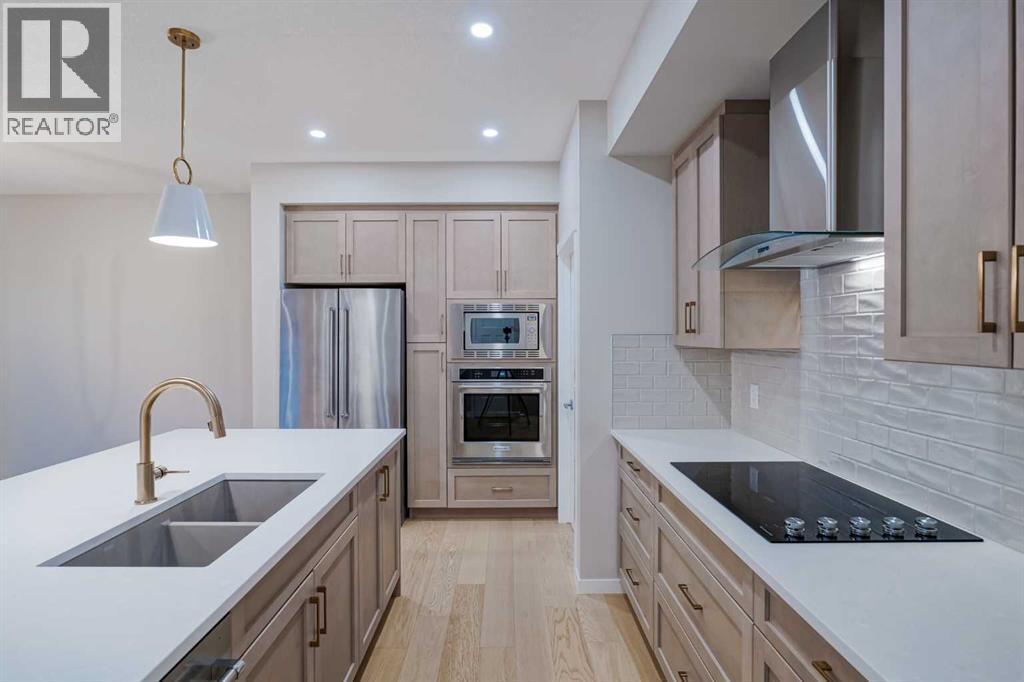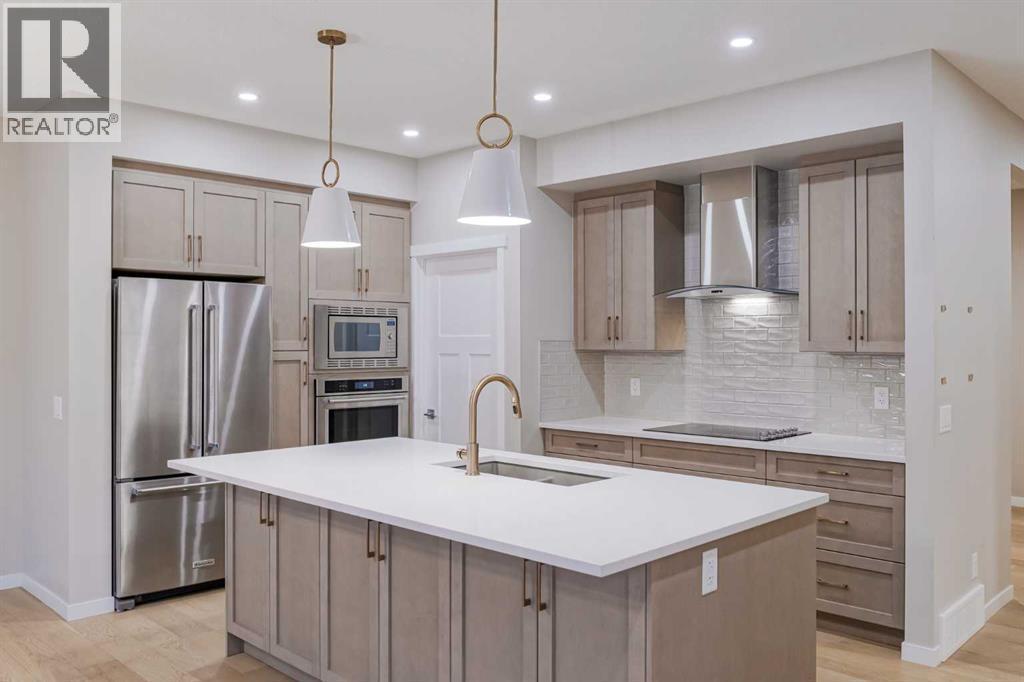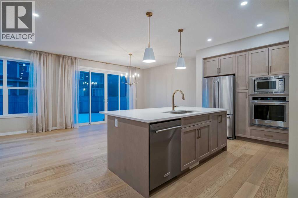 Welcome to 184 Magnolia Terrace, a former showhome where luxury, comfort, and thoughtful design come together in the most breathtaking way. This 6 bedroom masterpiece is not just a house, it is an experience. From the moment you step inside, you are greeted by rich European Oak hardwood floors stretching across the main level, beautifully contrasted by champagne gold hardware, designer lighting, and warm putty cabinetry that creates an elevated yet inviting ambiance. Every detail was carefully curated as a showhome, showcasing premium upgrades, refined finishes, and exceptional craftsmanship throughout. A versatile front flex room offers endless possibilities, whether you envision quiet mornings with coffee and a book, a stylish home office, or the perfect playroom. The heart of the home was designed to impress with an alternate kitchen layout featuring upgraded appliances, a built in oven and microwave, countertop stove, quartz counters, and a statement chimney hoodfan wrapped in timeless subway tile. The entire back wall is nearly all glass, flooding the space with natural light and creating a seamless connection to the outdoors. The dining area easily accommodates large gatherings, while sliding French patio doors extend your entertaining space outside on warm summer evenings. The living room is anchored by a dramatic floor to ceiling Carrara marble style tile fireplace, creating the perfect backdrop for cozy winter nights and elegant holiday décor. Upstairs, designer lighting and a modern wood railing lead to a stunning central bonus room with tray ceiling detail that thoughtfully separates the primary suite from the kids wing, offering both privacy and connection. The oversized primary retreat is filled with natural light and features a luxurious five piece ensuite with a freestanding tub centered between dual vanities, marble style tile, a glass shower, and elevated finishes that make every evening feel like a luxury hotel stay. The oversized walk in closet co nnects directly to the laundry room complete with sink, adding effortless convenience to everyday living. On the opposite side of the bonus room, three spacious bedrooms ensure no one is left out. The fully finished basement expands your living space even further with an oversized recreation room and two additional bedrooms, bringing the total to six and making this home perfect for guests, teenagers, or multi generational living. Imagine waking up here, hosting unforgettable gatherings, and watching your family grow in a home where every corner feels intentional and every day feels elevated. You will be proud to call 184 Magnolia Terrace home. (id:6769
