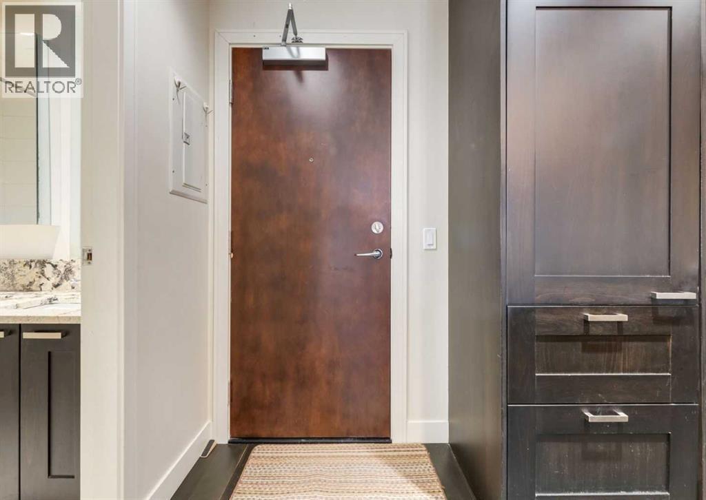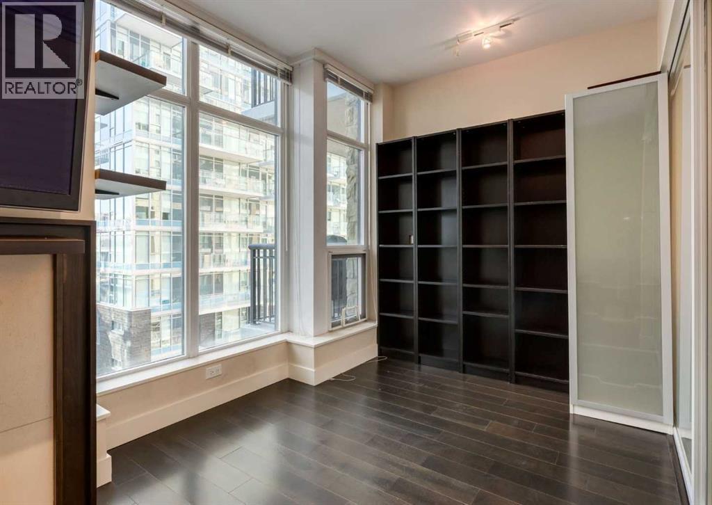 Welcome to Waterfront! Situated just steps away from Princes Island Park, Bow River pathways, Chinatown and minutes from the downtown core, restaurants, shopping and much more. This 1 bedroom + den end unit condo features just under 9ft ceilings, hardwood, tile and carpet flooring. A beautiful kitchen with quartz countertops, stainless steel appliances including built in Sub-zero fridge, gas stove and plenty of cabinet space. Open concept floorplan with a dining room and large living room with gas fireplace and access to a private balcony with views on the Bow River. Large primary bedroom, full 4pc bathroom, great sized den, in suite laundry and central A/C. Two side by side assigned underground parking stalls and a private storage locker on the same floor as the unit. This building has a wide range of amenities including a fitness centre, yoga studio, theatre room, hot tub, party room with a pool table, a 7th floor outdoor courtyard, guest suite, concierge service, secured guest parking and security. Don’t miss out on this opportunity. Make you private showing today. (id:6769