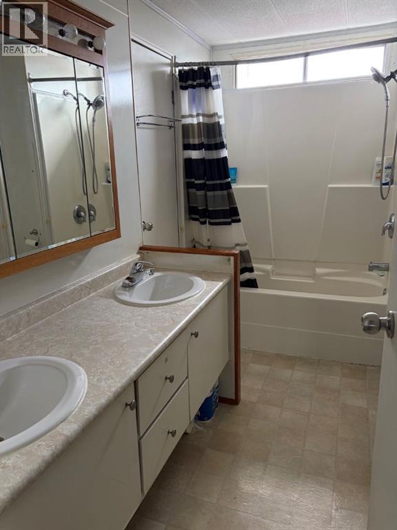 Renovated 2 bedroom, 1 bathroom mobile in High River Village. There is a covered veranda with plenty of room for outdoor patio furniture and a mudroom entry in addition to the main entry. This home has durable vinyl plank throughout. The living room had a door added onto it to accommodate a 3rd tenant, but can easily be removed to its original state. The updated kitchen and dining area is spacious and there is also a built-in serving hutch / coffee bar with additional storage and counter space. The 5pc bathroom has dual vanities, shower/tub combo, toilet and also houses the washing machine. It resides in between the 2 bedrooms and there is a "cheater door" into the primary bedroom. The primary bedroom has bifold doors into a good sized closet. Outside the yard is fully fenced and there is a garden shed for any additional storage needs. Pad rent is currently set at $956/mo and includes water/sewer, garbage removal, and snow plowing of common roadways. Move into this one and make it Your Home, Your Castle. (id:6769