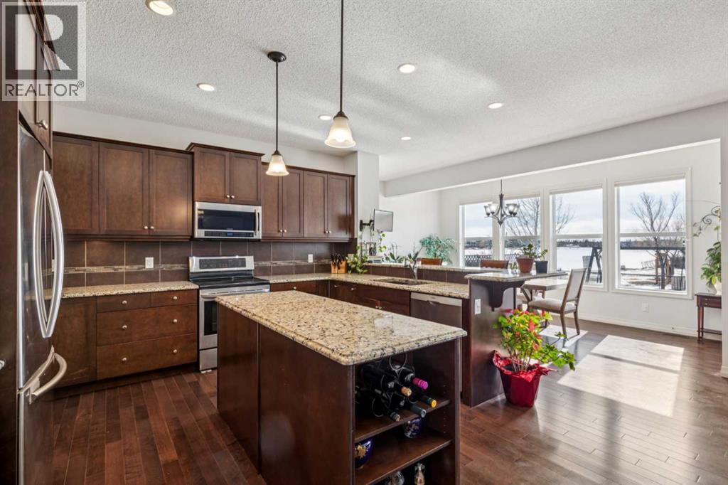 Welcome to an exceptional opportunity in the highly sought-after lake community of Auburn Bay! PRIME SOUGHT AFTER LOCATION ~ This wonderful (4 bedroom in total) home offers second lake access from a shared private dock, providing an incredible lifestyle with breathtaking lake views and direct enjoyment of one of Calgary’s most desirable four-season communities. Perfectly positioned to take full advantage of Auburn Bay Lake, residents enjoy year-round recreation including swimming, paddleboarding, relaxing beach days in the summer, and skating and winter activities when the lake freezes, making every season something special. This beautifully maintained air-conditioned home is fully finished on all three levels including a developed basement, offering plenty of room for comfortable family living and entertaining. The thoughtfully designed upper level features three bedrooms, a spacious bonus room, a second retreat or study area perfect for a home office, convenient upper level laundry, and a full 4-piece bathroom for the secondary bedrooms, while the primary bedroom retreat features a luxurious 5-piece ensuite, dual walk-in closets, and a private upper level deck perfect for morning coffee and fresh air. The main floor offers an open concept design with a large kitchen and island, extensive prep space, a walk-through pantry connecting to the mudroom and oversized garage, generous dining space, and a very spacious great room complete with a gas fireplace that creates a warm and inviting atmosphere. The developed basement adds even more living space with a bedroom featuring a large walk-in closet, a comfortable family room, a wet bar, and a full 4-piece bathroom, making it ideal for guests or extended family. This home is loaded with upgrades including solar panels, dual furnaces with upgraded humidifiers, LED lighting in the garage, and an oversized garage with convenient mudroom access. The backyard is designed for relaxation and entertaining with a beautiful deck fe aturing a private screened-in Suncoast enclosure, professionally designed landscaping, underground irrigation, and two storage sheds for additional convenience. The property is ideally located close to schools, parks, and local shops, while Seton is just to the south offering extensive shopping, restaurants, services, the South Health Campus, the Brookfield Residential YMCA, and a VIP Cineplex theatre, combining incredible convenience with an outstanding lake community lifestyle, and rare opportunities for lake access homes like this do not come up often. (id:6769