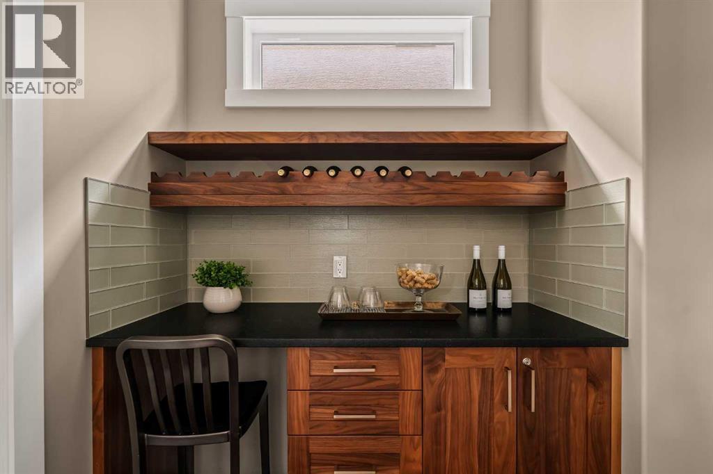 Welcome to this exceptional Albi Homes-built Wellington 5, a stunning executive residence offering over 4,000 sq.ft. of living space, a triple attached garage, air conditioning, & a rare private setting backing onto a wooded area & playground—with no neighbours behind. Positioned with an east-facing backyard, this home captures incredible morning light & tranquil views while providing an ideal space for families to relax & entertain. Designed with 4 bedrooms, 3.5 bathrooms, & built-in speakers, every detail of this home reflects quality craftsmanship & luxury.The main level showcases a private home office with sliding pocket doors provides a quiet workspace, while the butler’s pantry connects seamlessly to the show-stopping gourmet kitchen. Here you’ll find soft white full-height cabinetry, stone countertops, & a premium stainless steel built-in appliance package, highlighted by a Viking gas stove & oven & chimney hood fan. The oversized centre island with prep sink anchors the space, offering plenty of room for gathering and entertaining.The living room impresses with a coffered ceiling & a floor-to-ceiling stone surround gas fireplace with mantle, creating a warm focal point for the home. The dedicated dining area with elegant pendant lighting overlooks the private backyard, where natural light pours in through expansive windows. Step outside through sliding doors onto the main deck, with additional access to the north side deck off the dining area, perfect for outdoor dining & entertaining. Completing the main level is a well-designed mudroom with built-in bench, along with a convenient powder room. Upstairs, the luxurious primary retreat offers a peaceful escape featuring a tray ceiling & beautiful views of the wooded backdrop. The spa-inspired 5-piece ensuite includes a dual vanity, freestanding soaker tub, & custom glass steam shower with rainfall head & built-in bench. The walk-in closet with custom organizers completes this impressive space. Two additiona l jack-and-jill style bedrooms share a 5-piece bathroom with dual vanities & a separate tub/shower & toilet room, providing privacy & functionality for family living. A laundry room with sink, cabinetry, & abundant storage adds convenience to this level.The fully developed basement expands the home’s living space with a huge family room & recreation area—ideal for a home theatre, gym, games room, or entertainment space. This level also features a fourth bedroom, an additional full bathroom, under-stairs storage, & extensive storage within the mechanical room. The basement is also roughed-in for radiant in-floor heating, offering future comfort upgrades.Step outside to a beautifully designed backyard retreat, featuring a spacious wrap-around deck with built-in pergola, stairs leading to a paving stone patio, and plenty of green space for children and pets to play—all while enjoying the privacy of the treed setting and playground beyond. (id:6769