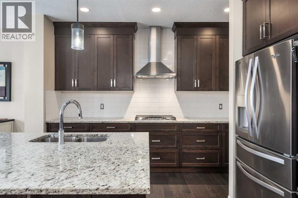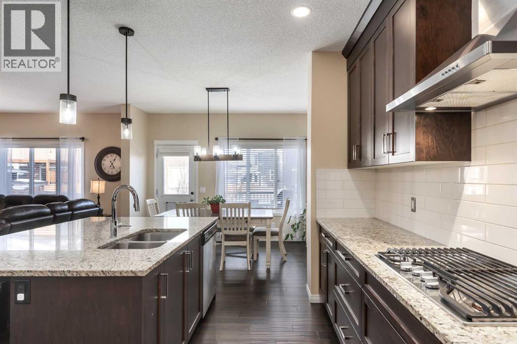 Welcome to this well-maintained, 4-bedroom 2426 sq. ft. family home located on a quiet cul-de-sac with desirable east/west exposure. Set on a pie-shaped lot, the property offers a large yard with raspberry bushes, strawberries, and mature shrubs—ideal for gardeners or families looking for extra outdoor space. The backyard is designed for relaxing and entertaining with a great sized deck with Trek decking with a bbq gas line, providing a durable, low-maintenance outdoor living area. Inside, the home features fresh paint and a bright, functional layout. The kitchen is equipped with granite countertops, built-in appliances, and a large island that provides plenty of prep space and seating. There is a quaint coffee bar and a walk-through pantry with custom shelving which adds convenience and storage. Upstairs, the primary suite offers mountain views and includes a 17 x 5’unique walk-through closet with custom organizers and a 5-piece ensuite. This level also features 3 additional bedrooms, large bonus room, laundry room, and a 4-piece washroom. The basement has a rec room, with a legal daylight window which is convenient for adding that fifth bedroom! The bathroom is roughed in with the wiring and the subfloor done, ready for the finishing touches. Additional highlights in this home include custom closet organizers, central air conditioning, new hot water tank and humidifier, and a double attached heated garage with built in storage shelving. With close proximity to all the amenities of Okotoks, schools, parks and walking paths, this large family home offers a great balance of style, function, and outdoor living space. Please click the multimedia tab for an interactive virtual 3D tour and floor plans. (id:6769