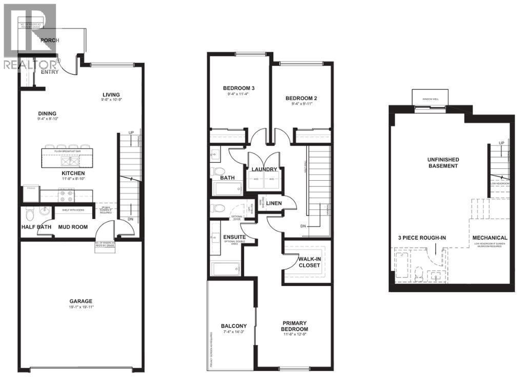 NEW BUILD TOWNHOUSE | NO CONDO FEE | 3 BED / 2.5 BATH / 1480 SQ FT | REAR ATTACHED DOUBLE GARAGE | 9 FT CEILINGS | UNDEVELOPED BASEMENT | EST. Q2 2027 POSSESSION – Welcome to the Briar model by Minto Communities, an award-winning Canadian builder, located in East Hills Crossing, one of southeast Calgary’s fastest-growing and most convenient communities. These thoughtfully designed lane townhomes offer modern finishes, functional layouts, and long-term value in a location that truly stands out. The main floor features a bright, open-concept design with 9-foot ceilings, creating a spacious and airy feel throughout. The layout opens into a generous living room, perfect for everyday living or entertaining. At the heart of the home is the kitchen, complete with a central island, stainless steel appliances, and contemporary finishes, seamlessly connecting to the dining area just off to the side. The front of the home features a large living room and a spacious entryway. At the rear of the home. A convenient half bath and mudroom are tucked away at the back, providing direct access to the rear attached double garage, keeping daily life organized and efficient. Upstairs, you’ll find a well-planned upper level designed for comfort and privacy. The primary bedroom is spacious enough to accommodate a king-sized bed and includes a walk-in closet along with a 4-piece ensuite. Adding even more appeal is a large private balcony located above the garage, an ideal spot to enjoy morning coffee or unwind in the evening. Two additional well-sized bedrooms, a full 4-piece bathroom, upper-floor laundry, and a linen closet complete this level. The home also includes a full, undeveloped basement with rough-in for a 3-piece bathroom, offering excellent future potential to add a large recreation space, and additional storage as your needs evolve. Ideally situated across from East Hills Crossing Shopping Centre and Costco, this location offers unmatched convenience with shopping, dining, and services just steps away. Public transit is nearby, providing a quick and easy commute to downtown Calgary in minutes. East Hills itself is a vibrant, well-connected southeast community, known for its thoughtful planning, green spaces, pathways, and easy access to major roadways and 17 Ave SE. Combining modern design, a functional floor plan, and an unbeatable location, this is an excellent opportunity to secure a brand-new home in East Hills with estimated completion in Q2 2027. Don’t miss your chance to be part of this exciting community! Book your visit at the presentation centre today for more details! *Photos are representative.* (id:6769