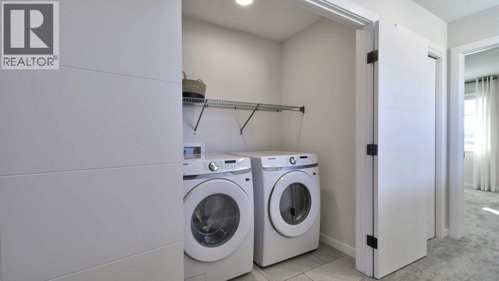 OPEN HOUSE THIS SATURDAY AND SUNDAY FROM 12:30 PM - 4:30 PM *** LUXURIOUS STREET TOWN * NO CONDO FEES * DOUBLE CAR GARAGE * FULLY LANDSCAPED * DECK * WINDOW COVERINGS * UPGRADED FINISHINGS * Wonderful home located within a 5 minute walk to the Bow River where nature is right at your back door! As you enter this "open concept floor plan", the first features you'll see are the gorgeous wide plank floors, the 9 foot high ceilings, a cozy fireplace and elegant metal railing on the staircase. The spacious living room allows for casual family gatherings or a fun movie night. The dining room is located in the middle of the home and has the capacity to fit a large dining room table. The kitchen is at the REAR of the home and has an island with eating bar, a pantry, quartz countertops, Slim Line lighting and pendant lighting. The mudroom has a bench and hooks for jackets. The upper floor has a huge primary bedroom that has a walk in closet and a 4 piece ensuite bathroom which includes a 5 ft. wide TILED shower and 2 sinks. The 2 spare bedrooms are at the back of the home where you'll also find a 4 piece bathroom. The laundry room is on the upper floor as well. There's also a Tech space for a desk at the top of the stairs. The basement is unfinished but has a plumbing rough-in for a 4th bathroom. As you enter the backyard from the mudroom an 88 square foot deck with a privacy wall is there to get your future backyard plans started. We have provided a rough-in gas line for your BBQ here. To get you out of Calgary's long winters, a double car garage is waiting for you! Grass will be provided for both the front yard and the back. Energy saving components are triple pane windows, a 96% high efficient furnace, LED lighting, a high end Air Filtration System ( HRV ) and a ECOBEE SMART thermostat that's an "all in one Smart Device. There's a shallow concrete swale in the backyard for drainage. Pictures are representative. Not all components in the pictures are included. Pict ures are of a showhome but not the exact home. Builder's representative will clarify all details prior to a contract being written. RMS measurements taken from Builder's blueprints. (id:6769