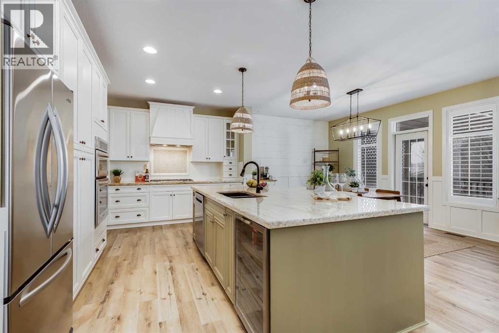 Presenting 153 Cranridge Terrace SE, a beautifully updated two-storey home offering 2,520.83 sq ft above grade and located across from a green space and park in the highly desirable community of Cranston. The attractive stucco exterior and inviting front entrance lead into a bright open-concept main floor featuring 9-foot ceilings, elegant wainscoting throughout, and durable luxury vinyl plank flooring. The heart of the home is the updated kitchen, showcasing a massive island with built-in appliances, abundant cabinetry, and plenty of prep space—perfect for both everyday living and entertaining. The spacious living room is anchored by a beautiful stone gas fireplace with a mantle, creating a warm and inviting focal point for relaxing evenings or gathering with family and friends. The dining and living areas flow seamlessly together, while a main floor home office offers a quiet and functional workspace. Upstairs you’ll find three generously sized bedrooms and two full bathrooms, including a spacious primary retreat featuring a practical 5-piece ensuite. A large bonus room with vaulted ceilings provides an ideal space for a family lounge, media room, or play area, and the convenience of an upstairs laundry room makes day-to-day living even easier. The fully finished basement expands the living space with an additional bedroom, full bathroom, den, and a large recreation room, offering excellent flexibility for guests, extended family, or additional entertainment space. Comfort is further enhanced with air conditioning and luxury vinyl plank flooring continuing into the basement. Outside, the private low maintenance backyard is designed for low-maintenance enjoyment and features a pergola, fire pit area, and hot tub—perfect for relaxing or hosting gatherings. The home also includes an oversized heated garage complete with durable epoxy flooring, providing plenty of space for vehicles, storage, or a workshop. Located near schools, shopping amenities, Stoney Trail, and t he South Health Campus Hospital, this property also offers quick access to Cranston’s extensive walking paths and the scenic Bow River ridge. Combining generous living space, thoughtful upgrades, and a prime location in one of Calgary’s most sought-after family communities, this home is an exceptional opportunity. (id:6769