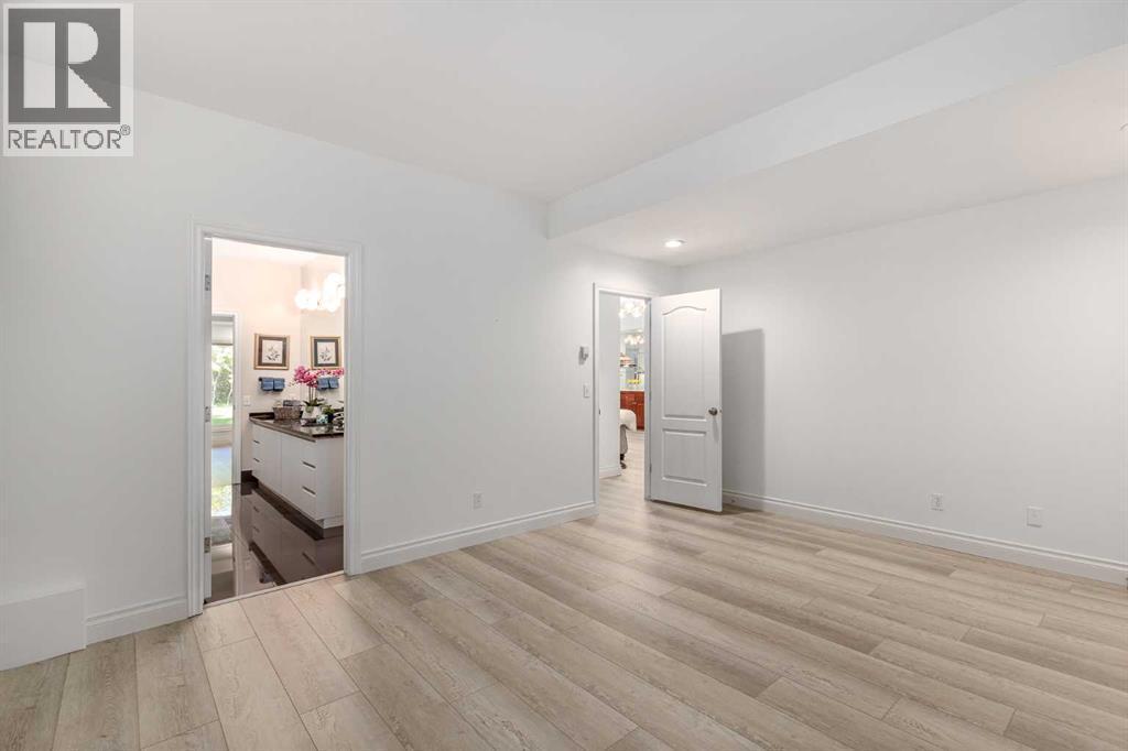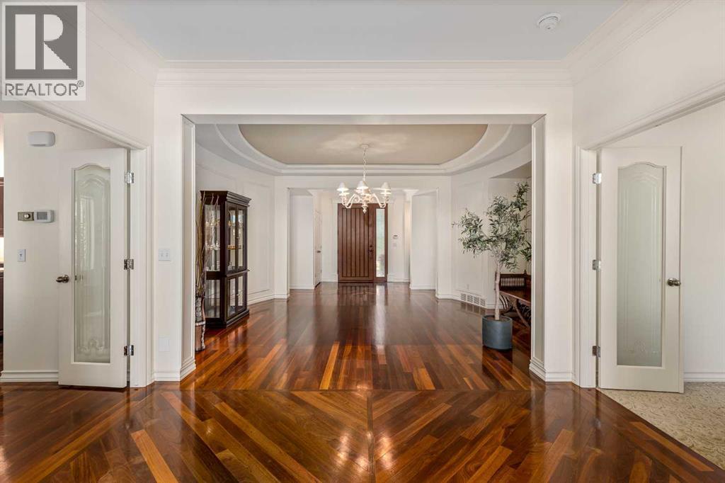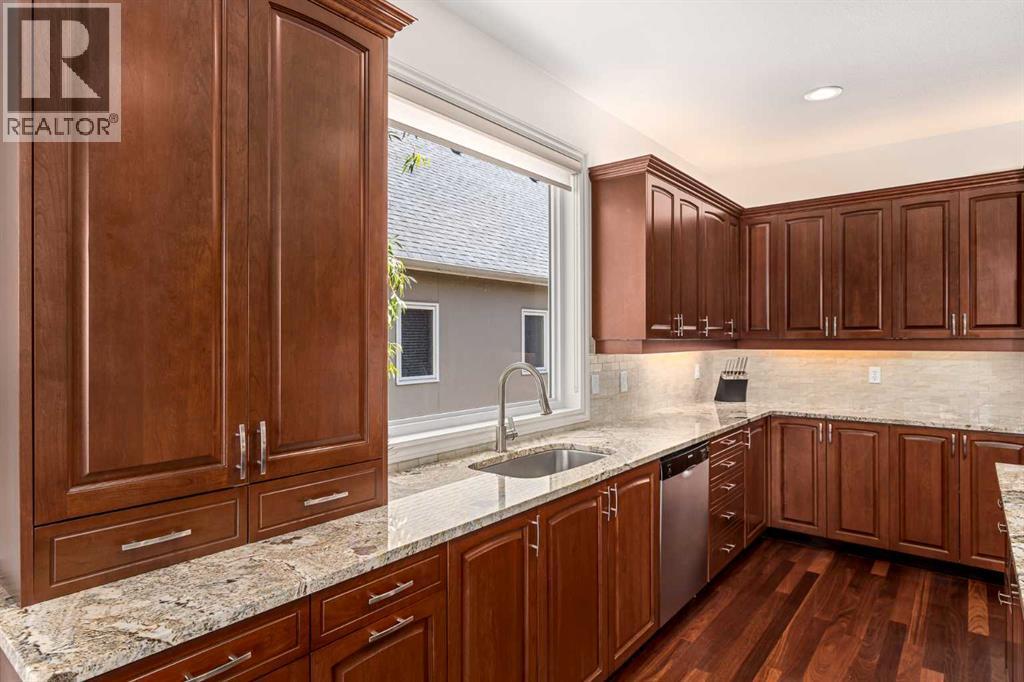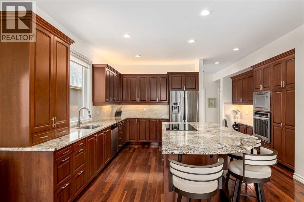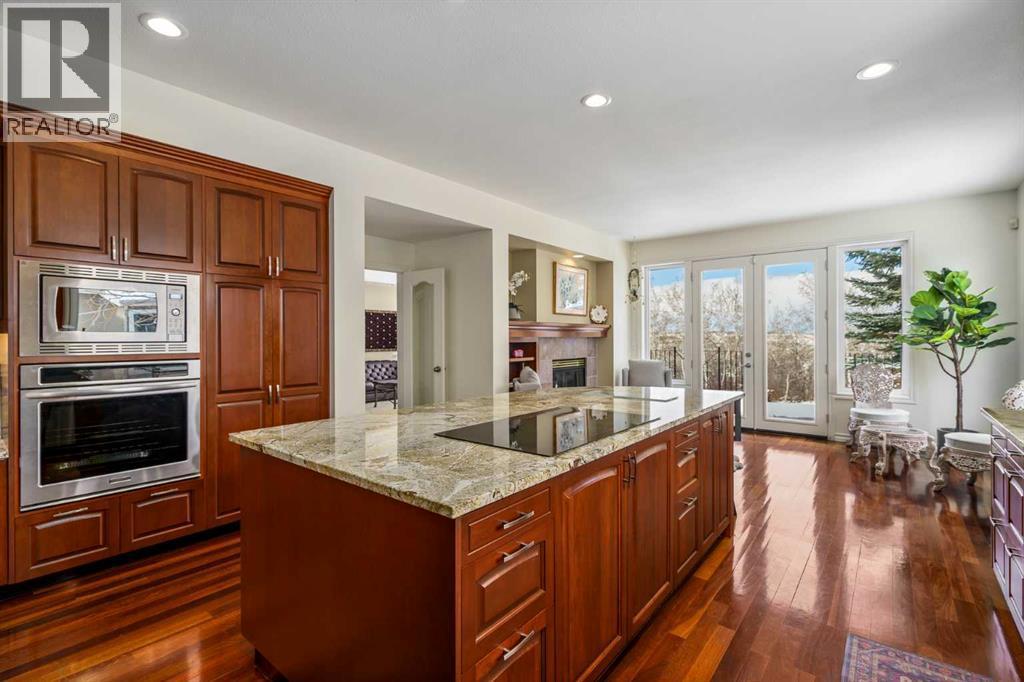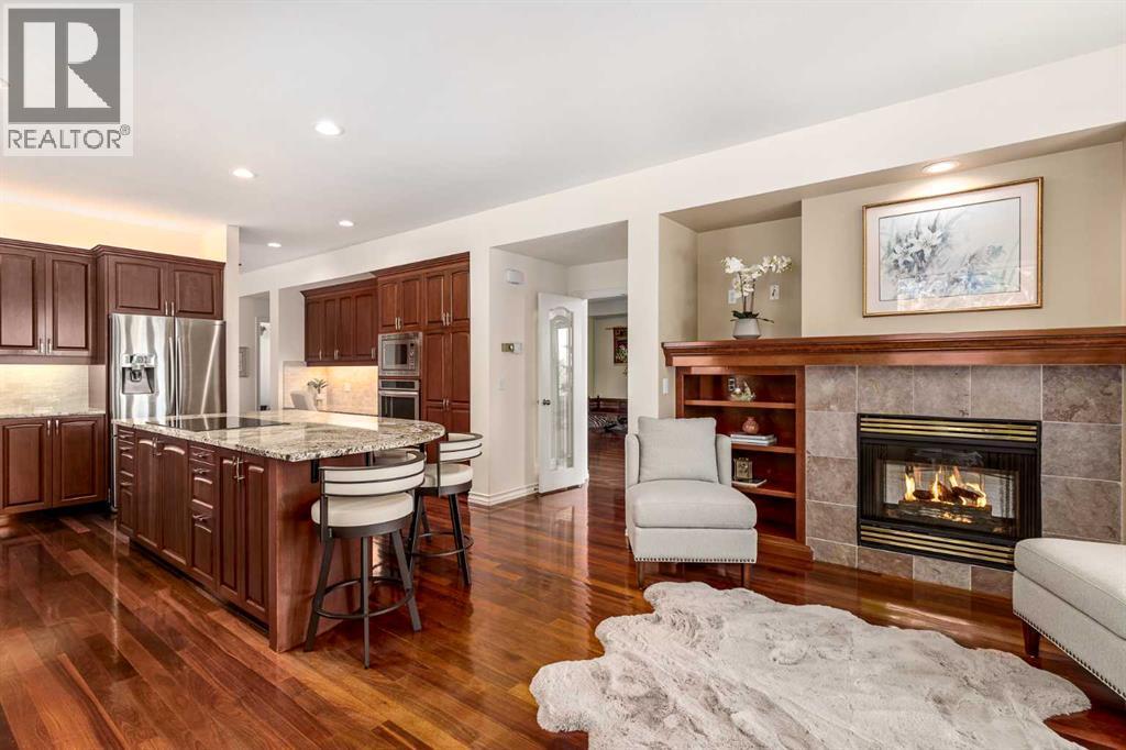 WALKOUT BUNGALOW | 4,700 SQFT OF LUXURY ESTATE LIVING | SNOWBIRD'S DREAM | HEATED TRIPLE GARAGE | BACKING ONTO FOREST & GOLF COURSE | Welcome to 33 Ridge Pointe Drive, an extraordinary estate bungalow set on one of the most prestigious streets in Heritage Pointe. Perfectly positioned on over 0.35 acres, this exceptional walkout residence backs directly onto the forest and golf course, offering a rare combination of privacy, natural beauty, and refined living. With 2,389 SQFT above grade and nearly 4,700 SQFT of total developed living space, this is one of the community’s most expansive bungalow floorplans — perfectly suited to empty nesters, families, or those who love to entertain. Whether your lifestyle includes morning walks through this spectacular enclave, afternoons on the golf course, or extended time away as a snowbird, this home offers the ultimate lock-and-leave lifestyle, with landscaping and snow removal included for easy, maintenance-free living. The main level is defined by timeless architectural elegance, where rich hardwood flooring, crown molding, and custom millwork complement breathtaking views of the forest behind. A formal dining room provides an elegant setting for hosting, while the spectacular great room showcases soaring barrel-vaulted ceilings, an impressive arched feature window, and a double-sided gas fireplace. The gourmet kitchen features custom cabinetry, premium stainless steel appliances, a large granite island, a built-in wall oven, and a new built-in microwave (2026). French doors from the breakfast nook lead to the expansive full-width patio — one of the largest available — complete with a gas line and the perfect setting for outdoor dining, entertaining, or peaceful mornings surrounded by nature. The luxurious primary retreat offers a spa-inspired ensuite with a freestanding tub, oversized glass shower, dual vanities, and a spacious walk-in closet. A spacious executive main floor office or den — or potential fourth bedroom — adds flexibility for homeowners. A generous laundry and mudroom (finished with new marble tile in 2025) lead to the heated, oversized triple garage with epoxy floors. The stunning fully developed walkout lower level was completely remodelled in 2025 and offers exceptional additional living space. The theatre room, finished with new sound-absorbing paneling (2025), can also serve as a home gym or fifth bedroom. The cedar and cold storage rooms offer ample storage, and the two large bedrooms on the lower level share a Jack-and-Jill 4-piece bath. Significant upgrades include window replacements and kitchen renovation (2015), ensuite renovation (2019), central A/C (2020), dual hot water tanks (2021), new carpeting (2023), and a complete basement remodel (2025). Quietly tucked alongside the golf course and just steps from the clubhouse, this remarkable Heritage Pointe estate offers an unmatched lifestyle of tranquility, community, and natural beauty — all just minutes from Calgary’s south amenities. (id:6769