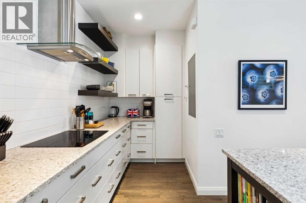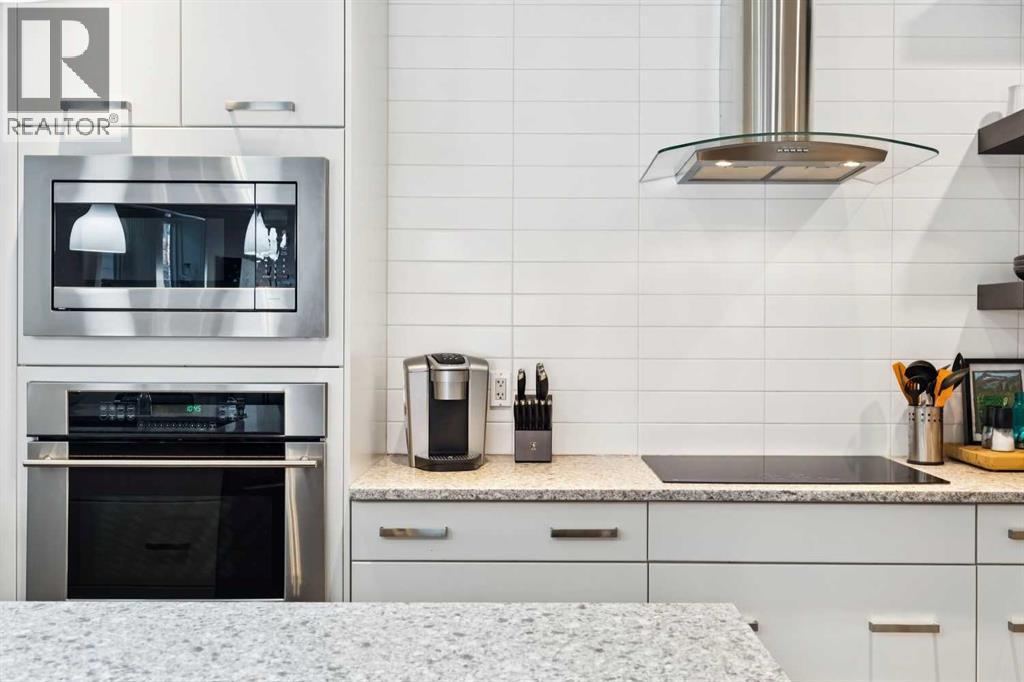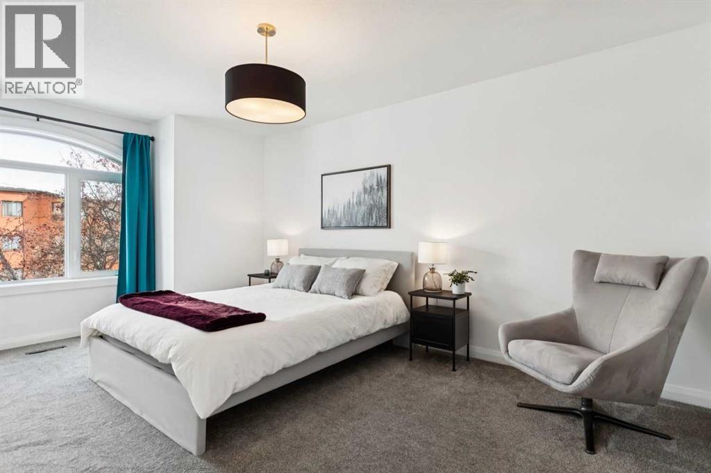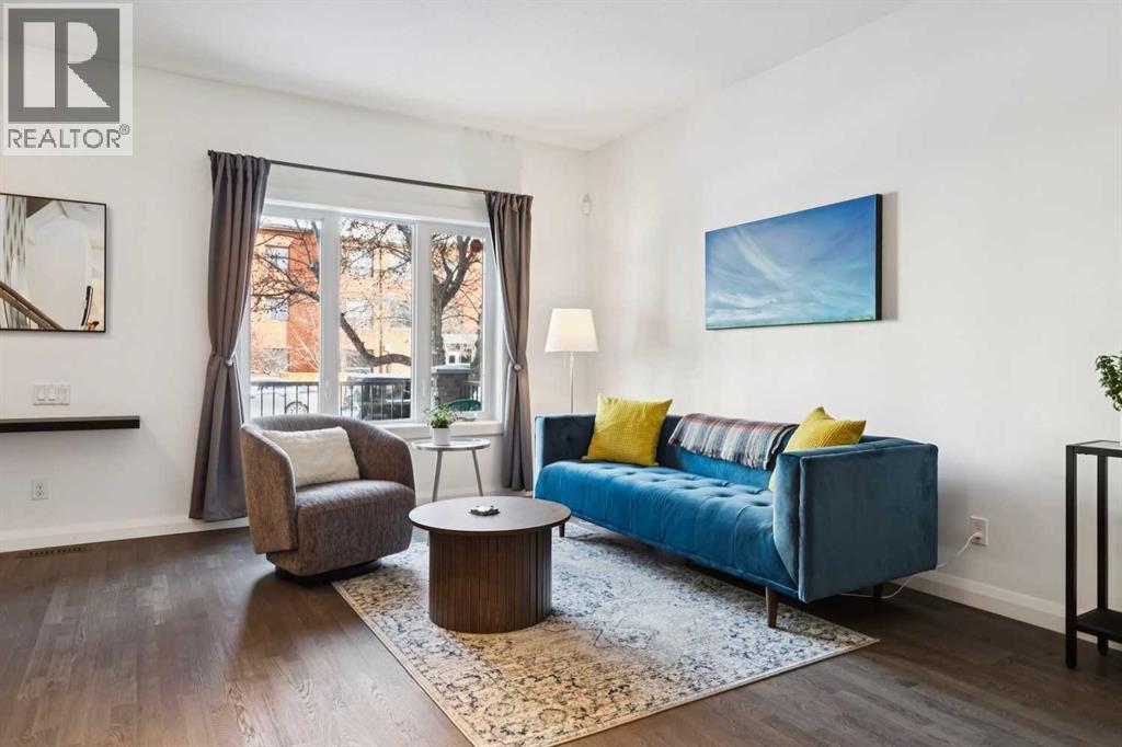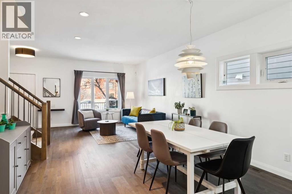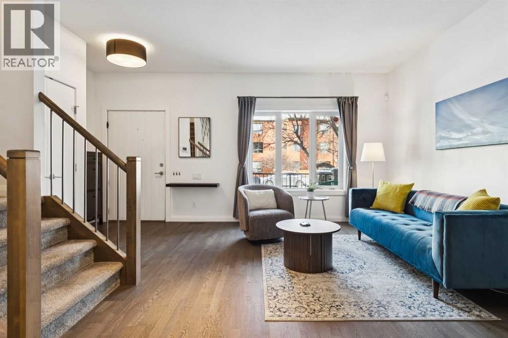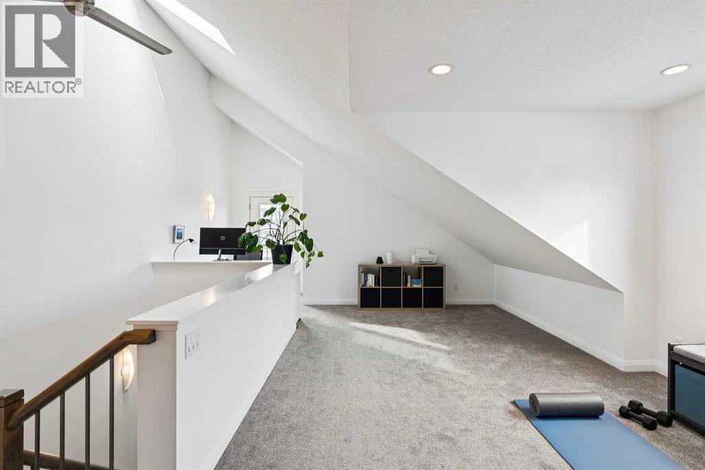 Looking to enter West Hillhurst, but don't want to sacrifice space or quality? Welcome to #1, 2421 2 Avenue NW: a beautiful FRONT-FACING 3-storey townhouse in sought-after West Hillhurst offering over 2,500 sqft of total living space, including a fully developed basement. The home sits at the front of the complex with a welcoming front deck and aggregate concrete exterior, and includes one stall in the detached garage off the back lane along with a visitor parking pad. The main floor features 9-foot ceilings, an extra-wide front door, hardwood flooring, and an open-concept living room, dining area, and kitchen, plus a convenient half bathroom with quartz countertops and tile floors. The kitchen includes stainless steel appliances, an in-wall oven, an induction stovetop with range hood, quartz countertops, pantry storage, a bar fridge, and a microwave replaced in 2023. Soundproofing between units is exellent, and solid doors are installed throughout the home. On the second floor, you will find 2 carpeted bedrooms, laundry, and a full bathroom with quartz countertops, tile floors, and a tiled tub/shower combination. The primary bedroom also includes a large private ensuite with dual sinks, quartz countertops, a tiled shower, and a large soaker tub. The incredible top floor is a bright and versatile space with vaulted ceilings, skylights, a ceiling fan, and a Juliet balcony, making it ideal for a bedroom, office, workout space, playroom, or media room. The developed basement offers new carpet, a large rec room with wet bar, a spacious bedroom, and a full bathroom with quartz countertops, tile floors, and a tiled tub/shower combination, along with the boiler system. Carpet throughout the top two floors and basement was replaced in 2022, and shingles were replaced in 2023. Maintenance fees are a low $418 per month and include reserve fund contributions, snow removal, annual exterior window cleaning, exterior insurance, and electricity for the garage. Located in the highl y desirable community of West Hillhurst, this home is within walking distance to the amazing Bow River pathway system, close to a grocery store, and near several schools and local amenities, with quick access to downtown and Kensington. Book your showing before it's too late! (id:6769