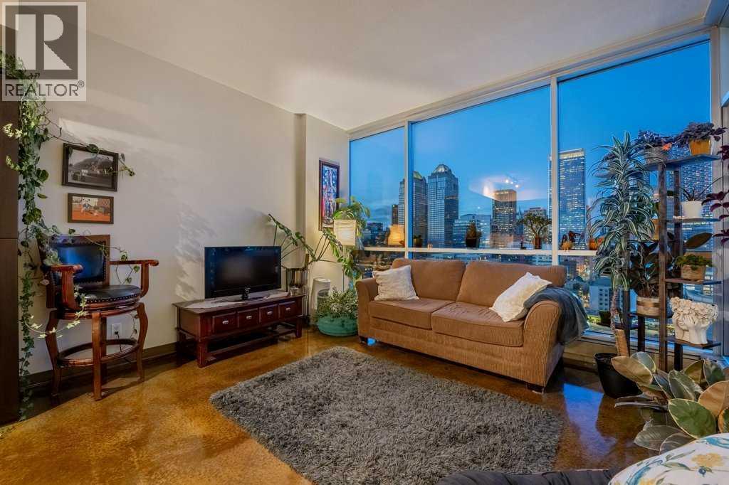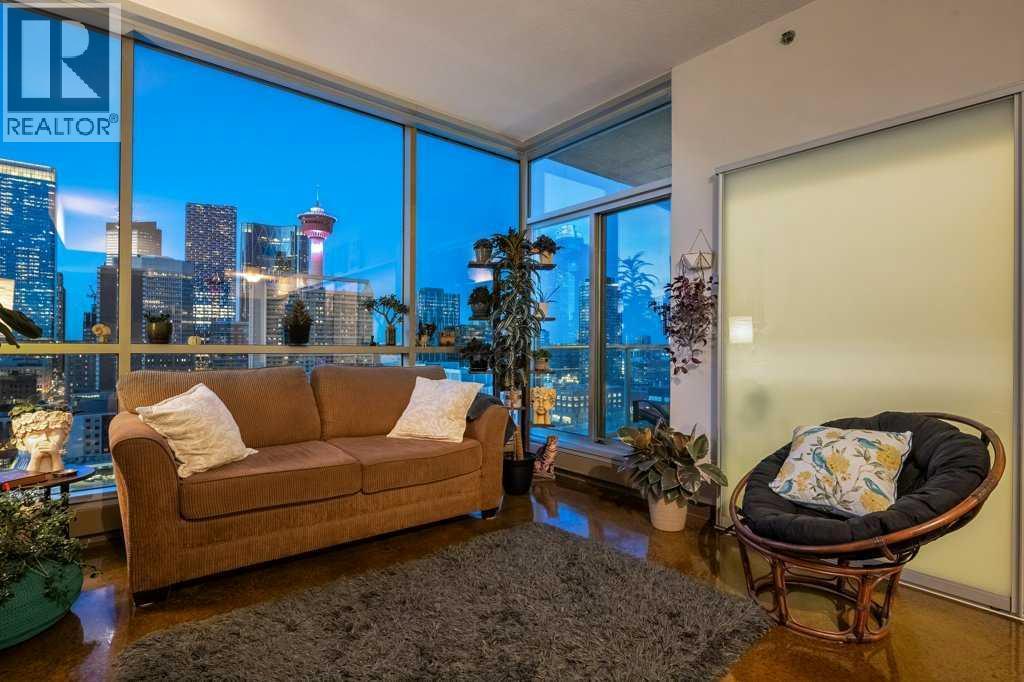 Seventeen floors above the city, the perspective changes. The noise fades, the skyline sharpens and Calgary stretches out before you like a living postcard. This is Colours, a short-term rental approved complex, where a coveted two bedroom residence delivers a truly panoramic view of the downtown skyline. You know, the kind of million dollar outlook typically reserved for penthouses - yet here you experience it for roughly a third of the price. Stunning floor-to-ceiling north facing windows frame the city like artwork, flooding the space with natural light while showcasing Calgary’s towers, lights and endless urban energy. The freshly polished concrete floors add warmth and modern edge, perfectly complementing the open-concept layout that flows effortlessly between the kitchen, dining and living spaces. The primary bedroom becomes a front-row seat to the skyline, offering a calm retreat with those same sweeping visuals, while the versatile second bedroom easily transforms into a guest room or home office. Step onto your private balcony with natural gas hookup and watch the city shift from golden sunset to sparkling evening lights - a daily reminder that some views never get old. Boasting central A/C, underground parking stall, bike storage and a shared outdoor community garden that brings colour and greenery to the area. And the lifestyle below? It's just as compelling: order top shelf cocktails at Proof, grab a quick bite at First Street Market, Ten Foot Henry, Pat & Betty, St James Corner or Calcutta Cricket Club. Calgary's emerging entertainment district is just moments away which include the new arena, shopping destinations and convention centre. You are also completely walkable to the c-train line, Central Memorial Park, 17th Avenue, downtown office core and the Stampede grounds. Whether you’re a young professional, first-time buyer, investor or someone simply looking to live above it all, Colours ticks all the boxes. The skyline everyone wants - the price few expect. (id:6769