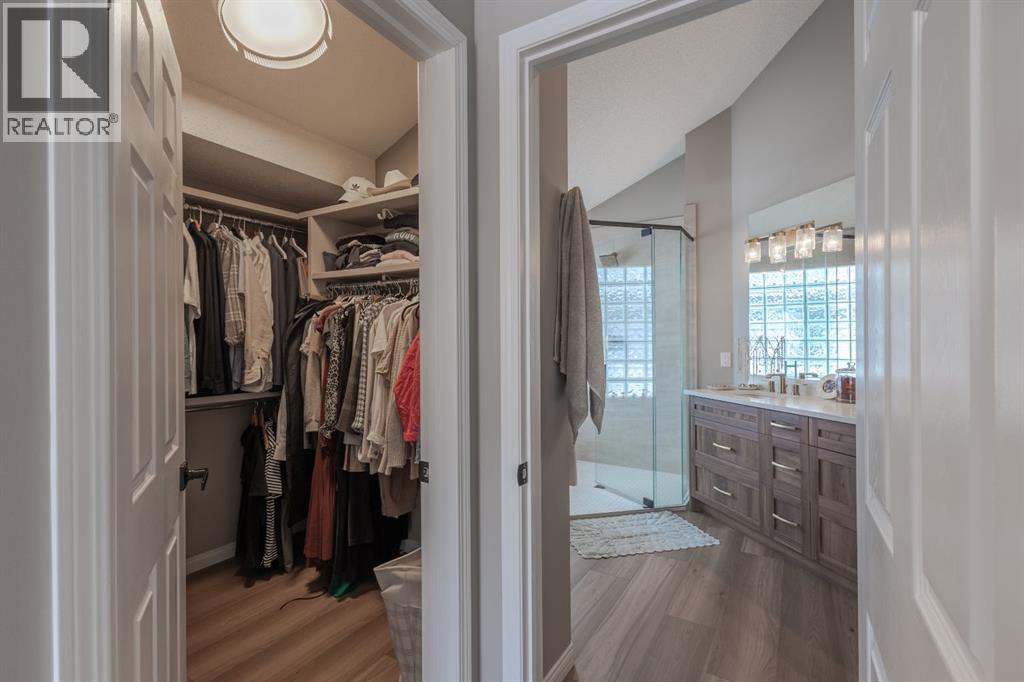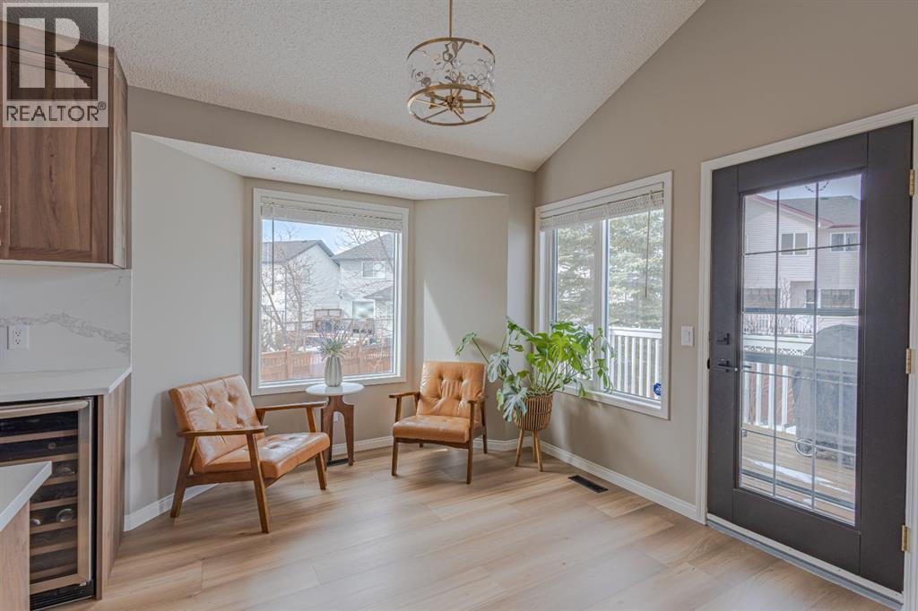 Located in the NW community of Rocky Ridge, this extensively renovated bungalow blends timeless design with modern comfort, set on an impressive pie-shaped lot beautifully enhanced by professional landscaping in 2025. From the moment you arrive, the inviting curb appeal sets the tone for what awaits inside. Stepping inside you are greeted with a grand front dining room space perfect for enjoying meals with family and friends. 16 foot vaulted ceilings elevate the main floor, where a complete renovation has transformed the living spaces into a bright, elegant environment ideal for both everyday living and entertaining. At the heart of the home, the chef-inspired kitchen features brand new stainless steel appliances, a generous centre island, a skylight that floods the room with natural light, and seamless flow to the eating nook area and expansive back deck—perfect for summer evenings and gatherings with family and friends. The living room is warm and inviting, highlighted by a beautiful gas fireplace with tile surround and custom mantle and large windows overlooking the landscaped backyard, including brand new windows in both the living room and primary bedroom. The main floor includes two spacious bedrooms, including a serene primary retreat complete with a walk-in closet and a bright four-piece ensuite boasting a gorgeous standalone shower and dual vanity. A 4pc bathroom and main floor laundry complete this level. Downstairs, the fully developed lower level offers exceptional additional living space with a large family room, second gas fireplace, two additional bedrooms, a full bathroom, and a private sauna for the ultimate at-home relaxation experience. Additional upgrades include new window coverings, a water softener, and a whole-home dechlorinator system, ensuring comfort and quality throughout the home. Completing the property is an oversized double attached garage with added storage and convenient access to the main-floor laundry and mudroom. Beautifully reno vated, thoughtfully upgraded, and ideally located, this Rocky Ridge bungalow offers a rare opportunity to enjoy refined single-level living in one of Calgary’s most sought-after NW communities. (id:6769