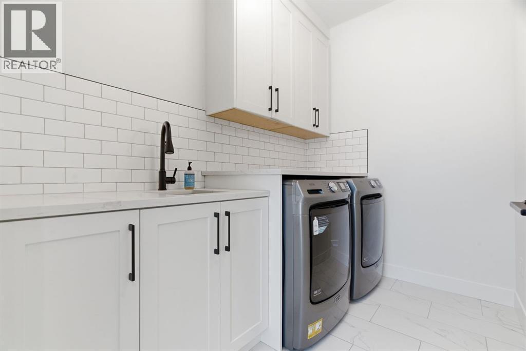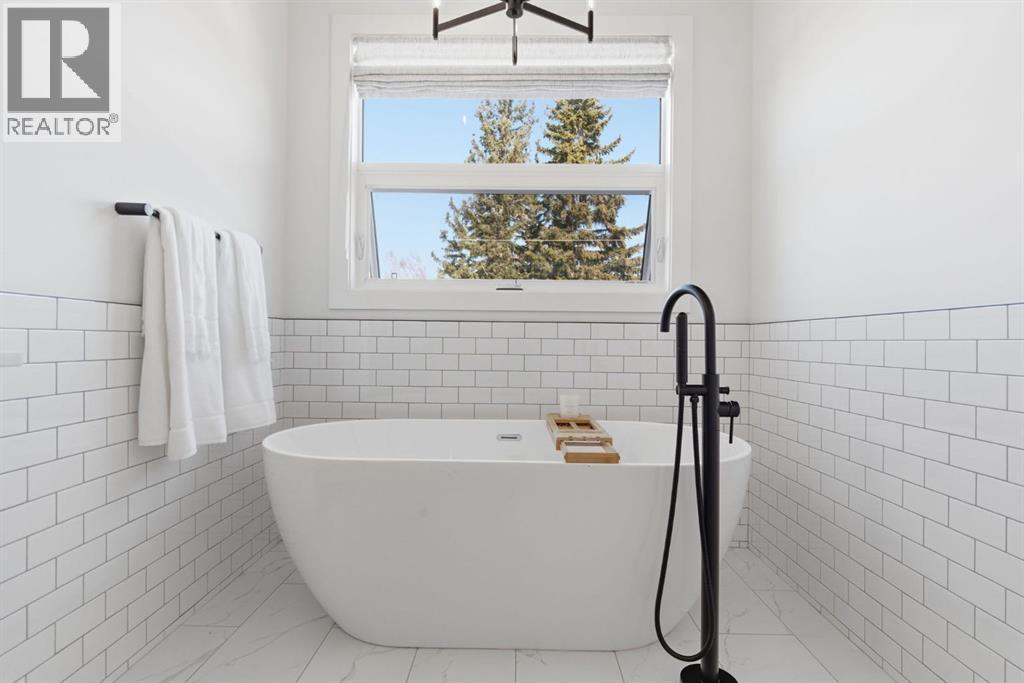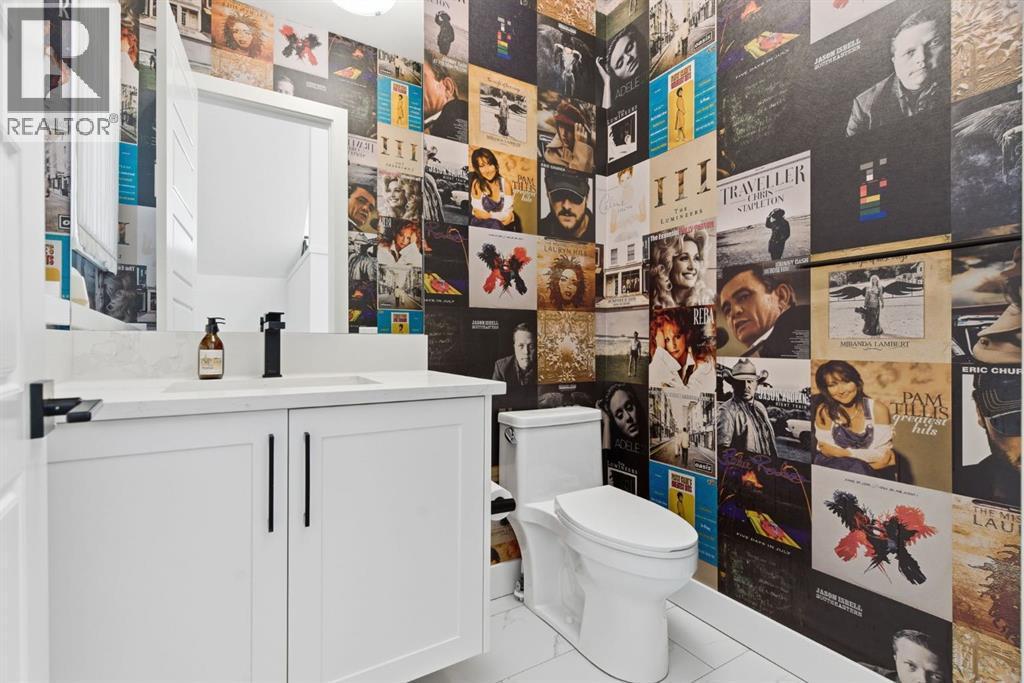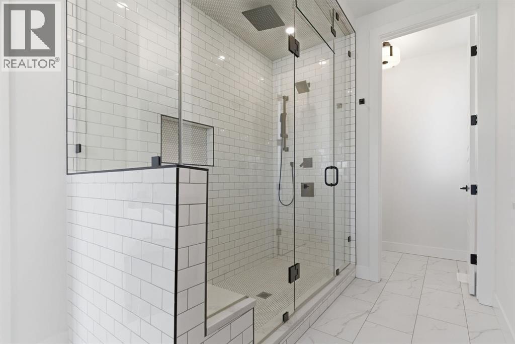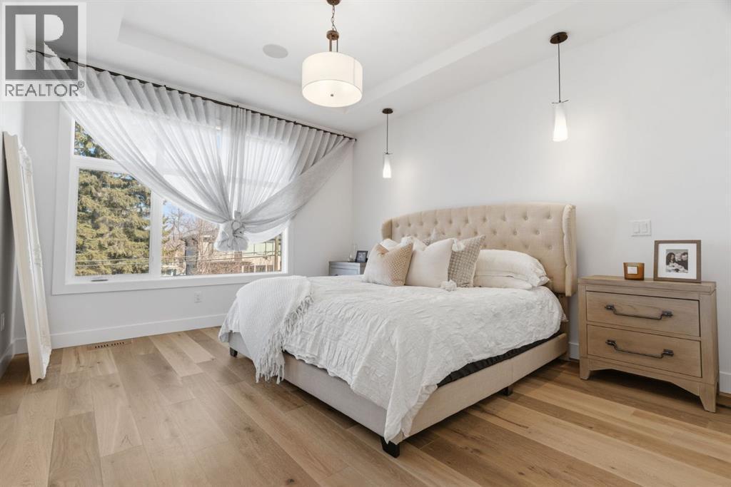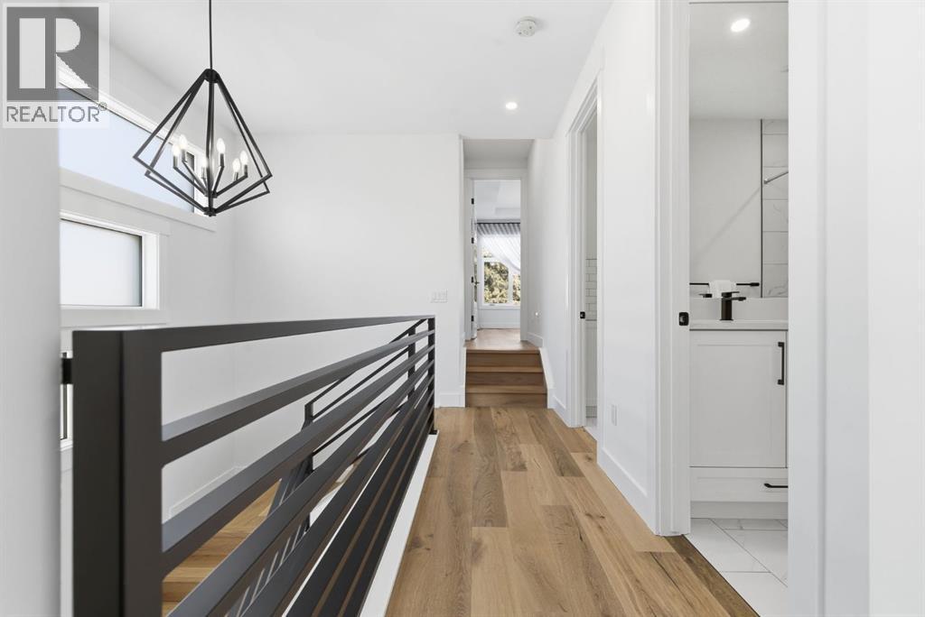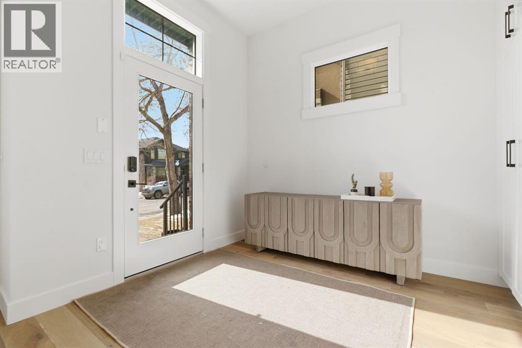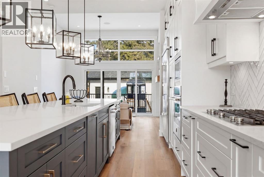 Situated on a beautiful tree-lined street in the heart of Altadore, this stunning duplex sits on a rare extra-deep 122’ lot just steps from the river pathways, parks, and the vibrant shops and cafés of Marda Loop. This location offers an incredible lifestyle for active families, with easy access to playgrounds, top-rated schools, Glenmore Athletic Park and golf course, while still providing quick connections to Crowchild Trail and 50 Avenue SW.Exceptional curb appeal is accented by brick siding and an exposed aggregate walkway, while a concrete party wall ensures superior sound separation for an ultra-quiet living experience.Inside, you’ll immediately notice the elevated finishes throughout — flat painted ceilings, custom designer lighting, 8-foot interior doors, and wide-plank engineered hardwood flooring on both the main and upper levels. A stylish powder room on the main floor adds a sophisticated touch for guests.The pristine white kitchen is both beautiful and functional, featuring ceiling-height wood cabinetry, textured herringbone backsplash, quartz countertops, a dedicated coffee/wine bar, and a large eat-in island that comfortably seats six. The premium JennAir stainless steel appliance package completes this chef-inspired space.The open-concept main floor seamlessly connects the kitchen, dining, and living areas, creating a welcoming environment for both entertaining and everyday family life. The living room is highlighted by soaring 12-foot ceilings and transom windows above the double patio doors, filling the space with natural light. Custom built-ins in the living room and mudroom add both function and style.Upstairs offers three spacious bedrooms, a full bathroom, and convenient laundry. The primary retreat features coffered ceilings, a walk-in closet, and a spa-inspired ensuite complete with heated floors, dual vanity, soaker tub, and rainfall shower.The fully finished basement extends the living space with a large recreation room featuring a bu ilt-in media unit and wet bar, a fourth bedroom, and a full bathroom — ideal for guests, teens, or a home gym.The extra-deep lot provides a spacious backyard complete with low-maintenance turf landscaping, an oversized full-width deck, and double detached garage. Gemstone exterior lighting adds both style and convenience, allowing for customizable lighting year-round.An exceptional opportunity to live in one of Calgary’s most vibrant and family-friendly inner-city neighbourhoods. (id:6769