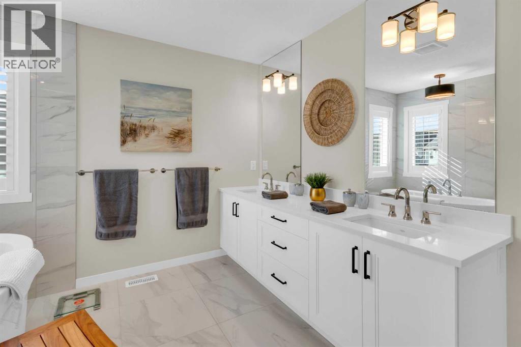 HOME SWEET HOME! Welcome to your LUXURY DREAM HOME located in the prestigious community of Riverstone, BACKING ONTO THE TRANQUIL RAVINE PARKS, in Cranston! Your home is located on a large private corner lot with stunning River Views, recent professional landscaping, upgrades throughout and a MASSIVE TRIPLE GARAGE with loads of parking! This spectacular fully finished home was CUSTOM-BUILT in 2021 by Baywest Homes (Hamelin Model), offering 4 bedrooms, 3.5 bathrooms and 4,159+SQFT, that is breathtakingly finished and immaculately maintained throughout. Heading inside you will be impressed by the amazing appeal, immense pride of ownership and stylish décor throughout the flawless, contemporary open concept floor plan. The main floor offers a bright and spacious foyer, a sun-drenched living room perfectly complimented by a modern gas fireplace with a mantle, a large formal dining area with access to the spacious deck and backyard, 2-piece vanity bathroom and a flex room that is ideal for a home office. The star of the main floor is the upgraded, custom-built gourmet chef’s kitchen complete with a towering quartz island with a breakfast bar, quartz countertops, elegant backsplash, premium stainless steal appliances (including a gas range), butler’s pantry and modern lighting fixtures. The upper level showcases oversized rooms including two great-sized bedrooms and the dreamy master retreat complete with a huge walk-in closet and a spa-like 5-piece ensuite that contains a stunning soaker tub, double vanity sinks and a private shower with built-in seating. Completing the upper floor is a large laundry room with a sink and a convenient bonus room that is perfect for a growing family and an additional lavish 5-piece bathroom. The fully developed basement contains all the extra space you’re searching for with a massive recreation room, flex area that can accommodate a home gym, 4-piece bathroom, 4th bedroom and tons of storage space. HOME UPGRADES include WATTS lights, Centra l Air Conditioner, Engineered Hardwood Flooring, water softener, creative interiors battery operated windows treatments, gazebo, Hot Tub Rough in, BBQ Gas Line, Apple Tree, landscaping, fencing and gates on north/south side, shed solution garden shed, under deck storage and garage upgrades including epoxy floor, ceiling storage racks, gas heater and wall unit for hanging tools. Heading into your backyard private oasis you will fall in love with the backyard of your dreams complete with an expansive deck, stamped concrete patio area, beautifully manicured and fenced backyard with pristine ravine views. You can’t beat this incredible location, close to pathways and the ravine, schools, shopping, parks, public transportation, and major roadways. Owner put over $175,000 into updates in this forever home, since purchased in 2022! MUST VIEW! Book your private viewing of this GEM today! (id:6769
