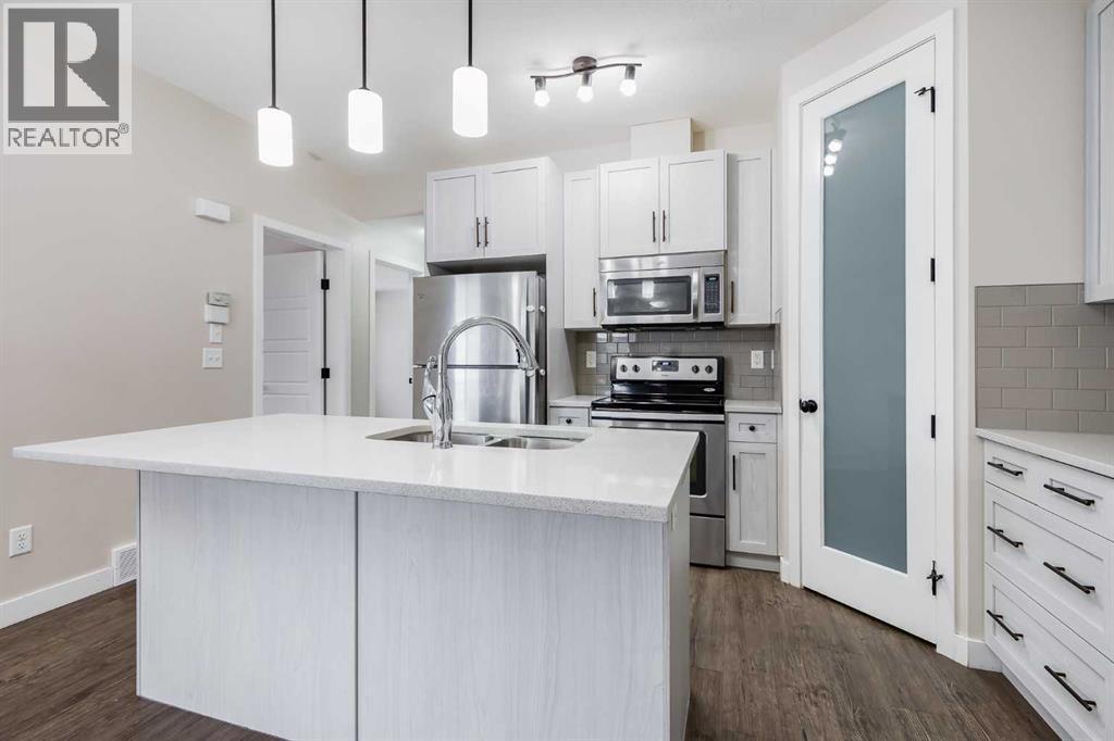Welcome to this AIR CONDITIONED 2 Bedroom, 2 Bathroom END UNIT, offering 882 sq. ft. of bright, open-concept living space, and TWO PARKING STALLS. With 9' ceilings and large windows throughout, this home is filled with natural light and designed for both comfort and functionality. The kitchen features a large island, stainless steel appliances, quartz countertops, and a pantry with lots of shelving, perfect for cooking and entertaining. The primary bedroom is a great size, offering a walk-through 3-piece ensuite and a large walk-in closet. The second bedroom comfortably fits a queen bed or works perfectly as a home office, with a bright window providing great natural light. The main bathroom is well appointed and provides excellent storage. Additional highlights include recently upgraded in-suite laundry and central air conditioning for year-round comfort. Step outside to your private, spacious deck ideal for a BBQ and patio seating to enjoy the outdoors from the comfort of home. The well-managed complex features beautifully maintained green spaces and easy access to the local pathway system, Yankee Valley Boulevard, and 24 Street. Low condo fees include heat, water/sewer, insurance, and contributions to the reserve fund. (id:6769