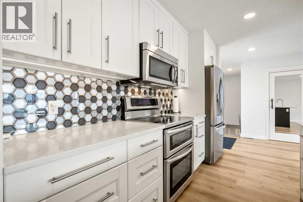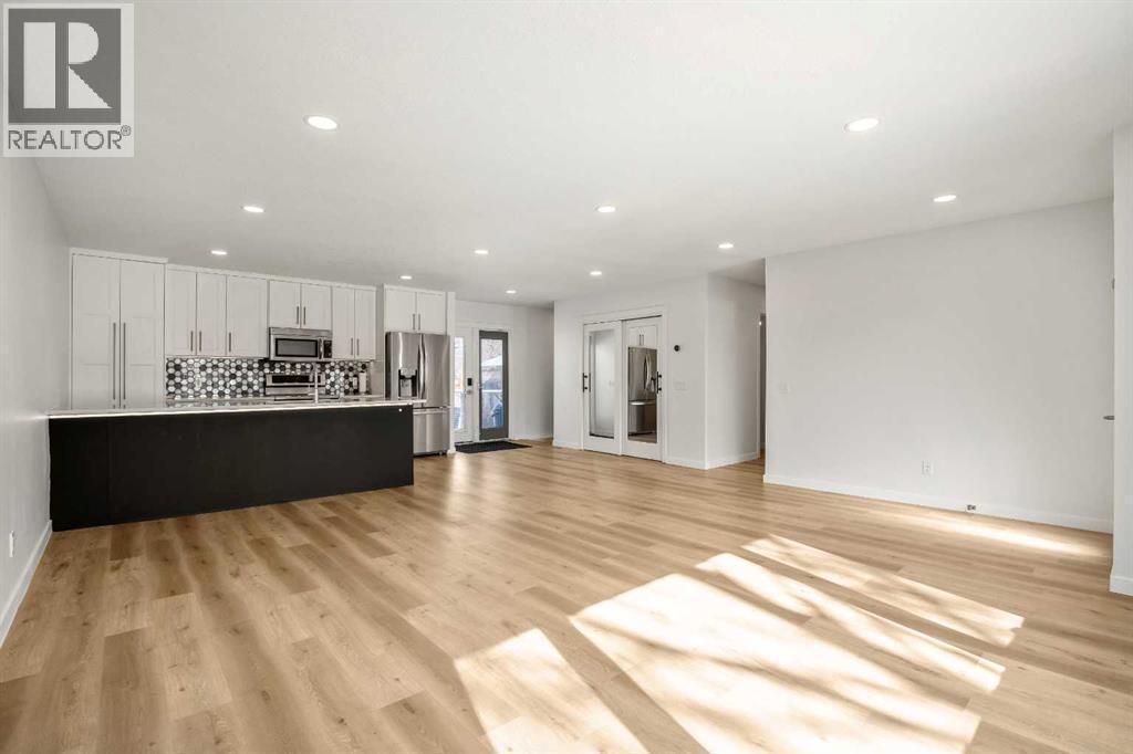 Welcome to this beautifully renovated bungalow in the heart of Acadia, offering a modern open floor plan and over 2100 SF of developed living space in one of Calgary’s most established and desirable neighborhoods.Fully renovated in 2020, the main floor features a bright open-concept layout with large windows and pot lights throughout, creating a warm and inviting space filled with natural light. The beautifully designed kitchen is perfect for both everyday living and entertaining, showcasing quartz countertops, stainless steel appliances, modern cabinetry, a spacious breakfast bar, and abundant pantry and storage space.The main level offers 2 spacious bedrooms and 2 full bathrooms, highlighted by a huge primary retreat designed for comfort and privacy, complete with a spa-inspired ensuite featuring a large glass walk-in shower — the perfect place to relax and unwind at the end of the day.The fully developed lower level significantly expands the living space, featuring 2 additional bedrooms, a full bathroom, and a massive family / recreation room—perfect for movie nights, a games area, teenagers, guests, or a flexible home office setup.Major upgrades provide both modern comfort and long-term peace of mind, including a high-efficiency furnace and humidifier (2025), new attic insulation (2026), roof shingles approximately five years old, upgraded vinyl windows, and a durable stucco exterior accented with soffit lighting for beautiful evening curb appeal. These upgrades make this home truly move-in ready, allowing you to simply enjoy the space without worrying about major expenses.Outside you’ll love the massive backyard and large rear deck, perfect for summer entertaining, gardening, or relaxing evenings.The OVERSIZED heated garage is fully insulated and drywalled with a gas heater, providing an ideal space for parking, storage, or a workshop, with potential for future EV upgrades if desired. Located in prime Acadia, this home is within walking distance to schools, parks, tennis courts, pools, shopping, and transit, with quick access to Southland Drive, Blackfoot Trail, and Deerfoot Trail for easy commuting. Everyday amenities including Costco, IKEA, and major shopping centres are just minutes away. Known for its mature tree-lined streets, wide lots, and strong community feel, Acadia remains one of Calgary’s most desirable established neighborhoods.Quick possession available. Move in and enjoy. (id:6769