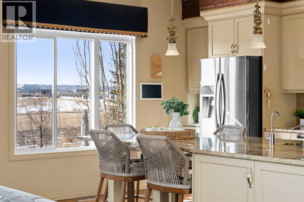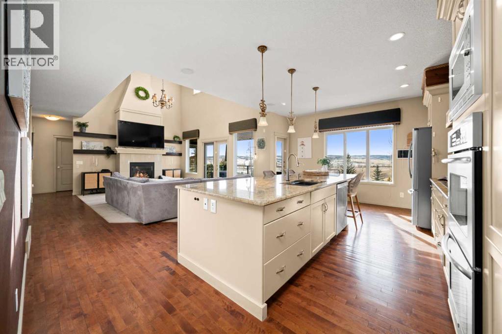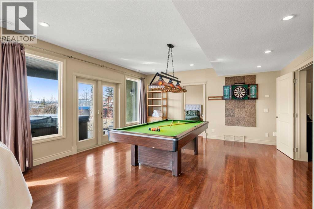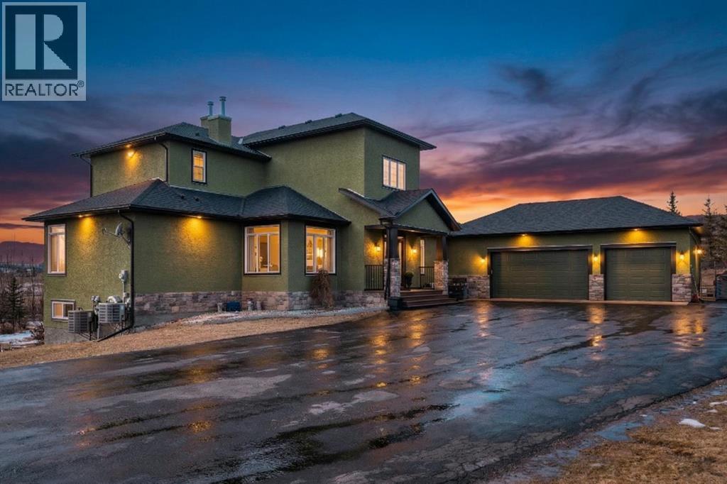 Set atop a private, gated lot, this custom-designed home takes full advantage of its unobstructed, far-reaching views. A winding drive leads you through the property, gradually revealing a home thoughtfully positioned to capture both privacy and landscape. Mornings here begin quietly—coffee in hand while watching horses train nearby—and on clear days the Rocky Mountains rise in the distance, a reminder of how remarkable this setting truly is.Inside, three levels of carefully designed living space offer room to gather, entertain, and retreat. The home opens to a generous foyer where a graceful staircase anchors the space. A bright flex room currently serves as a home office, while across the hall a well-proportioned dining room connects seamlessly to the kitchen and pantry—an easy layout for hosting family dinners or larger celebrations.The main level is filled with natural light, thanks to soaring ceilings and expansive windows. At the center of the home, the kitchen is designed for both everyday use and cooking with purpose, offering extensive cabinetry, a large island, built-in appliances, and a nearby pantry. The main-floor laundry room provides a cheerful, practical workspace. Tucked away for privacy, the primary suite offers a quiet retreat with a spacious walk-in closet and a beautifully appointed ensuite. A richly finished powder room completes the level.Upstairs, two equally sized bedrooms each feature their own full ensuite bath and elevated views across the surrounding landscape.The lower level introduces a generous amount of additional living space. Here you’ll find a large bedroom with a cheater ensuite, a gym, family room, games area—with pool table included—and a kitchenette with secondary laundry. This level adapts easily for entertaining, extended family, or a private living area for guests or a nanny.Outdoor living is equally inviting. Warm days can be spent swimming in the above-ground pool, while evenings might end with a soak in the hot tub. When temperatures rise, the home’s air conditioning keeps the interior comfortably cool.A triple attached garage and expansive driveway provide ample parking for residents and visitors alike.Set on 2.99 acres, the property feels wonderfully open, with no homes directly in front or behind—allowing the surrounding views and quiet of the landscape to take centre stage. (id:6769