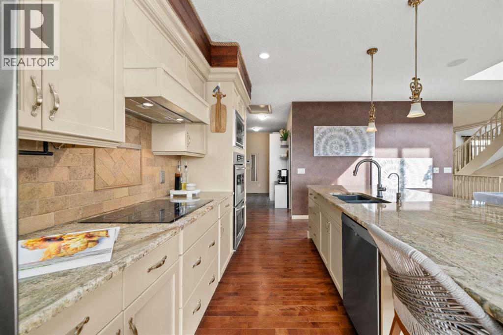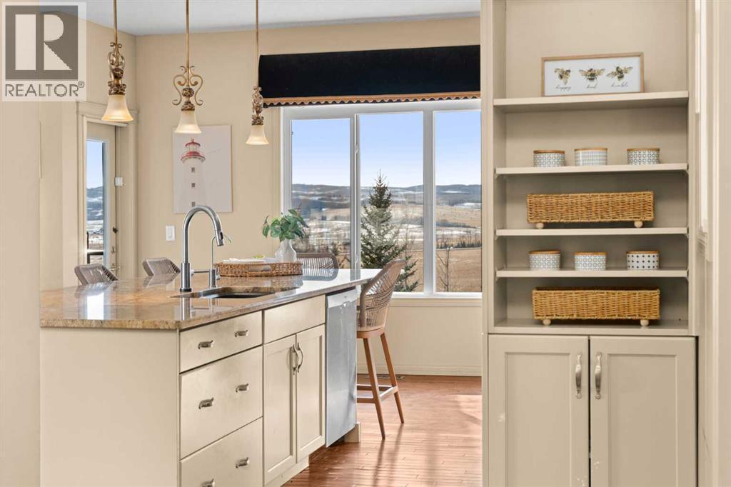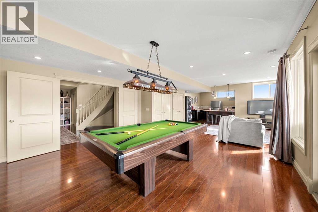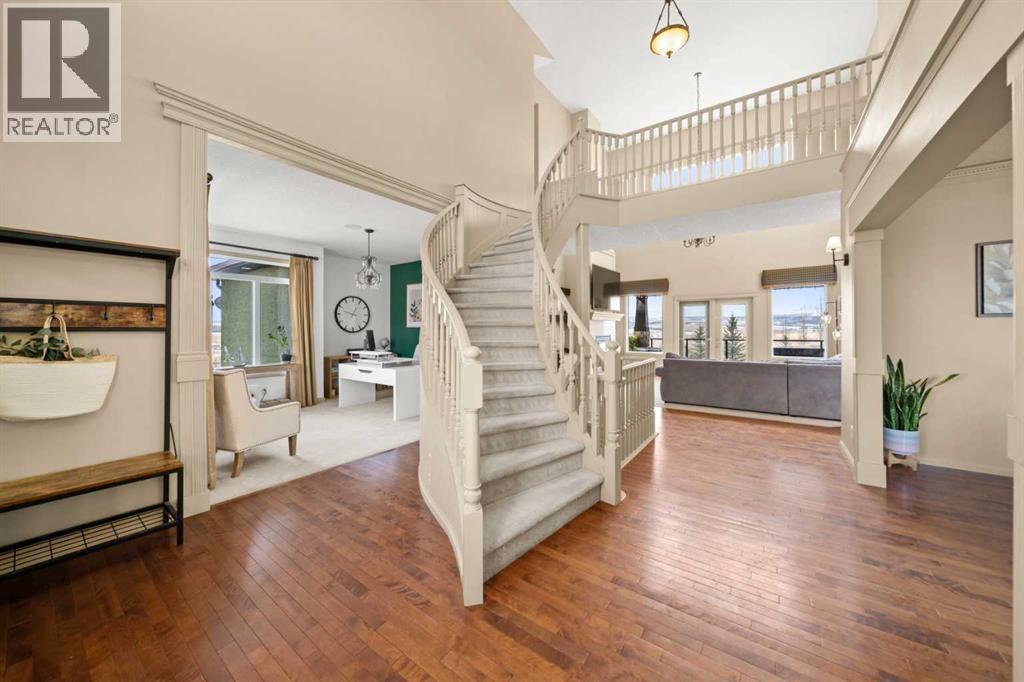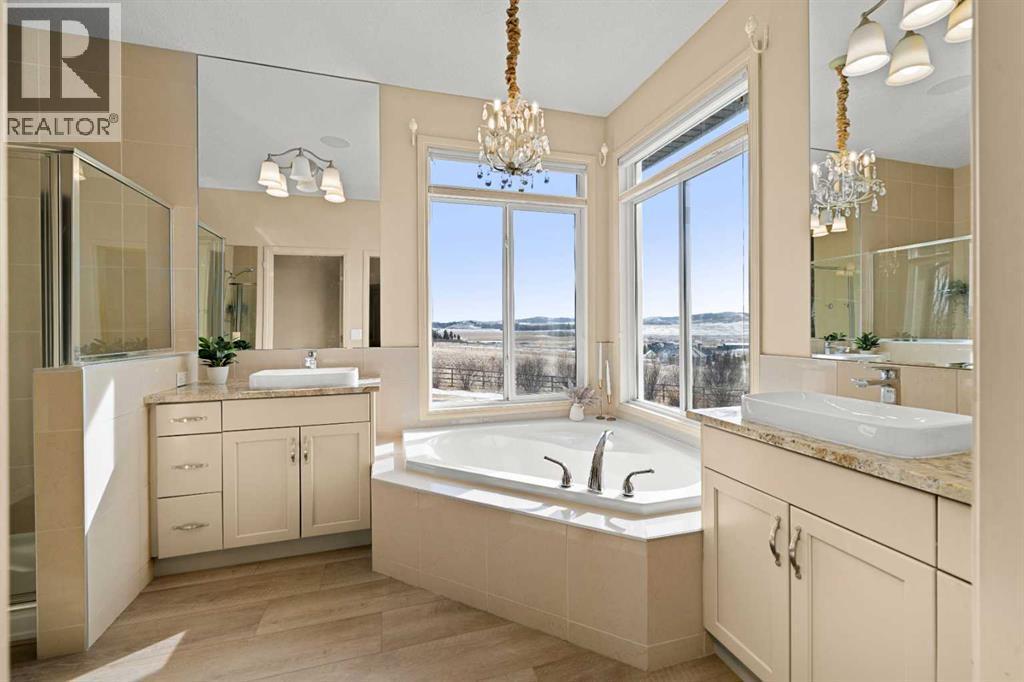 Set atop a private, gated lot, this custom-designed home takes full advantage of its unobstructed, far-reaching views. A winding drive leads you through the property, gradually revealing a home thoughtfully positioned to capture both privacy and landscape. Mornings here begin quietly—coffee in hand while watching horses train nearby—and on clear days the Rocky Mountains rise in the distance, a reminder of how remarkable this setting truly is.Inside, three levels of carefully designed living space offer room to gather, entertain, and retreat. The home opens to a generous foyer where a graceful staircase anchors the space. A bright flex room currently serves as a home office, while across the hall a well-proportioned dining room connects seamlessly to the kitchen and pantry—an easy layout for hosting family dinners or larger celebrations.The main level is filled with natural light, thanks to soaring ceilings and expansive windows. At the center of the home, the kitchen is designed for both everyday use and cooking with purpose, offering extensive cabinetry, a large island, built-in appliances, and a nearby pantry. The main-floor laundry room provides a cheerful, practical workspace. Tucked away for privacy, the primary suite offers a quiet retreat with a spacious walk-in closet and a beautifully appointed ensuite. A richly finished powder room completes the level.Upstairs, two equally sized bedrooms each feature their own full ensuite bath and elevated views across the surrounding landscape.The lower level introduces a generous amount of additional living space. Here you’ll find a large bedroom with a cheater ensuite, a gym, family room, games area—with pool table included—and a kitchenette with secondary laundry. This level adapts easily for entertaining, extended family, or a private living area for guests or a nanny.Outdoor living is equally inviting. Warm days can be spent swimming in the above-ground pool, while evenings might end with a soak in the hot tub. When temperatures rise, the home’s air conditioning keeps the interior comfortably cool.A triple attached garage and expansive driveway provide ample parking for residents and visitors alike.Set on 2.99 acres, the property feels wonderfully open, with no homes directly in front or behind—allowing the surrounding views and quiet of the landscape to take centre stage. (id:6769