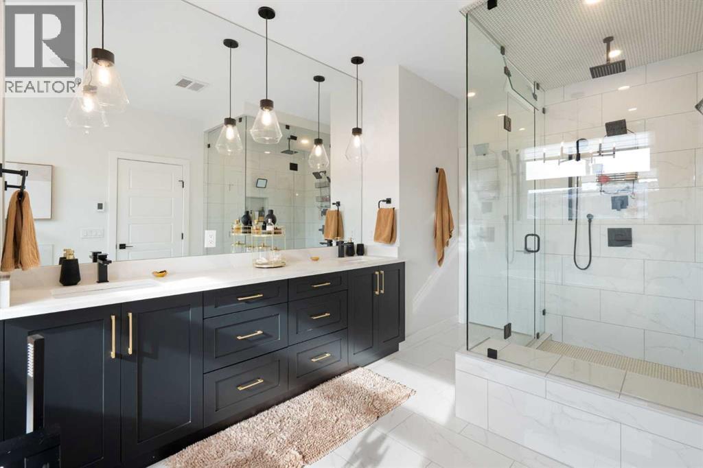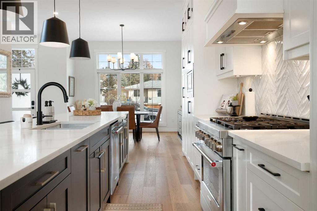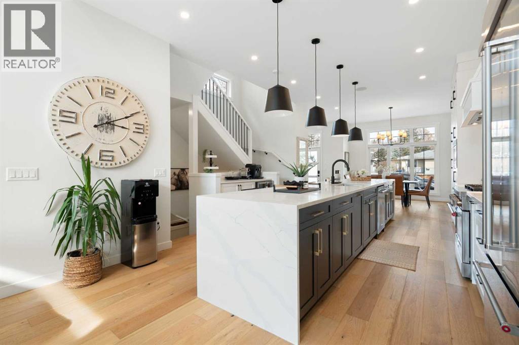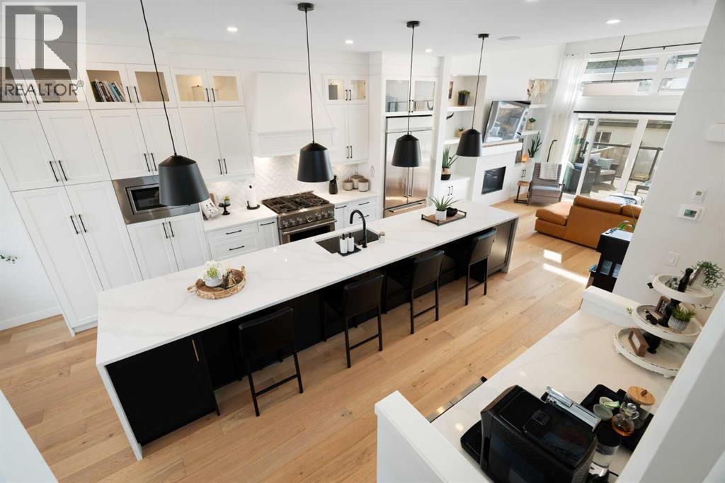 Quiet luxury in one of Calgary’s most up-and-coming inner-city neighbourhoods. With over $50,000 in upgrades since its 2022 build, this like-new home is truly move-in ready. Unlike a brand new build, there’s no need to spend $15,000 on window coverings, $15,000 on a composite deck and landscaping, or $7,000 for Air Conditioning - it’s all been recently done and more! Past the welcoming entry and dining space, you are greeted by a 15 foot long kitchen island, upgraded appliance package, ample cabinetry, and a stylish bar area complete with a wine fridge - perfect for entertaining. The living room features a cozy gas fireplace with custom built-in shelving, ready for your family photos and memories. Large sliding glass doors lead to your sunny southwest-facing backyard, complete with a gas BBQ hookup, creating the perfect space for hosting friends or relaxing at the end of the day. For everyday convenience, enter from your finished double garage into a full mudroom with custom storage, keeping coats, shoes, and gear neatly organized and separate from the main living areas. Wide-plank hardwood flooring runs throughout the main floor, adding warmth and a timeless, high-end feel. Upstairs, you’ll find two generously sized bedrooms, a 4-piece bathroom, and a spacious laundry room with a sink. The primary suite completes the upper level, offering a large closet with custom storage and a spa-inspired ensuite featuring a soaker tub, double vanity, heated floors, and expansive views. The fully finished basement with 9-foot ceilings adds even more living space with an additional bedroom with a walk-in closet, a 4-piece bathroom, and a fantastic entertainment area complete with a fully equipped wet bar - the perfect spot to host the big game or movie nights. The inner-city is ever changing, find comfort knowing that the neighbours have already been redeveloped - no more construction noise! Montgomery offers the best of inner-city living: minutes to downtown, easy access to the mountains, walking distance to the Bow River, Bowmont Park and Montalban Park (off-leash), Foothills Hospital, Market Mall, Safeway, Fringe Coffee and NOtaBLE Steakhouse. (id:6769