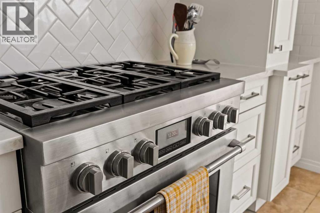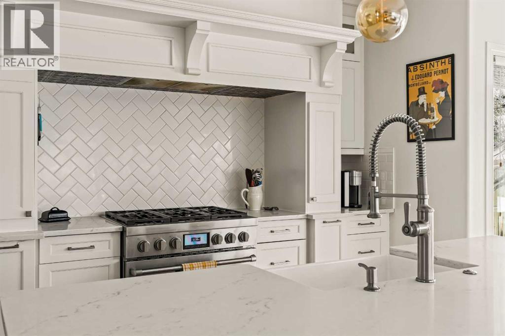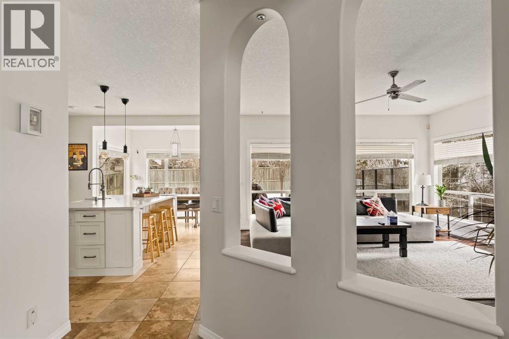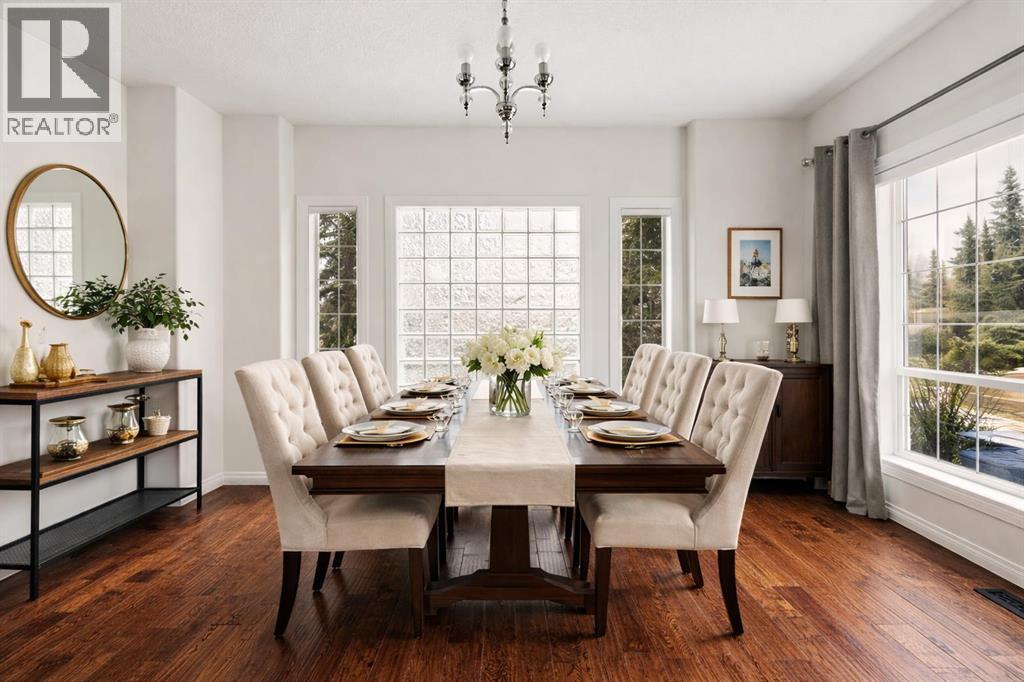 Welcome home to this beautifully renovated and lovingly maintained executive residence in Strathcona Park, one of Calgary’s premier west-side communities. Offering over 3,600 sq. ft. of developed living space, this exceptional home is perfectly suited for a growing family or professional seeking space, comfort, and refined living. Ideally positioned on a mature corner lot with a desirable southwest-facing backyard, the property enjoys an outstanding location within walking distance to Dr. Roberta Bondar School, parks, and scenic pathways. A soaring double-volume foyer welcomes you into the open-concept main floor, where expansive windows flood the home with natural light, creating a warm and inviting atmosphere throughout. At the heart of the home is a chef-inspired kitchen designed for both entertaining and everyday functionality. A 36” JennAir six-burner gas range is beautifully set into a custom alcove with a professional-grade hood fan, anchoring the space with both style and performance. An oversized central island, extensive cabinetry with pull-outs, and a spacious walk-in pantry provide exceptional storage and convenience. The generous dining nook overlooks the private backyard and flows seamlessly into the inviting family room, where rich hardwood flooring and a cozy gas fireplace create the perfect gathering space. At the front of the home, a formal dining room offers flexibility as a sitting area or den, while a private office with French doors provides an ideal work-from-home environment. The main level is thoughtfully completed with a mudroom, a 2-piece powder room, and a convenient laundry area. Upstairs, a spacious front bonus room with large windows creates the perfect setting for a media area or children’s play space. The expansive primary suite is a true retreat, featuring a private sitting area with mountain views and a beautifully renovated 5-piece ensuite designed for relaxation. Dual sinks, a freestanding soaker tub, a walk-in shower, and dual w alk-in closets provide both luxury and practicality. Two additional well-sized bedrooms and an updated full bathroom complete the upper level. The developed lower level further expands your living space, offering a large recreation area with a fully equipped wet bar complete with fridge, dishwasher, and sink. This level also includes a 3-piece bathroom, exercise room, and generous storage space. Outdoors, the southwest-facing backyard is framed by mature trees and shrubs, creating a private setting. Enjoy summer evenings on the rear deck or unwind in the hot tub, with seamless access from the kitchen for effortless indoor-outdoor living. An oversized side-access double garage provides ample storage and comfortable space for vehicles year-round. Perfectly located near walking paths, parks, and top-rated schools, this exceptional Strathcona Park home offers a rare blend of luxury, functionality, and timeless appeal in one of Calgary’s most sought-after neighbourhoods. (id:6769
