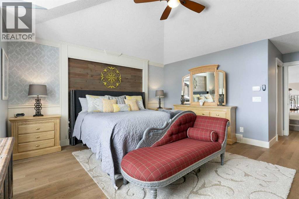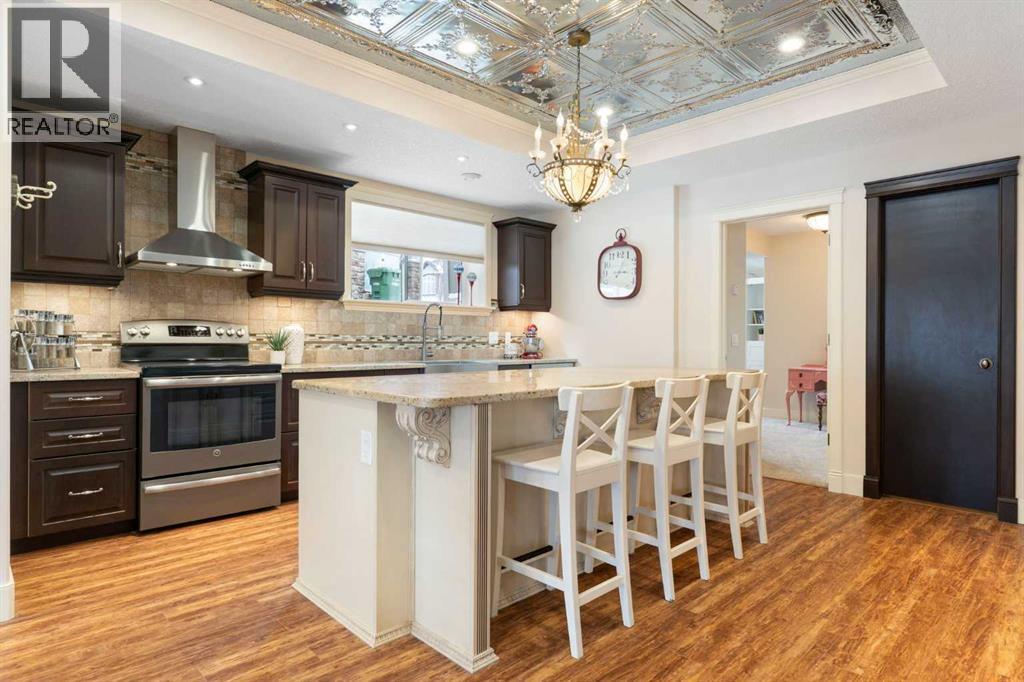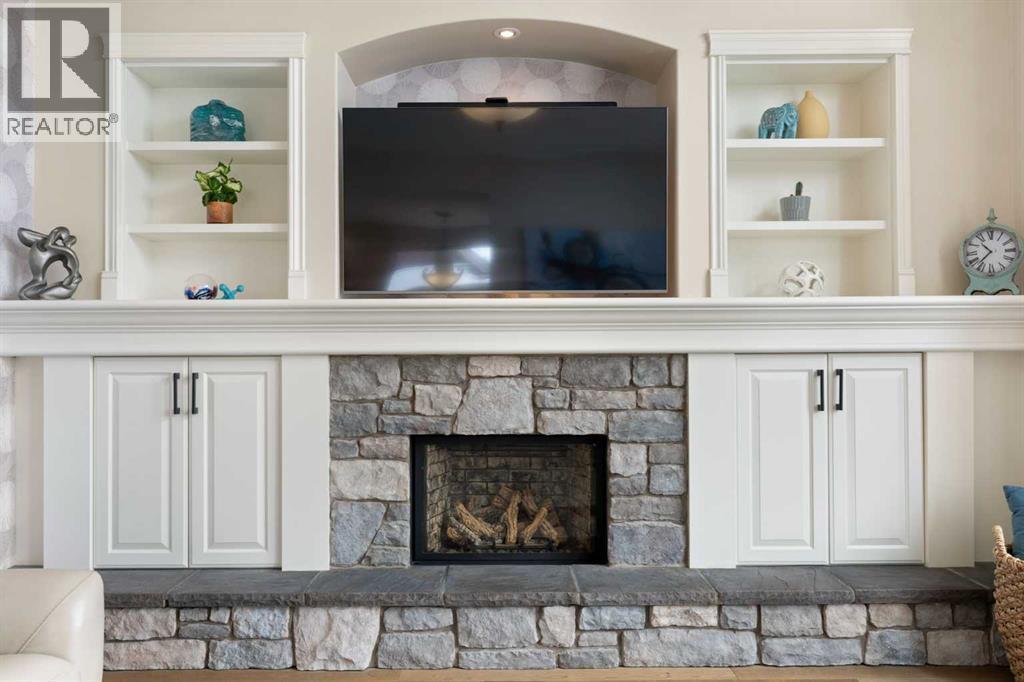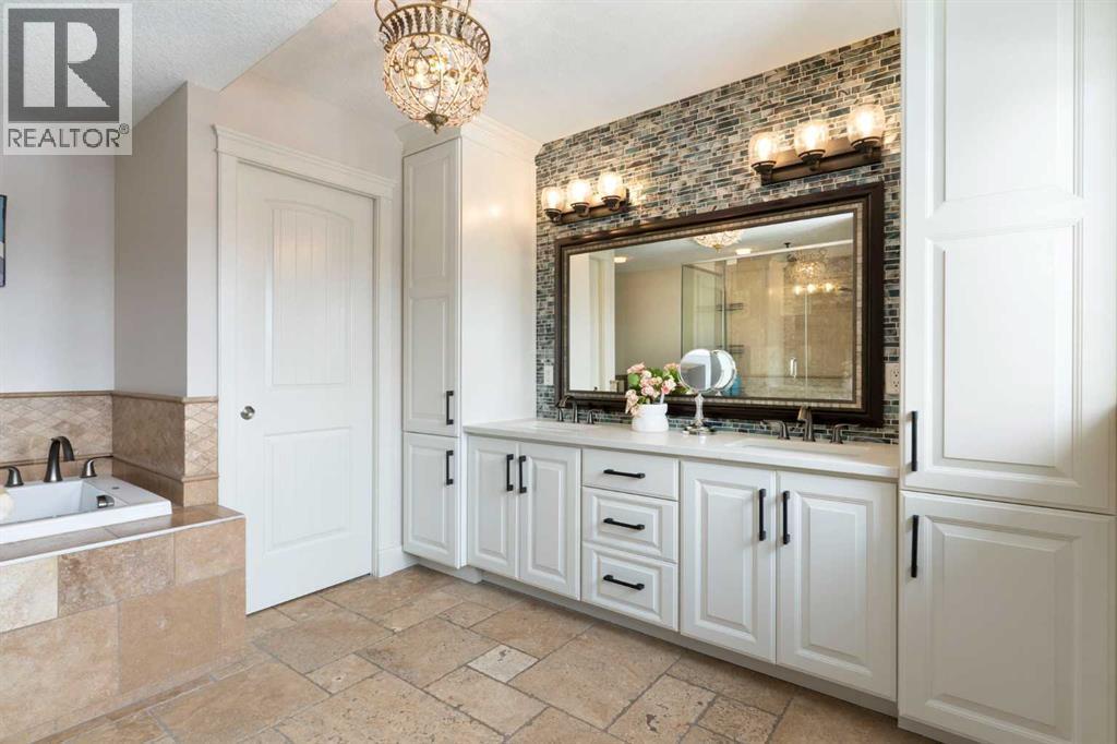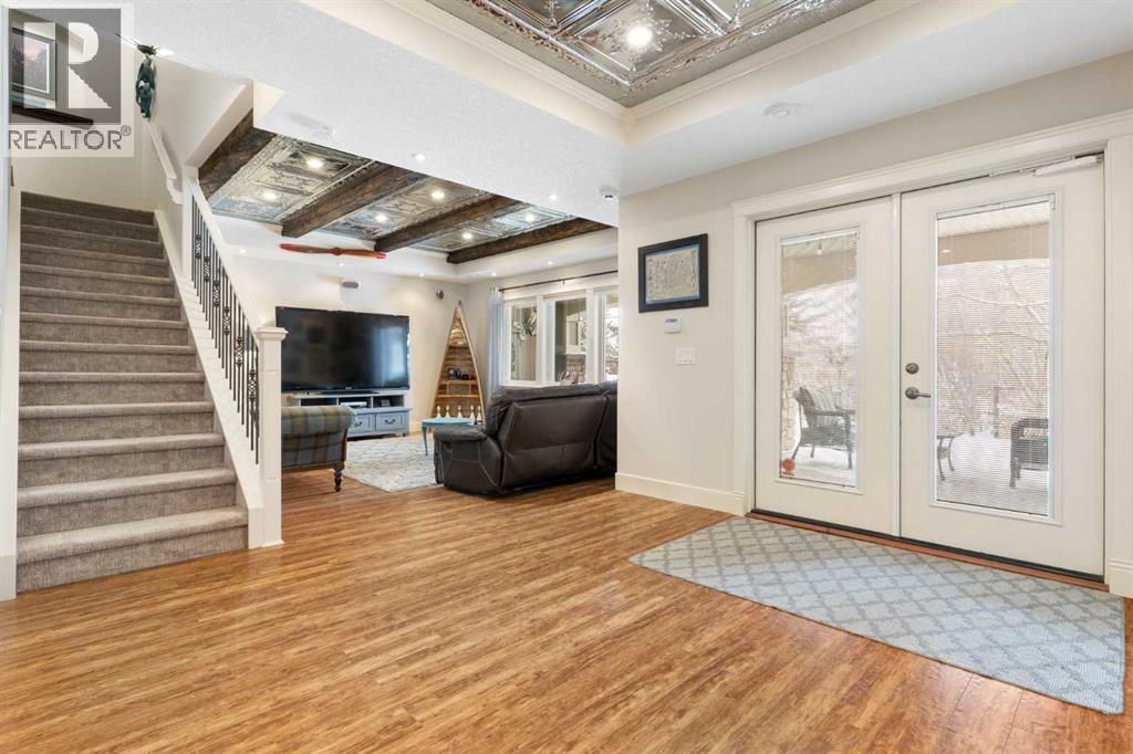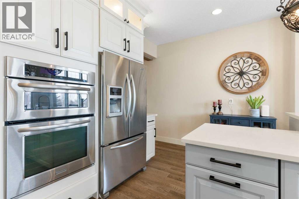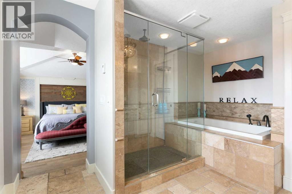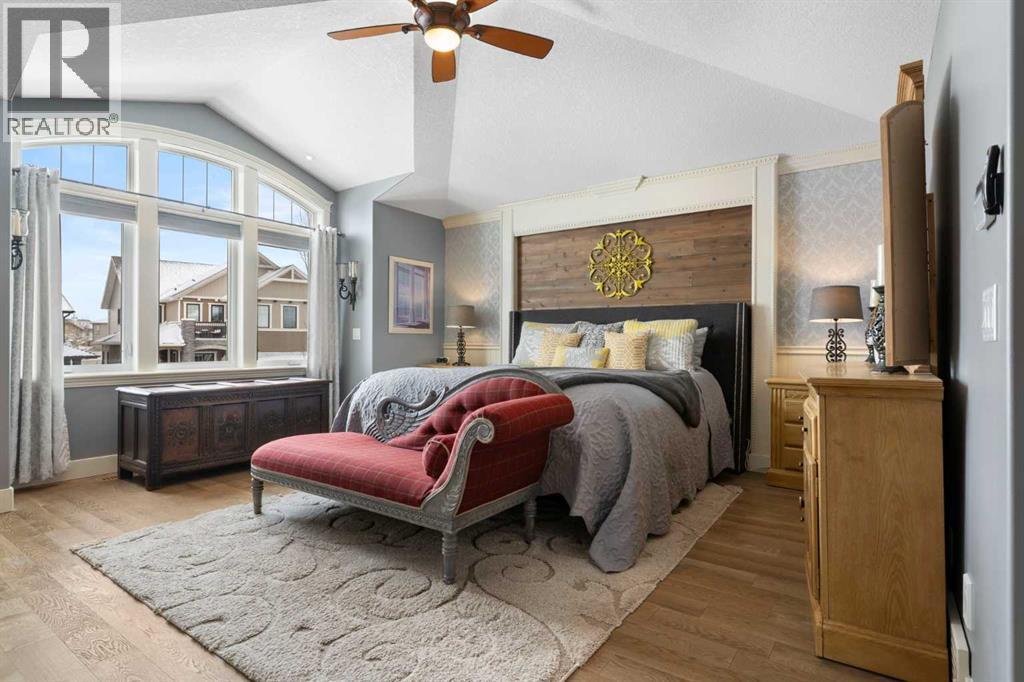 Hello, Gorgeous! Welcome to this beautifully renovated executive walkout home in the highly sought-after community of Coopers Crossing in Airdrie. Offering over 2,500sq ft. above grade plus a fully developed walkout basement, this home blends impressive architectural spaces with thoughtful custom finishes throughout. Step inside to a stunning entry featuring stacked stone accents, rustic beams, and an inviting sense of craftsmanship that continues throughout the home. The main floor includes a private office with glass French doors, perfect for working from home or flexible use as a dining space or additional bedroom. At the heart of the home is the dramatic great room with soaring 14-foot vaulted ceilings, arched windows, and a beautiful fireplace feature wall that fills the space with natural light from the west-facing backyard.The chef-inspired kitchen is designed for both everyday living and entertaining, featuring a large island, quartz countertops, professionally painted two-tone cabinetry, custom organizers, and a striking solid walnut hood fan. Premium appliances include KitchenAid, Bosch, Thermador, and MasterChef, along with a gas range, wall oven, beverage cooler, and walk-in pantry. Upstairs, a welcoming loft creates an additional living space for relaxing or family time. Two spacious bedrooms share a well-appointed bathroom, while the impressive primary retreat offers vaulted ceilings, custom wall detailing, and a luxurious ensuite with heated floors, double vanity, soaker tub & separate water closet. The fully developed walkout basement adds incredible flexibility with a gorgeous second full kitchen, large recreation area, full bathroom, wine/cool room, and a spacious additional bedroom or versatile flex room with built-in Murphy bed. With its high-end finishes and thoughtful layout, this level is ideal for entertaining or multi-generational living. Outdoor living is just as impressive with a west-facing backyard, a 300sq ft. Duradek balcony with glas s railing, natural gas line for BBQ, and a walkout patio below with additional gas connections and hot tub rough-in, plus two storage sheds. The beautifully landscaped yard features custom concrete work, mature trees and shrubs, and a 7-zone irrigation system. Completing the home is a triple attached garage plus shop area, with epoxy floors, forced-air heating, workshop wiring, EV/welder outlets, and extensive built-in storage. Located in one of Airdrie’s most desirable communities, close to parks, pathways, schools, and amenities, this exceptional home offers the perfect combination of space, luxury, and functionality. (id:6769