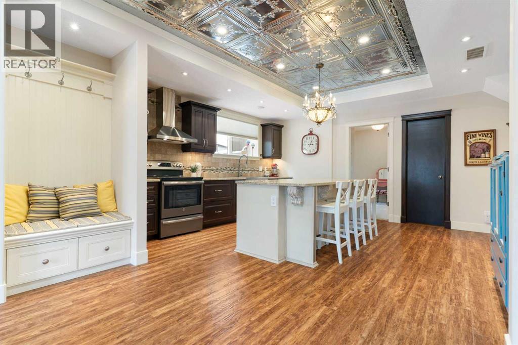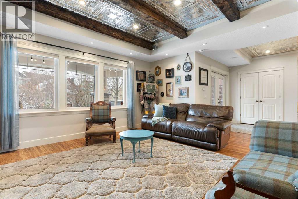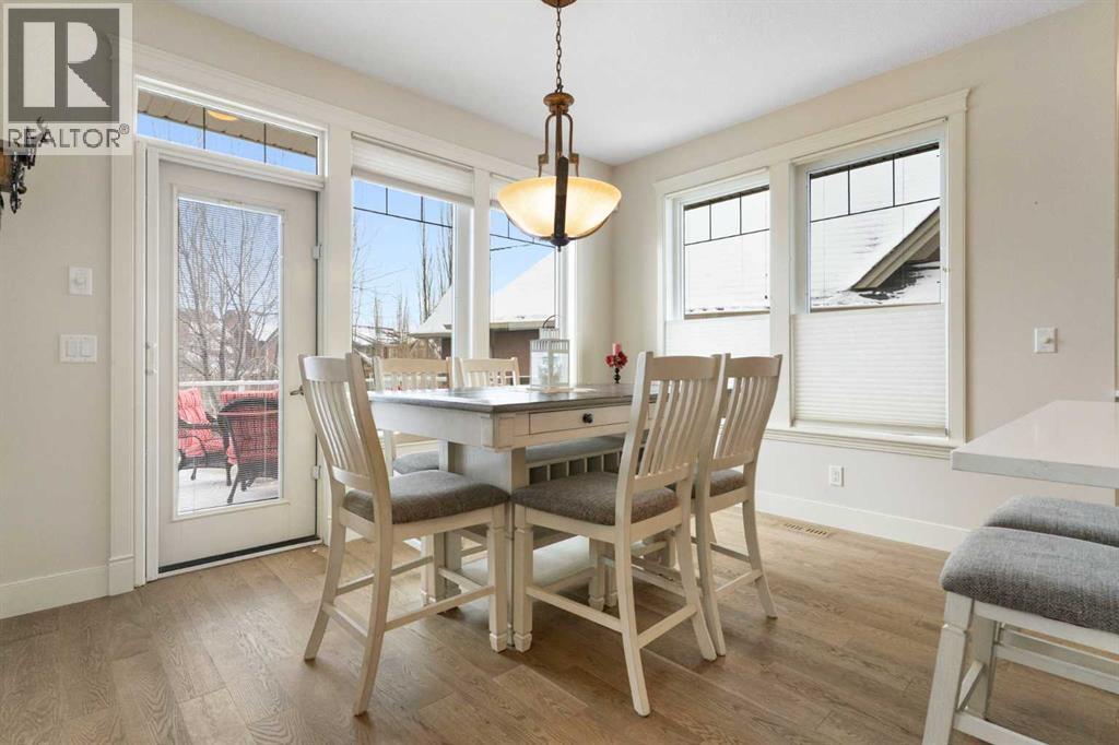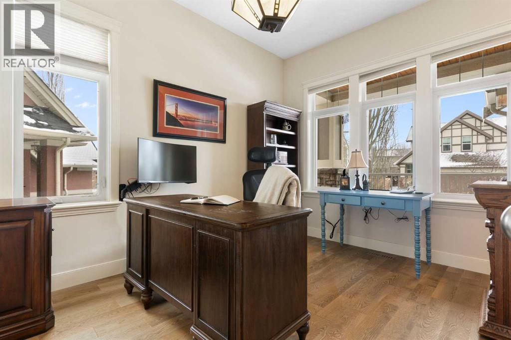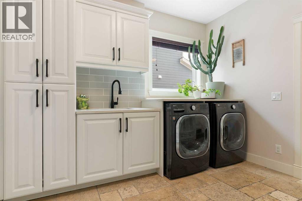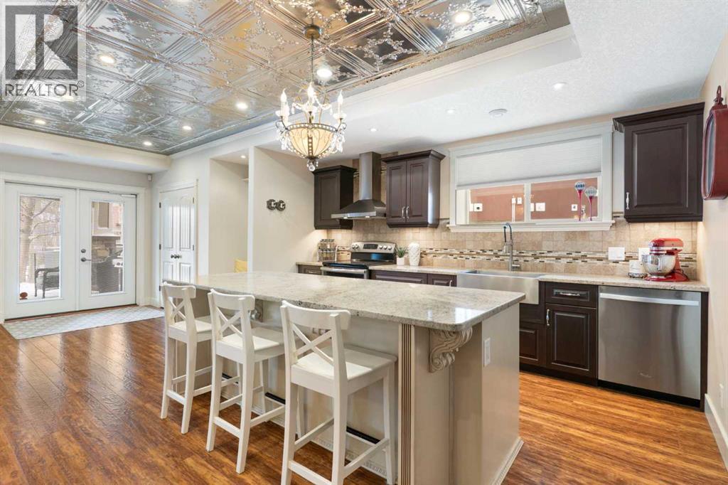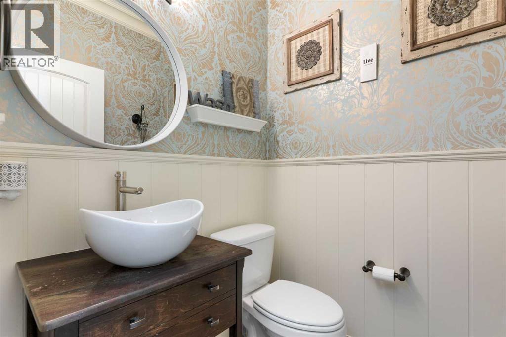 Hello, Gorgeous! Welcome to this beautifully renovated executive walkout home in the highly sought-after community of Coopers Crossing in Airdrie. Offering over 2,500sq ft. above grade plus a fully developed walkout basement, this home blends impressive architectural spaces with thoughtful custom finishes throughout. Step inside to a stunning entry featuring stacked stone accents, rustic beams, and an inviting sense of craftsmanship that continues throughout the home. The main floor includes a private office with glass French doors, perfect for working from home or flexible use as a dining space or additional bedroom. At the heart of the home is the dramatic great room with soaring 14-foot vaulted ceilings, arched windows, and a beautiful fireplace feature wall that fills the space with natural light from the west-facing backyard.The chef-inspired kitchen is designed for both everyday living and entertaining, featuring a large island, quartz countertops, professionally painted two-tone cabinetry, custom organizers, and a striking solid walnut hood fan. Premium appliances include KitchenAid, Bosch, Thermador, and MasterChef, along with a gas range, wall oven, beverage cooler, and walk-in pantry. Upstairs, a welcoming loft creates an additional living space for relaxing or family time. Two spacious bedrooms share a well-appointed bathroom, while the impressive primary retreat offers vaulted ceilings, custom wall detailing, and a luxurious ensuite with heated floors, double vanity, soaker tub & separate water closet. The fully developed walkout basement adds incredible flexibility with a gorgeous second full kitchen, large recreation area, full bathroom, wine/cool room, and a spacious additional bedroom or versatile flex room with built-in Murphy bed. With its high-end finishes and thoughtful layout, this level is ideal for entertaining or multi-generational living. Outdoor living is just as impressive with a west-facing backyard, a 300sq ft. Duradek balcony with glas s railing, natural gas line for BBQ, and a walkout patio below with additional gas connections and hot tub rough-in, plus two storage sheds. The beautifully landscaped yard features custom concrete work, mature trees and shrubs, and a 7-zone irrigation system. Completing the home is a triple attached garage plus shop area, with epoxy floors, forced-air heating, workshop wiring, EV/welder outlets, and extensive built-in storage. Located in one of Airdrie’s most desirable communities, close to parks, pathways, schools, and amenities, this exceptional home offers the perfect combination of space, luxury, and functionality. (id:6769