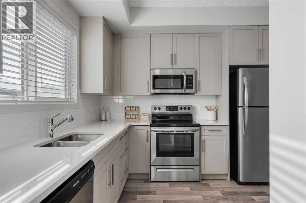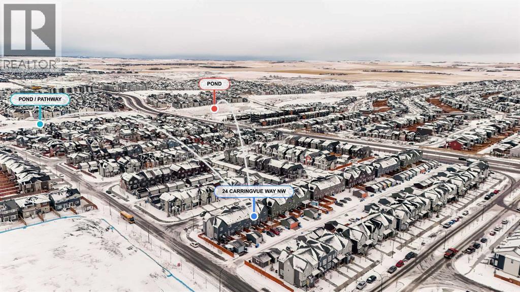 **Open Houses Sat. Mar. 14 & Sun. Mar. 15 from 1:00-4:00pm** NO CONDO FEES and meticulously maintained, this 3-bedroom, 2.5-bath townhome in Carrington offers 1,224 sq.ft. of thoughtfully designed living space, a private outdoor setting, and valuable future garage potential. Built in 2019, the home has been carefully cared for with recent exterior improvements including new siding and roof (2025) and a new furnace blower installed in 2025, reflecting consistent maintenance of the home’s key mechanicals.The main level connects a bright living and dining area to the kitchen, finished with quartz countertops carried throughout the home and stainless steel appliances, creating a clean and durable workspace for everyday living and entertaining. Generous windows—including an oversized bedroom window upstairs—fill the home with natural light.Upstairs, you’ll find three bedrooms, including a primary suite with a spacious walk-in closet and private 3-piece ensuite with shower, while the remaining bedrooms share a 4-piece full bathroom.The professionally completed partial basement currently functions as a comfortable second living room, an ideal escape for movie nights or quiet evenings, while the remaining area is used as a gym and is ready for the next owner’s vision.Outside, the fully fenced, maintenance-free landscaped backyard includes a gas BBQ line and opens to a 2-car gravel parking pad with wiring rough-in, ready for a future oversized single detached garage or workshop. Located on a quiet street steps from Carrington’s pathway network with convenient access to Stoney Trail and nearby amenities, this home offers a balanced blend of comfort, flexibility, and long-term value. (id:6769