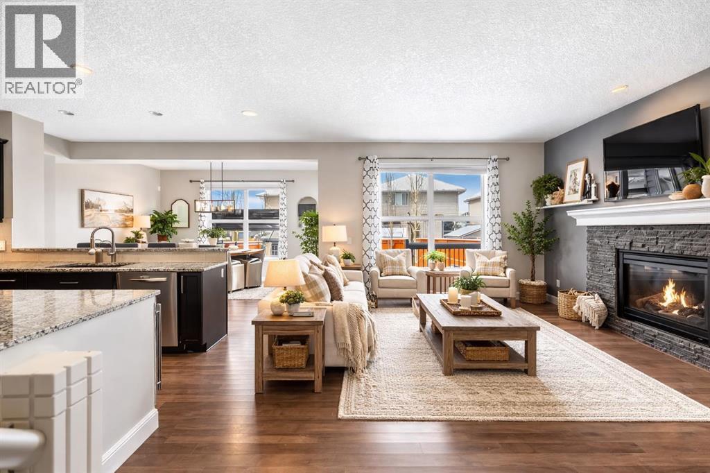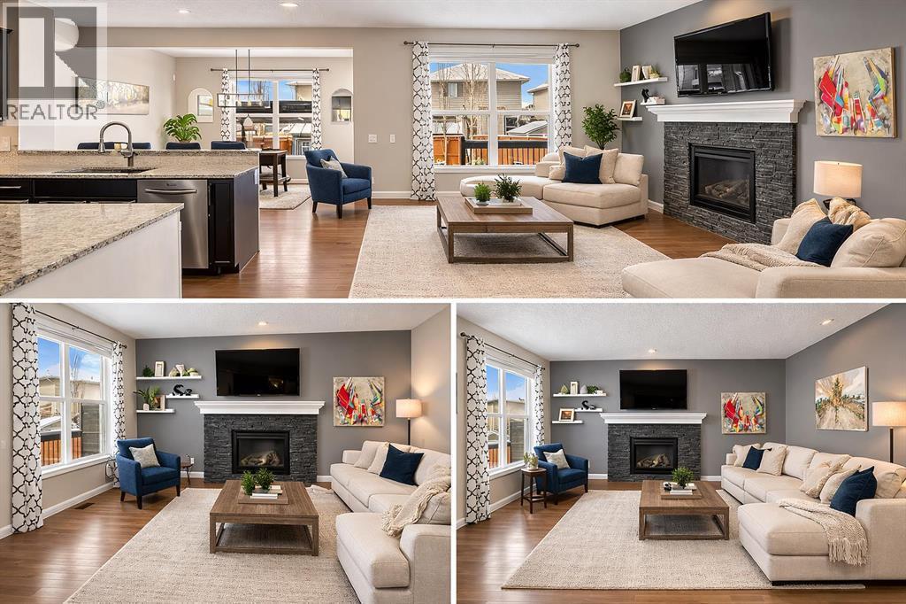 Welcome to this impressive original owner Jayman-built Allure plan perfectly located with a west-facing backyard and direct pathway access to baseball diamonds, soccer fields and Bayside School as well as a short walk to Prince of Peace and Lakeshore school Jr High. Offering thoughtful upgrades, 9' ceilings on the main, upper and basement levels, spacious living areas, and a fully developed basement, this home is designed for comfortable family living and entertaining.The main floor welcomes you with a tiled entry and rich hardwood flooring flowing through the living room, dining area, and kitchen. The open concept design features 9’ knockdown ceilings and a striking brick gas fireplace creating a warm and inviting space.The chef's kitchen is beautifully appointed with extended dark cabinetry, granite countertops, a large center island, tiled backsplash, beverage fridge, gas stove, built-in oven and microwave, and a chimney-style hood fan. A walk-in pantry and convenient linen storage add functionality, while built-in speakers throughout the main floor enhance the entertainment experience. A stylish 2-piece bath with granite vanity completes the level. The double attached garage is heated and features tall ceilings, custom shelving and workbench.Downstairs, the professionally developed basement (with permits) offers exceptional additional living space with 9’ ceilings, dry core flooring, and a second gas fireplace. The recreation area includes a fully equipped wet bar with island, fridge, dishwasher, storage cabinetry, and tiled finishes, making it ideal for entertaining. The basement also features a 4th bedroom, a 3-piece bathroom with tiled shower and granite vanity, a workout area, and additional storage, with potential space for another bedroom. Speaker rough-ins are also installed throughout the recreation area.Upstairs you'll find a central bonus room with built-in speakers, a dedicated desk/work area, Juliet balcony and convenient upper-floor laundry. Two additional bedrooms share a 4-piece bathroom with granite vanity and tiled tub surround. The spacious primary suite is located at the back of the home and features a walk-in closet and luxurious 5-piece ensuite complete with dual sinks, granite counters, heated tile floors, separate shower, and soaker tub.Step outside to enjoy the west-facing backyard, featuring a two-tier deck with concrete pad, BBQ gas line, storage shed, and outdoor speaker rough-ins. The slightly reverse pie-shaped lot offers extra side space with potential trailer access.Additional highlights include central air conditioning, HRV system, high-efficiency furnace with new blower motors, and excellent proximity to parks, pathways, and schools.This is a beautifully maintained home in a fantastic family-friendly location that offers space, comfort, and great entertaining features both inside and out. (id:6769
