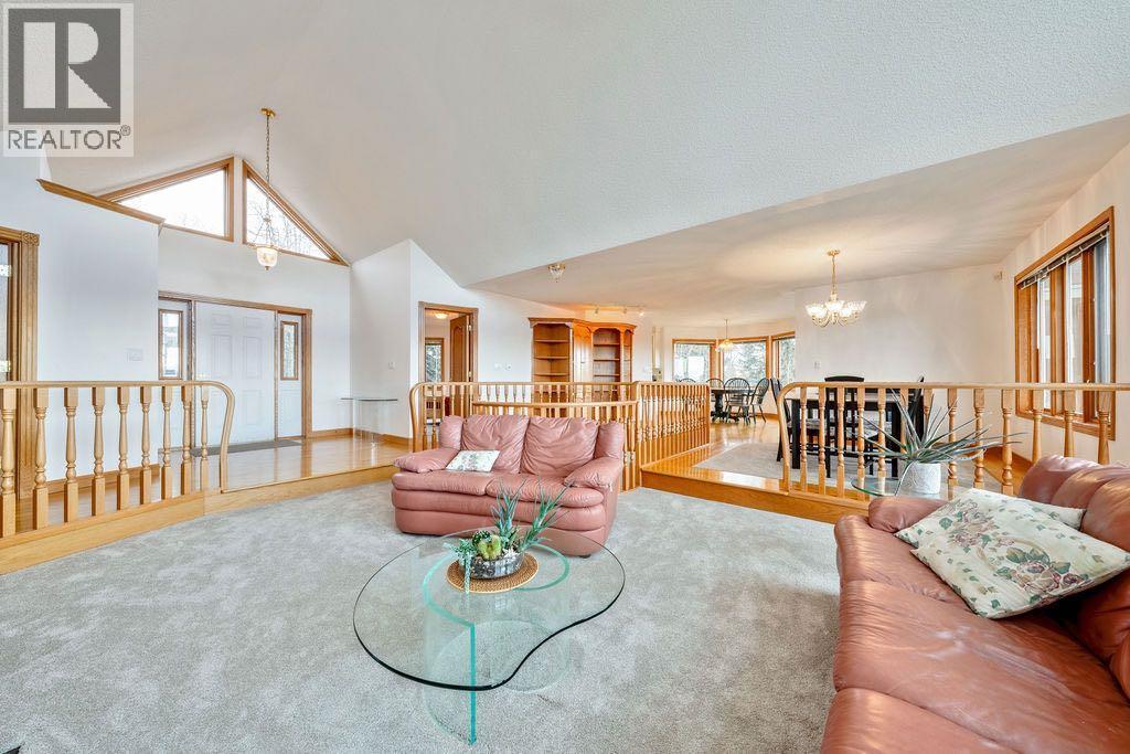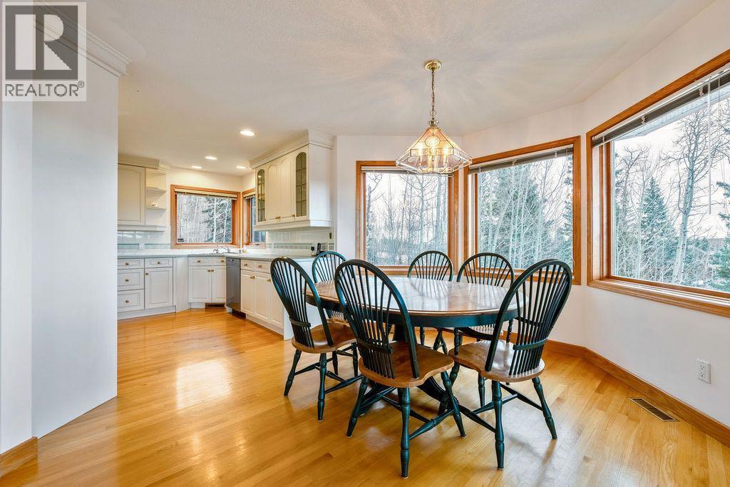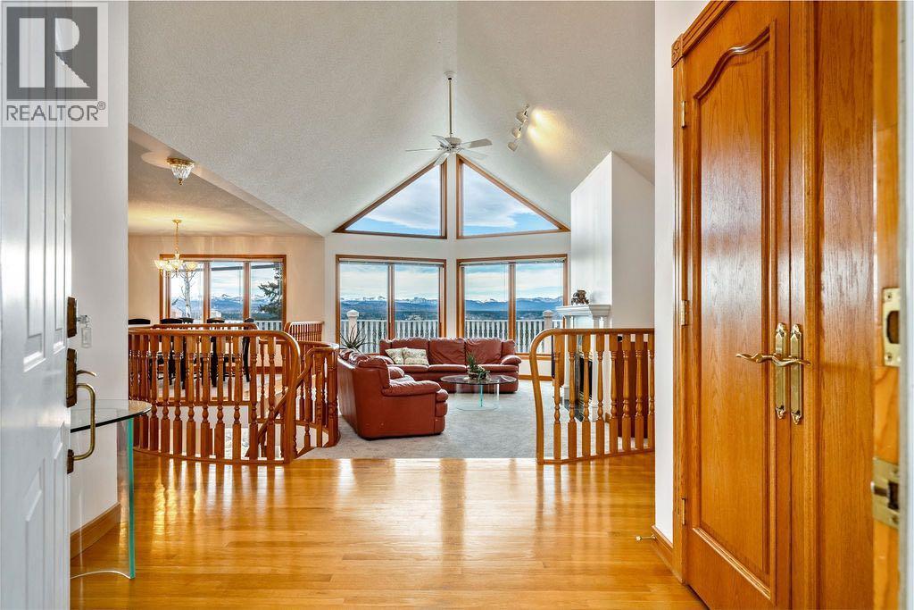 Words cannot describe the view from this beautiful walk out bungalow with over 3800 sq ft of living space in Priddis Woods. Mountains, mountains and more mountains! Artists and photographers of all abilities will be unable to take their eyes away from one of nature's finest displays of Southern Alberta. This is truly a special location. A home for the most discerning buyer. Sunshine highlights the gleaming hardwood floors .. and of course the view. A beautiful sunroom ..to gaze at the view. a wall of windows in the living room and dining room catch.. yes the view. Three large bedrooms upstairs and the primary bedroom has .... you guessed it .. the view. Walking down the circular staircase to the large family room you eyes immediately go to.. the view! Another three bedrooms on lower level .. and yes of course they have views, underfloor heating throughout this level and a stair to the attached triple garage which also has underfloor heating. Garage also has access from upper level. Carpet recently replaced. This property has towering spruce trees, sunshine and although you do have neighbours you can imagine yourself in your own private space with no-one else around. A walking pathway around the community encourages strolls through nature. If you are looking for that very special place you must come and see this property. Oh .. and did I mention the views?? (id:6769