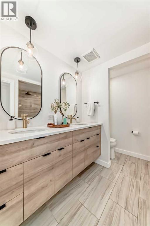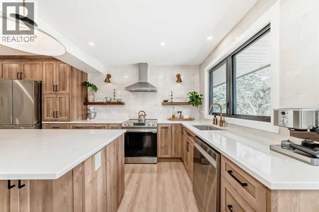Hello, Gorgeous! Welcome to 42 Point Drive NW in the sought-after river community of Point McKay. This beautifully renovated townhome offers 1,368 sq ft of above-grade living space with 2 bedrooms and 3 bathrooms in a thoughtfully designed multi-level layout. Backing directly onto peaceful greenspace with a west-facing outdoor area, this home offers rare privacy while being just steps from the Bow River pathway system and minutes to downtown Calgary. Inside, extensive upgrades create a modern and comfortable interior, including a custom chef’s kitchen with designer drawer layout, newer appliances with induction stove, luxury vinyl flooring throughout, and stylish designer lighting. The bright living area features a tiled gas fireplace and large triple-glazed windows that bring in abundant natural light, while a sliding patio door provides seamless access to the outdoor space. Upstairs, two spacious bedrooms include a primary retreat with walk-in closet and a beautifully appointed ensuite featuring heated floors and high-end fixtures. Mechanical and infrastructure updates include all new plumbing with copper removed, triple-glazed windows and patio door, updated furnace, hot water on demand, electrical upgrades, smart thermostat, and hardwired smoke detectors. The unfinished basement provides additional storage and future potential. Additional features include an attached garage, custom built-ins, wine storage, and landscaped front garden with perennials. Located in one of Calgary’s most unique inner-city communities, this home offers easy access to river pathways, parks, Foothills Hospital, the University of Calgary, and downtown, making it an ideal opportunity for professionals, downsizers, or anyone seeking an active lifestyle close to nature and the city. (id:6769
