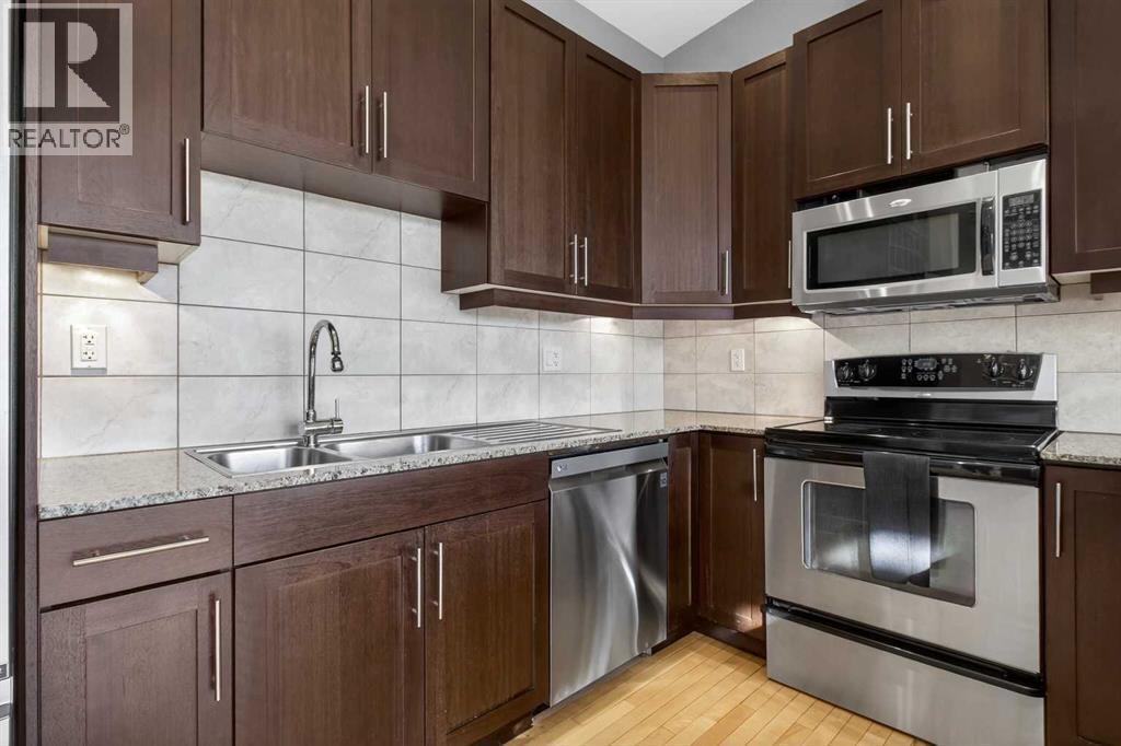Experience luxury living at its finest in this stunning Crescent Heights penthouse, perfectly situated just moments from downtown. Boasting 2 bedrooms and 2 full bathrooms, this residence combines sophisticated design with unparalleled convenience. Step into the open-concept layout, enhanced by vaulted ceilings with striking accent beams and gleaming light-colored hardwood floors. South-facing windows flood the space with natural light while framing stunning city skyline views. Relax by the cozy gas fireplace or enjoy year-round comfort with central A/C. The gourmet kitchen is a chef’s dream, featuring stainless steel appliances, granite countertops, and a walk-in pantry, complemented by numerous thoughtful upgrades throughout. The spacious bedrooms offer both comfort and style, while the spa-inspired master suite includes a walk-in steam shower and double large closets. Step out from the living room onto the big balcony, perfect for BBQs and entertaining while enjoying spectacular views. Additional perks include 2 assigned covered parking stalls and its own assigned storage unit. Nestled in a prime inner-city location, you’re within walking distance to the trendy Bridgeland strip, Bow River, East Village, Kensington, Downtown, and the Bow River Pathway system. Explore nearby premier restaurants and lush city parks—everything you need for vibrant city living. This penthouse isn’t just a home; it’s a statement of style, comfort, and convenience. Don’t miss the chance to own this exceptional residence! (id:6769