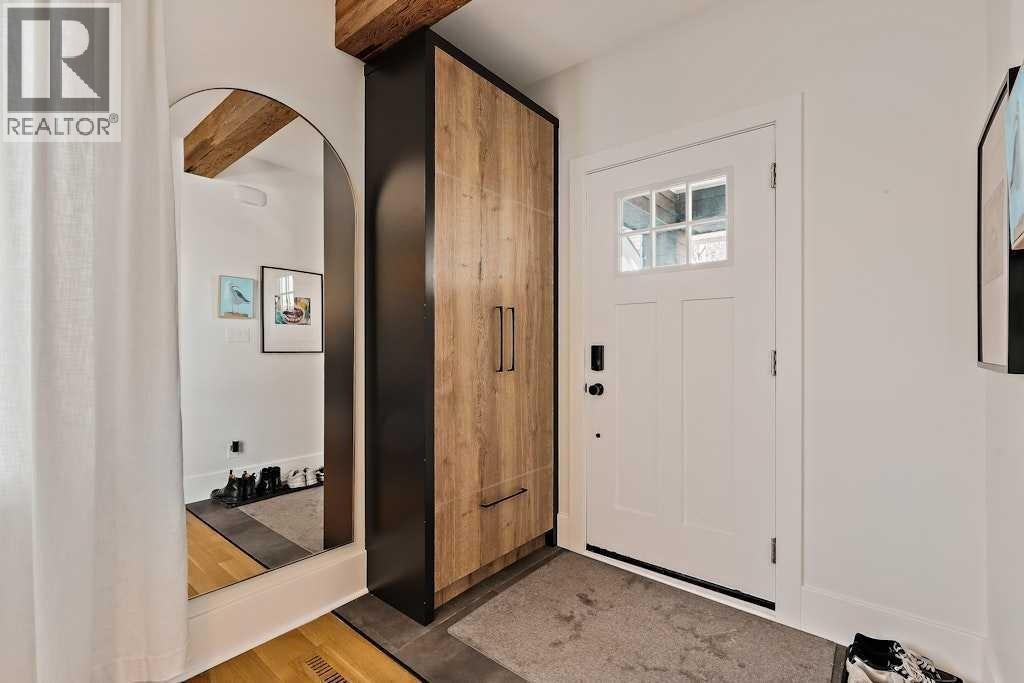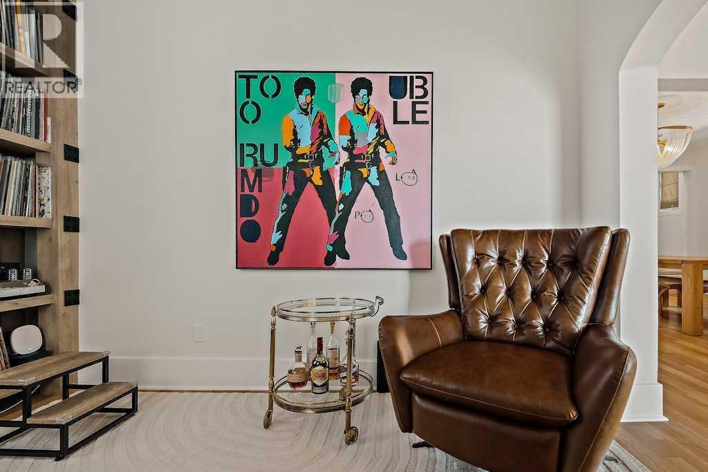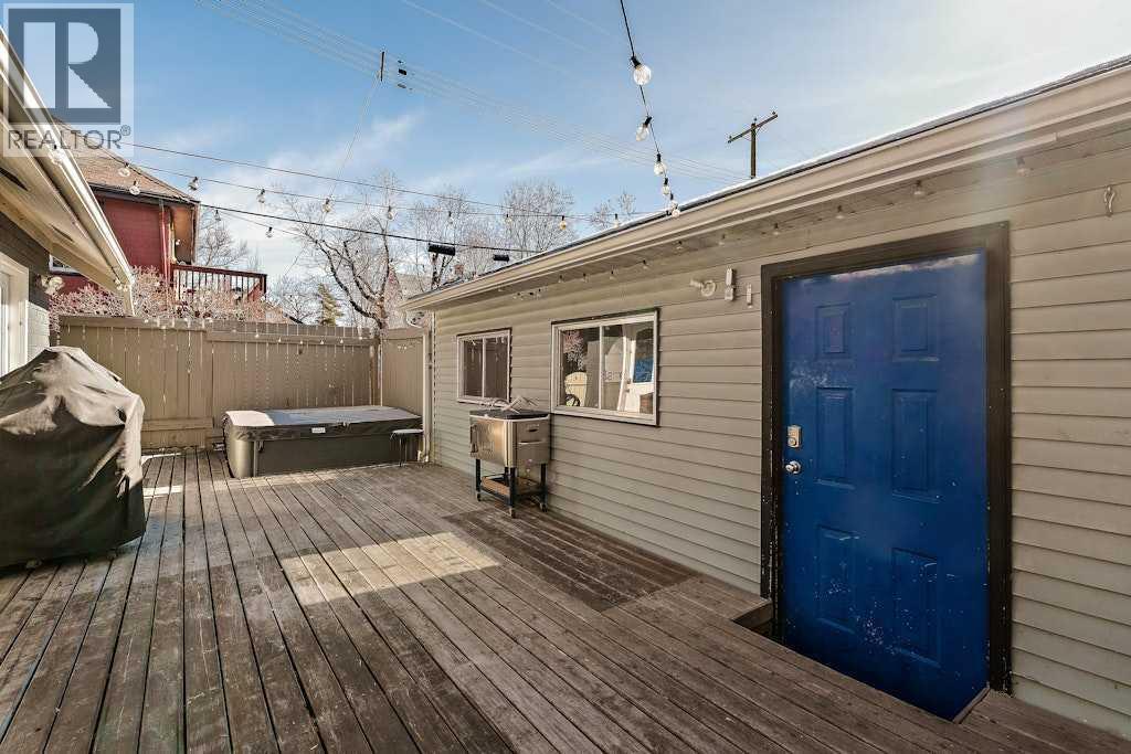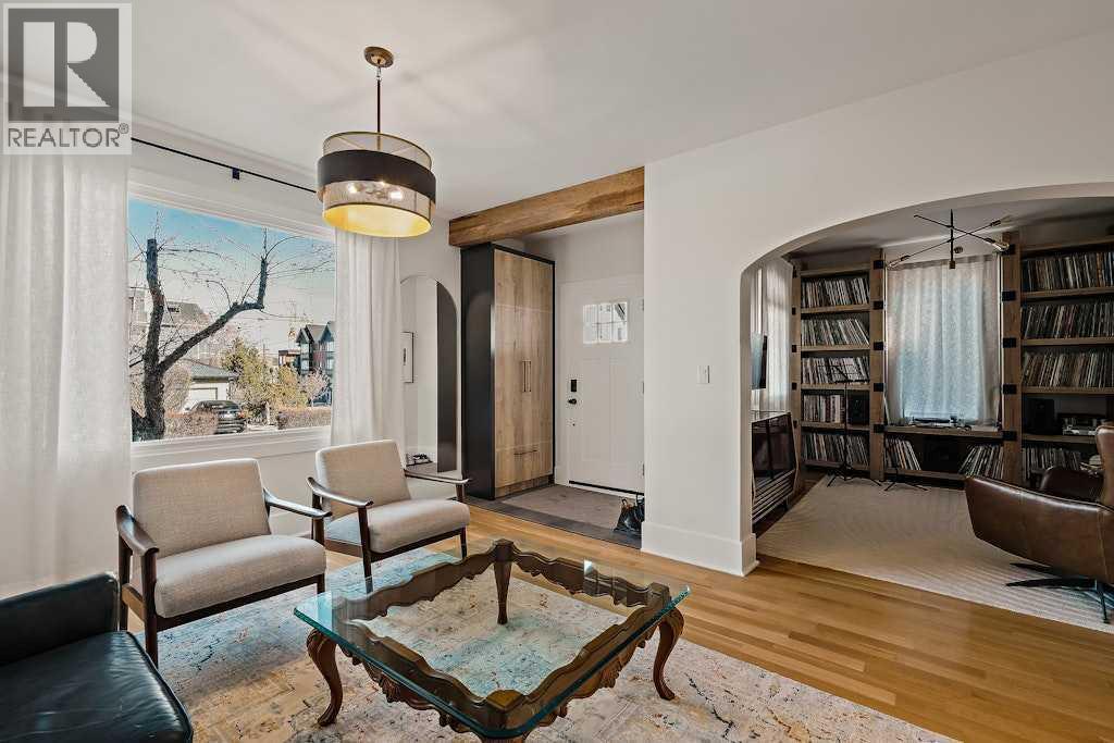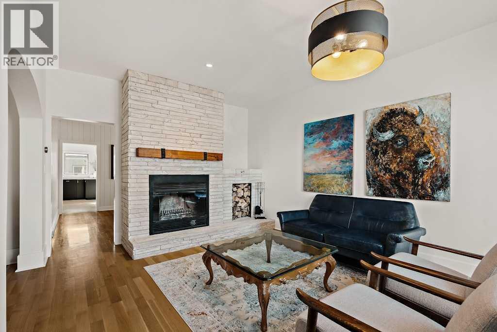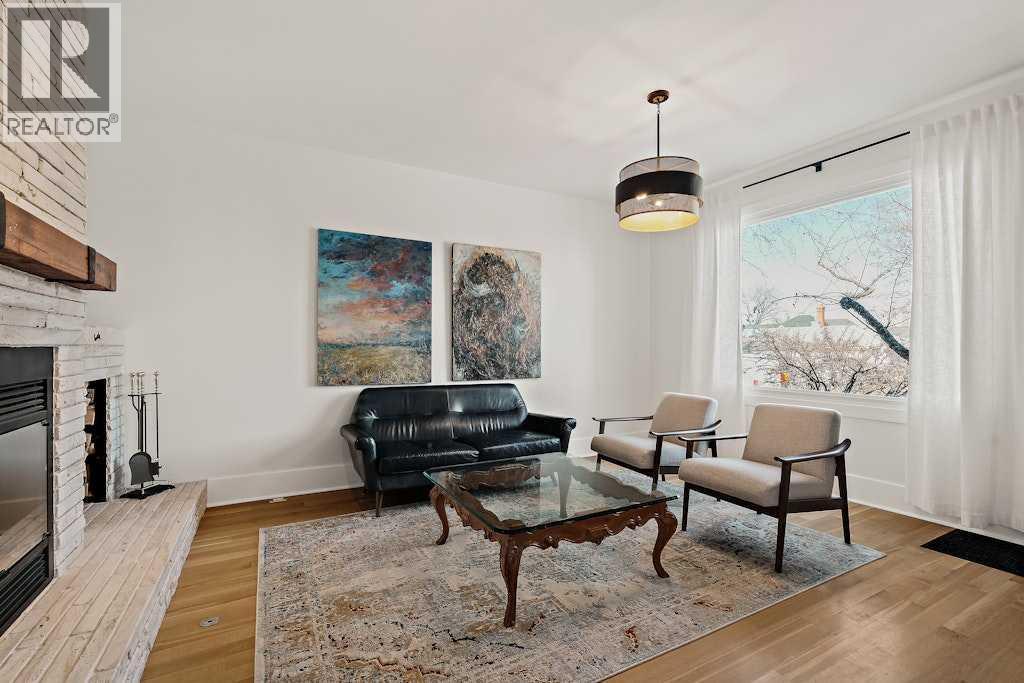 Updated character home in the heart of Bankview featuring a rare wood-burning fireplace, main-floor primary suite, and oversized double garage. All just minutes from the restaurants and energy of 17th Avenue.The covered Douglas fir front porch welcomes you into a home that balances original charm with thoughtful modern updates. Inside, the living room is anchored by a striking wood-burning fireplace finished with floor-to-ceiling stone and a custom mantle. Natural light highlights newly installed rift- and quarter-sawn white oak hardwood floors that run throughout most of the main level.One of the home’s most distinctive spaces is the dedicated vinyl listening lounge, perfect for relaxing with music or easily used as a quiet home office.The spacious dining area flows naturally into the kitchen, which features a gas stove, generous counter space, and excellent storage. Rare for a home of this era, the main floor also includes a true primary suite complete with walk-in closet and a fully renovated ensuite, allowing the home to comfortably live like a bungalow if desired.Just outside, the sunny south-facing deck creates a perfect outdoor retreat, complete with a nearly new hot tub and access to the oversized insulated double garage.The fully renovated basement offers full ceiling height and excellent additional living space, including a large recreation area ideal for entertaining, a home gym, or games room. You’ll also find an inviting bedroom with an egress window and another beautifully finished full bathroom.Upstairs are two additional spacious bedrooms along with a private half-bath.The elevated front yard is fully fenced and planted with low-maintenance micro-clover, creating a practical and pet-friendly outdoor space.Major upgrades include a new sewer and water line, hot water tank, water softener, many updated windows, a new front door, fresh paint, updated lighting, and a Nest thermostat.Located in one of Calgary’s most walkable inner-city ne ighbourhoods with easy access to downtown, parks, and the shops and restaurants of 17th Avenue, this move-in ready home offers the perfect balance of historic character and modern comfort. (id:6769