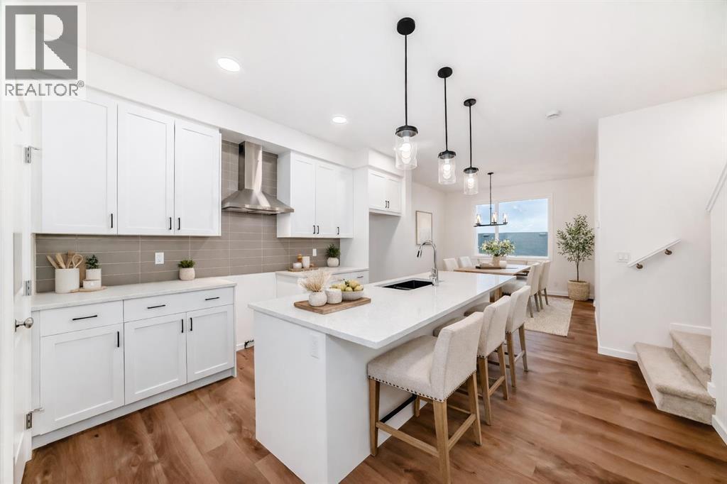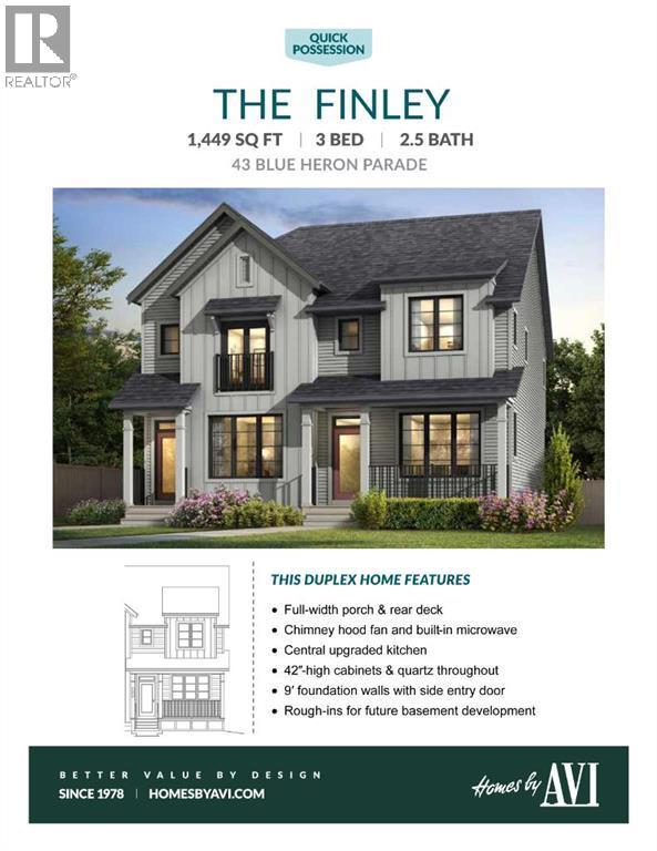 STARTING OUT IN REAL ESTATE IS A LOT MORE FUN WHEN THE HOUSE IS ALREADY THINKING A FEW STEPS AHEAD.This Finley model from Homes by Avi keeps things efficient in the best possible way. At 1,449 SQ FT ABOVE GRADE, the layout focuses on the spaces you actually use instead of padding the floor plan with rooms that sound good on paper but rarely earn their keep.The main floor is centred around a kitchen designed for real daily life. QUARTZ COUNTERTOPS, 42" UPPER CABINETRY, a CHIMNEY HOOD FAN, and a BUILT-IN MICROWAVE keep the space functional and clean-lined, while the island becomes the natural landing spot for coffee, laptops, groceries, and the conversations that happen in between. The dining and living areas flow easily from there, creating a main floor that feels open without wasting square footage.Upstairs keeps the same practical approach. Three bedrooms, two full bathrooms, and upper laundry give the home a layout that works the way most households actually live. The PRIMARY BEDROOM includes a WALK-IN CLOSET and PRIVATE ENSUITE, while the secondary bedrooms offer flexibility for family, guests, or a dedicated home office.Where this home quietly sets itself apart is downstairs. The 9’ BASEMENT WITH A SEPARATE SIDE ENTRY is already set up for the future with plumbing rough-ins, laundry rough-ins, and a bar sink rough-in in place. Behind the scenes, the mechanical planning goes even further with 200-AMP ELECTRICAL SERVICE, an EV CHARGER ROUGH-IN, and a SOLAR CONDUIT running from the mechanical room to the attic—infrastructure decisions that make a home far more capable over time.Outside, a REAR DECK and TWO-CAR PARKING PAD off the lane keep things simple and functional today while leaving room for whatever the next phase looks like.Set in Rangeview, a southeast Calgary community planned around tree-lined pathways, connected parks, and calm residential streets, with quick access to Seton, Mahogany, Deerfoot Trail, and Stoney Trail. If you’re stepping in to the market for the first time—or looking for a property that makes long-term sense as a rental—this one is worth seeing in person. Ready to call home in April!• PLEASE NOTE: Photos are of a DIFFERENT of the same model – fit and finish may differ on finished spec home. Interior selections and floorplans shown in photos. (id:6769