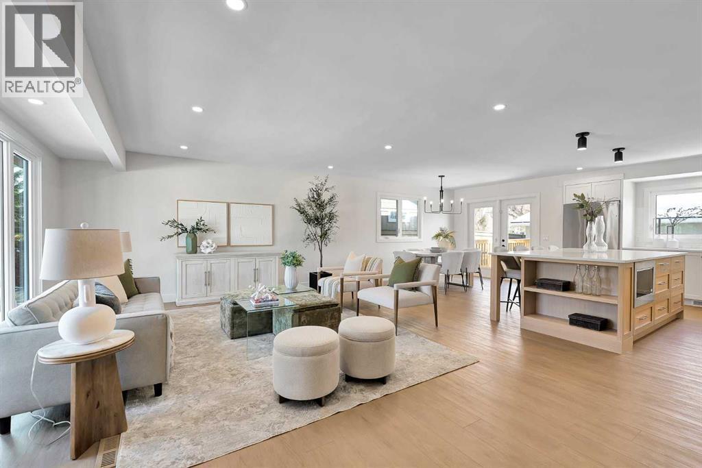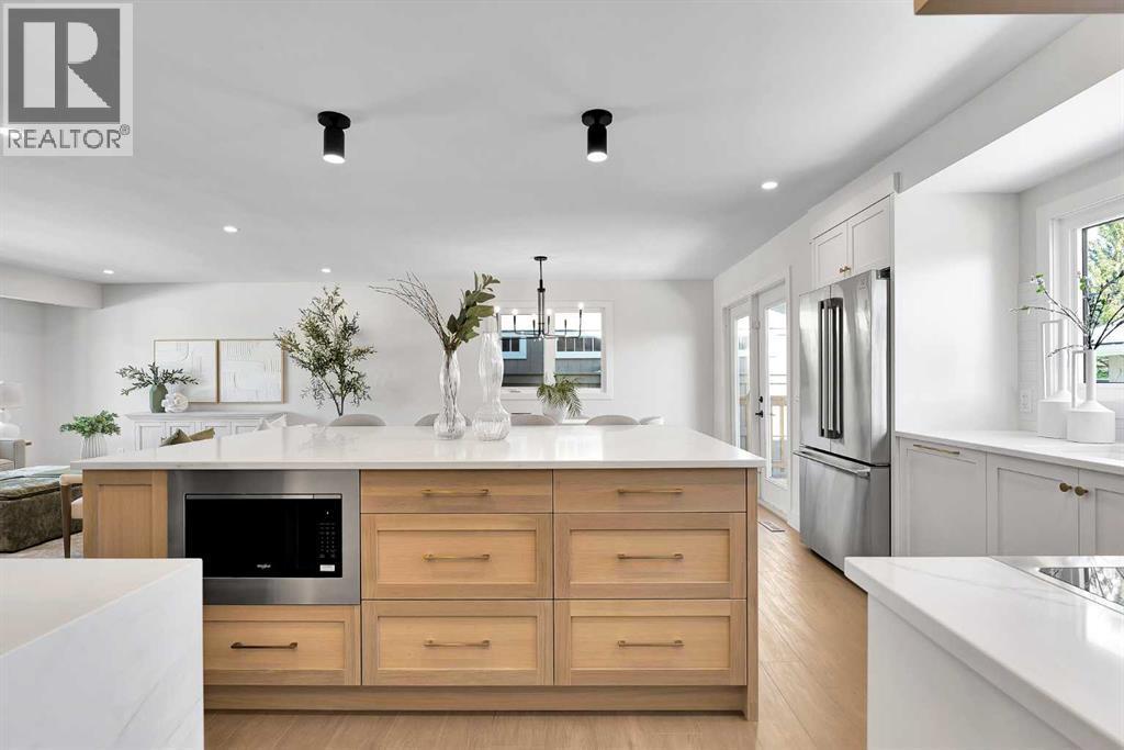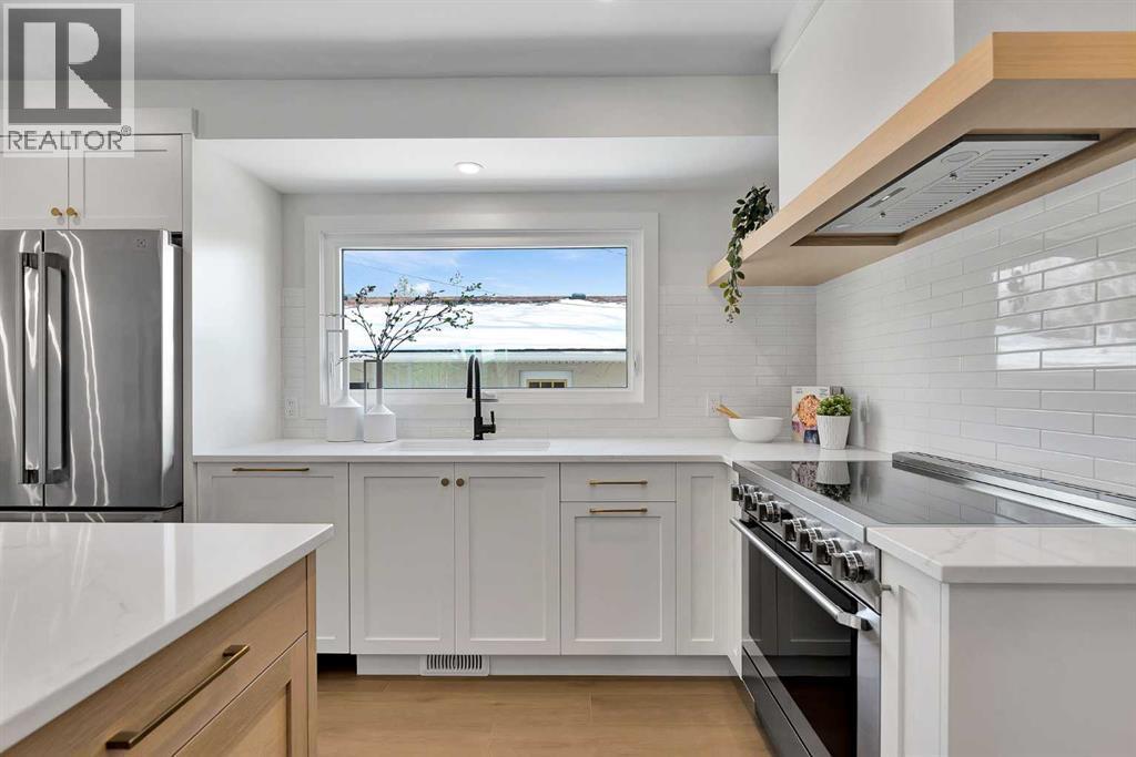 The more you look, the more you’ll fall in love with this exquisite Lake Bonavista home. Thefour-level split has been fully renovated with style and stellar attention to detail. Live the lakecommunity life, two blocks from the beach and backing onto green space. An upgraded exteriorhas a high-end look with new stonework, windows, and doors. Inside, natural light floods astunning main floor through full-height living room windows, while wide-plank floors anchor theairy aesthetic, connecting the open layout as you move into the custom kitchen. A massive eat-up island with hidden storage is the heart of the space. Quartz counters and subway tilebacksplashes pair with white oak shelving, black hardware, and a waterfall beverage bar inperfect minimalist elegance. High-end appliances include an induction range, French doorrefrigerator, beverage cooler, and a custom panel dishwasher. Integrated cabinets and drawersfor pantry items, recycling, spices and utensils add curated function. In the sunny dining area,glass-paned doors seamlessly transition to the outdoor living space. A mudroom with custombuilt-ins completes this level. Upstairs, the primary bedroom is decadent and serene. Theensuite offers dual sinks, built-in features, upscale finishes, and a gorgeous tiled shower. Thewalk-in closet is also custom. Two more bedrooms share a beautiful main bathroom in a family-friendly layout. Custom millwork throughout the home adds a luxurious touch. A rare find; thelower levels are equally lovely. A sunken living room with high ceilings and big windows faces acozy gas fireplace in a chic hearth. The hanging barn door reveals a quiet office and the laundryroom, which has a quartz vanity and a new washer and dryer. Another full bath with a walk-inshower means this could be a self-contained guest area. In the basement, plush new carpethighlights comfort, and premium finishes continue. A rec area is ready for your home theatre orgames zone, and there is fourth bedroom here. Built-in cupboards and a utility room provideplenty of seasonal storage. The home was remodeled from the studs out, and all plumbing andelectrical, the panel and the hot water tank, have been upgraded. Outside, the deck overlooks abig southeast lawn edged by trees and foliage. The roof, soffits, and fascia are new, and theheated, oversized double-detached garage has also been updated, as has the fence along thepaved alley. The home backs onto a treed, parklike corner of the school field near the gardenprogram area. In walking distance, the community association offers a range of year-roundactivities, and the beach and tennis courts are also nearby. The Promenade at Lake Bonavistahas groceries, shops, and restaurants available within a few blocks, and this community hasseveral great schools and parks. Commuting and visiting are easy, using primary routes likeAnderson Road and Deerfoot Trail, and Macleod Trail has a great selection of shopping anddining options. Call today. (id:6769
