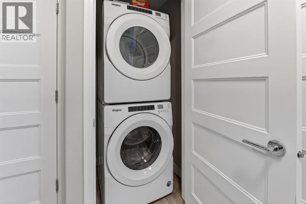 Welcome to Greenwich, one of Calgary’s most exciting and up-and-coming communities. This fully upgraded TOP FLOOR condo offers 2 bedrooms, 2 bathrooms, and over 800 SQFT of thoughtfully designed modern living. An open concept layout that seamlessly combines the spacious dining area with the large living room creates the perfect space for relaxation and entertainment. Offering 9 foot ceilings, in-floor heat that will keep you warm all winter and air-conditioning to keep you cool in the summer. The stunning kitchen is complete with upgraded stainless steel appliances, ample white cabinetry, quartz countertops, and large quartz island. The kitchen island serves as a focal point, ideal for hosting dinner parties or gathering with friends. Luxury Vinyl Plank flooring adds an elegant touch, while two primary suites situated on opposite ends of the condo ensure privacy and comfort for all. The true primary suite boasts a large size, a walk through closet and a walk-in shower. The second bedroom is a generous size with access to the 4 pc bathroom. This condo has breathtaking WEST facing views of the Rocky Mountains and an incredible amount of natural sunlight from the large windows. Enjoy the spacious patio complete with a gas line for your BBQ and plenty of room for outdoor furniture—perfect for relaxing and taking in beautiful summer sunsets. Additional features include in-suite laundry, a storage unit, and underground TITLED parking complete with additional storage cage for convenience. Located just steps away from the Calgary Farmers Market, shopping destinations, coffee shops, parks, pathways, outdoor skating rinks, and fitness facilities, this condo offers the epitome of urban living. Bowness Park is within easy reach, perfect for outdoor enthusiasts and Downtown Calgary a mere 18-minute drive away. (id:6769