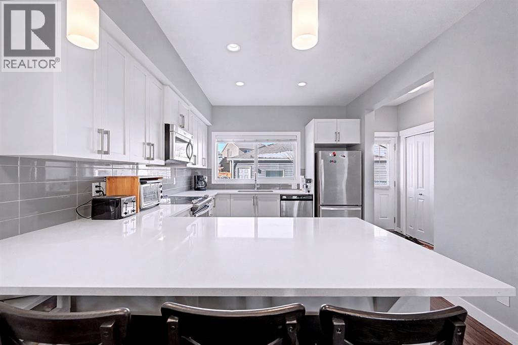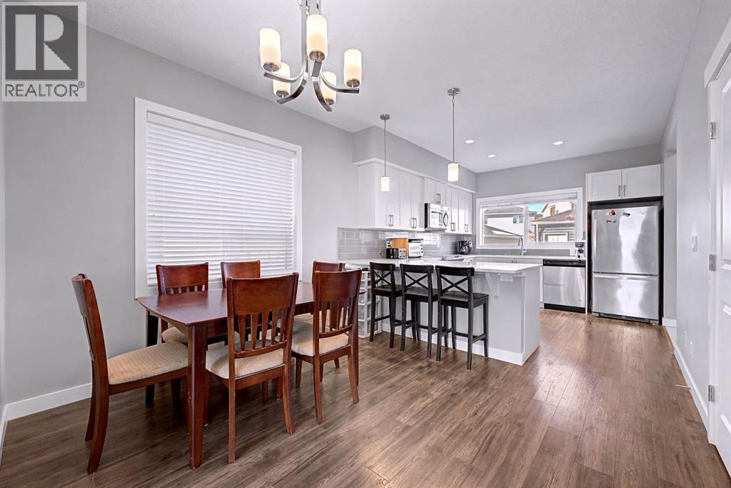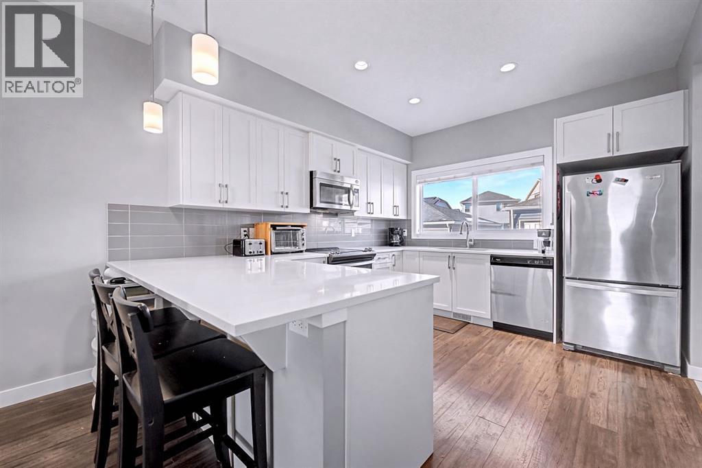 OPEN HOUSE, SAT (Mar 14) 1pm-4pm | Sunday (Mar 15) Open House CANCELED | NO CONDO FEES | END UNIT! | Welcome to this beautifully maintained end-unit 2-storey townhome with NO condo fees in the sought-after NW community of Nolan Hill, built by Shane Homes in 2015. Combining thoughtful design, modern finishes, and a functional layout, this home offers comfortable living with the added benefit of extra privacy as an end unit.Step inside to an inviting open-concept main floor where the bright living room is filled with natural sunlight from two large windows, creating a warm and welcoming atmosphere. The space flows seamlessly into the spacious dining area and well-appointed kitchen, perfect for both everyday living and entertaining. The kitchen features quartz countertops, stainless steel appliances, ample counter space, plenty of cabinetry, a breakfast bar, and a window overlooking the private backyard. Just off the kitchen you’ll find a convenient 2-piece bathroom, pantry, and direct access to the backyard, making outdoor gatherings and barbecues effortless.Upstairs, the home offers three comfortable bedrooms, including a bright primary retreat filled with natural light from two windows, complete with a walk-in closet and a private 3-piece ensuite. Two additional bedrooms, a 4-piece main bathroom, and stacked laundry conveniently located in the hallway complete the upper level.The fully finished basement offers approximately 617 sq. ft. of additional living space, featuring a 4-piece bathroom and plenty of storage, providing flexibility for a recreation area, home office, or additional living space.Step outside to enjoy your private fenced backyard, thoughtfully designed with both relaxation and functionality in mind. The yard features a beautiful crabapple tree, a concrete patio, and a wooden deck, creating the perfect space for summer barbecues, morning coffee, or relaxing evenings outdoors. The backyard also provides direct access to the double detached garag e with convenient alleyway access, offering secure parking and additional storage.Located in the vibrant community of Nolan Hill, this home offers incredible convenience and lifestyle amenities. Enjoy nearby walking paths, scenic ponds, playgrounds, and green spaces, perfect for evening strolls, morning runs, or spending time outdoors with family and pets. Everyday essentials are just minutes away with Costco, restaurants, and shopping centres only about 5 minutes away, while quick access to Stoney Trail makes commuting across the city simple and efficient.This is a fantastic opportunity to own a modern, move-in-ready home with no condo fees in one of Calgary’s desirable northwest communities. SELECT PHOTOS ARE VIRTUALLY STAGED. (id:6769