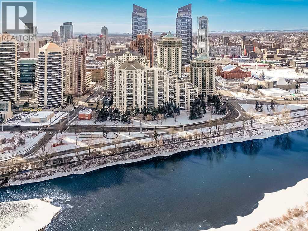 Welcome to this exceptional, updated TWO-BEDROOM, TWO-BATH plus DEN residence at The Marquis, where sweeping panoramic Bow River vistas greet you from both the spacious living area and the primary bedroom. The large patio is the perfect place to relax or entertain while taking in the breathtaking scenery. Spanning nearly 1,100 square feet, this suite combines space, style, and convenience with TWO side-by-side parking stalls and a storage locker. The open-concept living space features a corner gas fireplace, a dining area ideal for entertaining, and a modern kitchen with quartz countertops, recessed lighting, a raised breakfast bar, and stainless steel appliances. The bright den, with its glass wall, offers a perfect workspace or reading retreat. The primary bedroom boasts a renovated ensuite with a walk-in shower, double sinks, and a separate makeup area with built-in mirrored lighting. The second bedroom also enjoys river views, complemented by a four-piece main bathroom and in-suite laundry. Remote-controlled window coverings add an extra touch of convenience. Residents enjoy the full Marquis lifestyle, including secured visitor parking, bike storage, updated common areas, exercise facilities, and monitored security. Located just steps from the Bow River, the downtown core, and Kensington’s shops, cafés, and amenities, with the LRT station only a block away, this home offers an unbeatable combination of luxury, convenience, and natural beauty. (id:6769