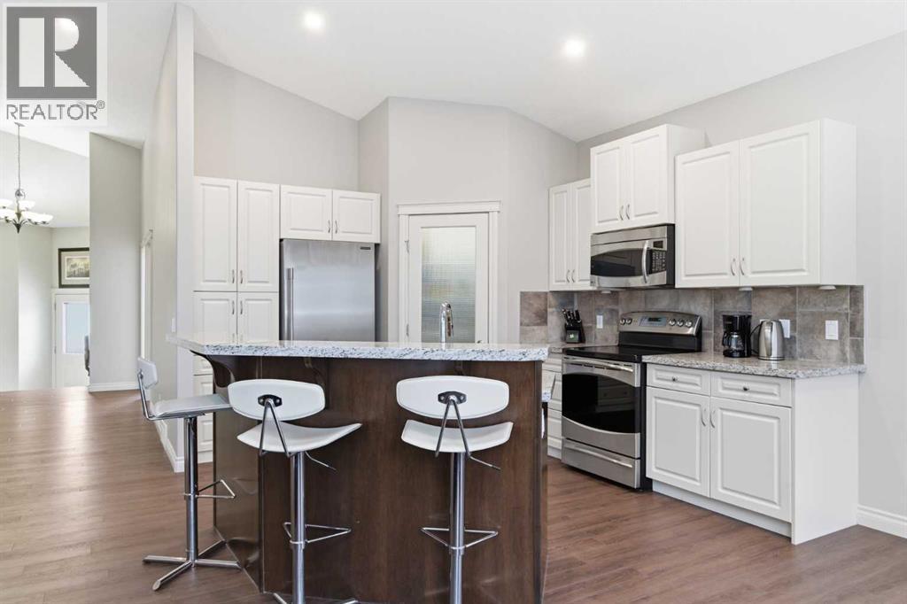 Beautiful and ideally located this 5 bedroom bungalow is well maintained and move in ready! Whether you are a empty nester or a family you will love this functional open concept layout from the moment you come into the vast entryway. The impressive main floor features a modern kitchen with loads of cabinets and drawers, quartz countertops, island with breakfast bar, pantry and stainless steel appliances (brand new dishwasher!) all open to a good sized dining area and the spacious living room that centers around a cozy fireplace for those cold days and evenings. The expansive windows are tinted for extra privacy or if you wish take off the tint to let the beautiful sunshine in. No need to worry about the heat in the summer with the central air conditioning! Completing the main floor is a 4pc bathroom, laundry room and 3 spacious bedrooms including the primary bedroom where there is plenty of room for a king bed and extra furniture. Off the primary you will find a large walk-in closet and a 4pc en-suite. The finished basement adds more living space with the expansive family and rec room area, 2 more huge bedrooms, a storage room or maybe make it into a work out room or craft room and a 3pc bathroom that will be completed with a shower before possession day. Step out onto your lovely deck that has a gas BBQ line and relax in your landscaped back yard. Here you will also find a shed for those extra items you don't want to store in the heated garage. This home is located near to walking paths, lake, playground, schools and other amenities. You won't want to miss out on this home! (id:6769