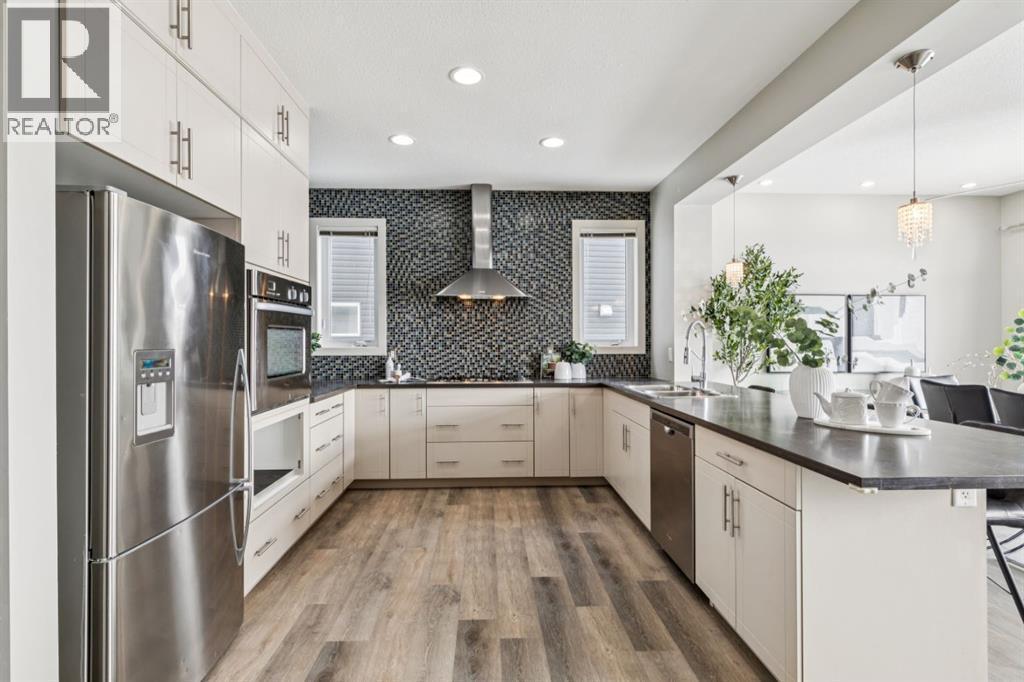 Welcome to this two-storey home in the sought-after SE community of Copperfield. Perfectly designed for both comfort and style, this impressive residence offers a WALKOUT BASEMENT WITH OVERSIZED WINDOWS AND SOARING NINE-FOOT CEILINGS, creating an open and airy feel rarely found in homes of this kind. The main floor showcases BRAND NEW VINYL PLANK FLOORING, offering both durability and modern style throughout the primary living spaces. At the heart of the home is a gourmet u shaped kitchen designed to featuring a GAS RANGE and kitchen is thoughtfully positioned to overlook the dining area, creating an open and connected space that is perfect for everyday living and entertaining. High-end lighting fixtures throughout the home, including two stylish ceiling fan units, add a refined designer touch while enhancing comfort and ambiance. At the rear of the home, the south-facing orientation floods the main living areas with natural light throughout the day, creating a warm and inviting atmosphere year-round. High-quality windows are engineered for energy efficiency, helping keep the home cooler during the summer months and warmer through the winter for exceptional comfort in every season. Upstairs, vaulted ceilings add a sense of grandeur and openness. The upper level offers three bedrooms, including a very spacious primary suite complete with a walk-in closet and a 4-piece ensuite bathroom, providing a comfortable and private retreat. A large bonus room on this level adds valuable additional living space, ideal for a family lounge, media room, or home office. Solid wood doors throughout the level reflect quality craftsmanship and durability. The home also offers excellent practicality with a larger insulated garage that provides two additional feet of space, along with abundant storage options throughout the property. Outdoor living is equally impressive with a spacious two-tier deck system extending across both the upper and lower levels, providing the perfect setting fo r entertaining or relaxing. The REAR WALKOUT LEVEL BACKS ONTO A BEAUTIFUL NATURAL GREEN SPACE, offering added privacy and a peaceful backdrop rarely found in suburban living, while concrete stairs run along the side of the property for convenient access between levels. The walkout basement is already roughed-in with plumbing, offering an ideal opportunity for future development tailored to your needs, and the laundry room is conveniently plumbed as well. Ideally located just steps from nearby schools, this home also benefits from Copperfield’s excellent access to amenities parks, pathways. Shopping, restaurants, and everyday services are just minutes away at 130th Avenue, while Seton’s urban district of shoppes, theatres, high school, and YMCA are a short trip down 52nd. Looking for a Walkout? this could be the one! (id:6769
