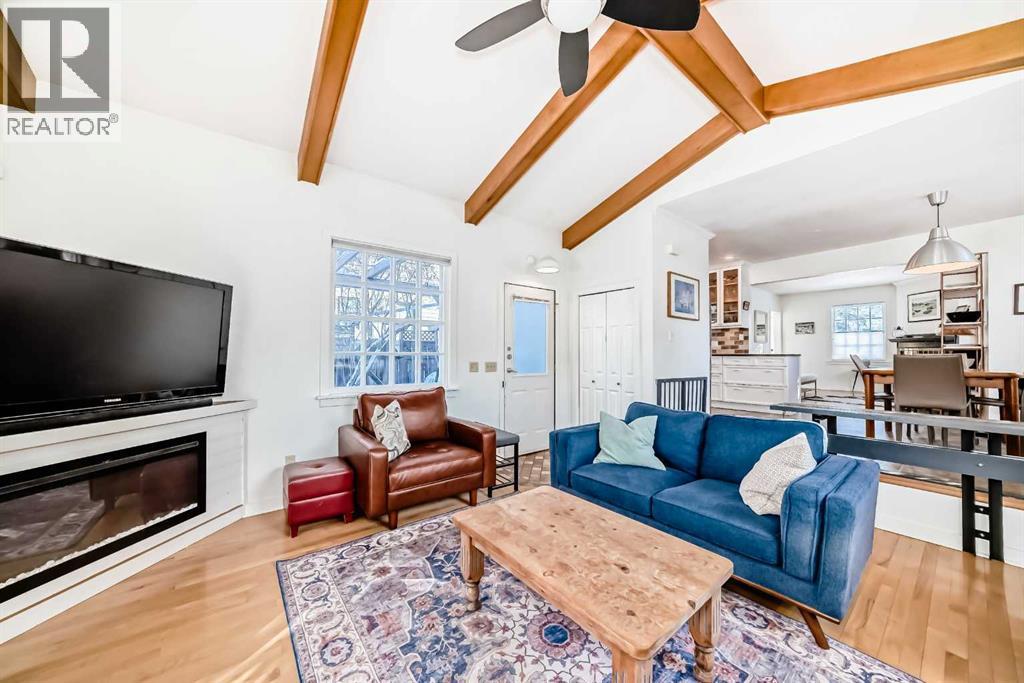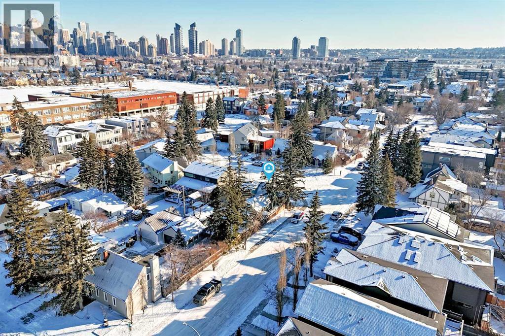 Prime location in sought-after West Hillhurst! This exceptional 50’ x 100’ R-CG corner lot is perfectly situated on one of the rare cul-de-sacs in West Hillhurst, offering both privacy and unbeatable convenience. Just minutes from downtown Calgary, the river pathways, the vibrant shops and restaurants of Kensington, top-rated schools, parks, and the outdoor pool—this location truly offers the best of inner-city living. This charming 4-bedroom, 3-bathroom home is filled with warmth and character and is flooded with natural light from the moment you step inside. Lovingly maintained with numerous upgrades over the years, it clearly reflects pride of ownership throughout. The main floor welcomes you with a bright front living room featuring a cozy corner fireplace, a renovated kitchen with granite countertops and newer appliances, and a full bathroom complete with a relaxing jetted tub. Two spacious bedrooms complete the main level. Toward the rear of the home, a stunning sunken family room showcases open beam ceilings and two fireplaces—creating the perfect space for relaxing or entertaining. Upstairs, you’ll find a generous primary bedroom, a fourth bedroom, a full bath, and a skylight that fills the stairwell with natural light. The fully developed lower level offers even more living space with a comfortable family room, media/games room, and a third full bathroom. Step outside through the French doors from the family room and enjoy the summer breeze in your beautifully landscaped, private backyard retreat, complete with a hot tub—ideal for relaxing or hosting friends and family. The oversized single garage is extra deep at 13’4” x 27’4”, and the long driveway along the east side of the lot provides additional off-street parking—a rare and valuable feature in this desirable inner-city neighbourhood.The R-CG zoning and corner lot create excellent future redevelopment potential, making this property equally attractive for homeowners, investors, or builders looking to take advantage of this prime inner-city location. Possession can be quick! (id:6769