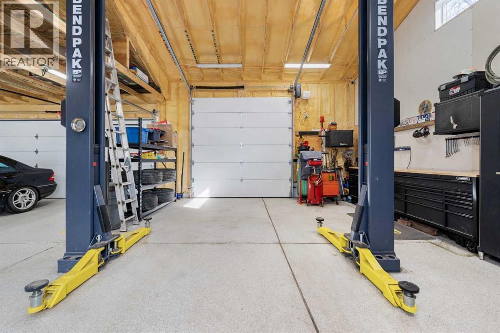 This beautifully renovated home has been completely updated inside and out and wrapped in durable Hardie Board siding with Smartboard trim, featuring all new triple-pane windows throughout for maximum efficiency and comfort. As you enter the home you are greeted with a fabulous kitchen designed for both style and function with natural quartz countertops, a gas cooktop in the center island, built-in oven and microwave, custom cabinetry with under-mount lighting, a beautiful tile backsplash, and ceramic tile flooring perfect for all your culinary desires. Adjacent to the kitchen is the warm and bright living room which offers engineered hardwood flooring, pot lighting, a cozy gas fireplace with black slate tile surround and Hunter Douglas honeycomb blinds which are featured throughout the home. The dining area features patio doors leading out to the front patio, creating a bright and welcoming space for entertaining. The main bathroom includes tile flooring, quartz countertops, custom cabinetry, and a tub with floor-to-ceiling tile surround making for a truly refreshing space. Additionally on the main level you will find two large bedrooms, including the primary bedroom, both featuring custom closet built-ins for excellent storage. Downstairs you will feast your eyes on a fully finished basement that offers additional living space with carpet throughout, a large family room, two more spacious bedrooms, and a laundry room with sink. For the full spa-like experience the downstairs bathroom is a true wet bathroom, fully finished with floor-to-ceiling tile throughout. The real standout is the 24’ x 40’ oversized 3.5-car garage built for car lovers and serious projects. This space features extended ceiling heights (10’ and 15’), a car lift, mezzanine storage, spray foam insulation, epoxy floor coating, natural gas furnace, and 200-amp electrical service. To add to the stunning list of renovations this home hosts a new roof and shingles on both the house and the garage as well as all new electrical in the house including panel, wiring, plugs and lighting. In addition you will find a new 200-amp electrical service, all new plumbing, new HVAC lines to each bedroom, air conditioning, a hot water heater replaced during renovation (2018) and new drywall and paint. Outside you will find a new fence and gates on the east side, adding to your enjoyment of your home through all the many seasons, as well as new eavestroughs, soffits and downspouts ensuring the exterior of your home is well taken care of. To finish off this list of amazing modernizations this home offers spray foam insulation (garage and laundry room) with Rockwool insulation throughout the rest of the house, all new doors and hardware (house, closets, and garage) and an installed Lorex security system. Look no further for a rare opportunity to own a fully renovated home with a serious garage setup — perfect for anyone who wants a comfortable home and the ultimate space for cars, projects, and hobbies. (id:6769