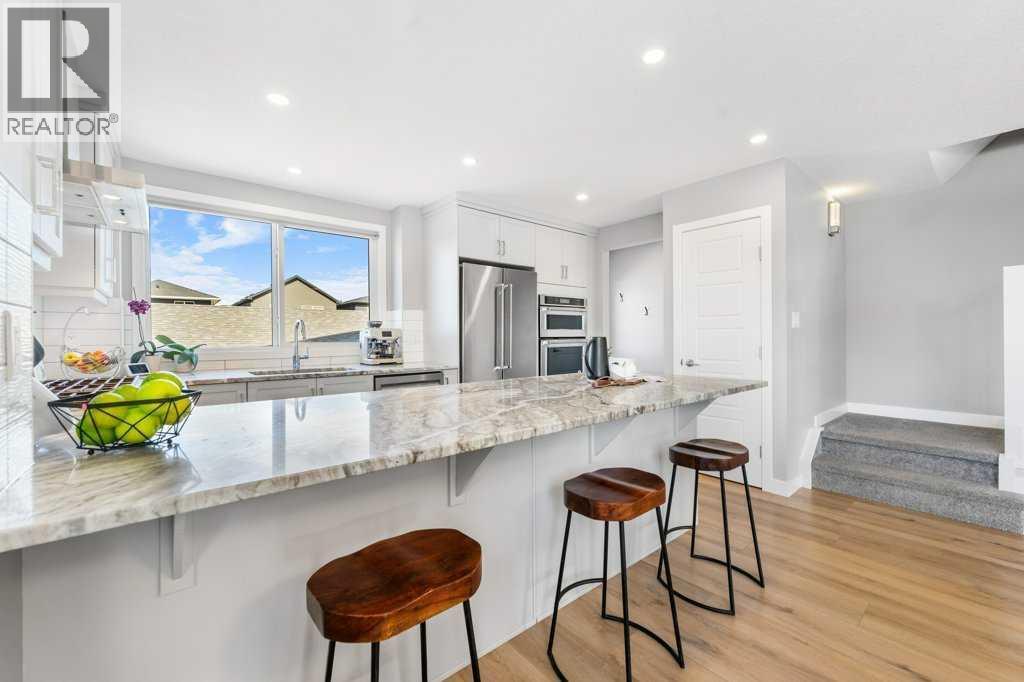 If you’ve been looking for a home that just feels right, this one is definitely worth a look. Bright, open, and airy from the moment you walk in, this home is filled with natural light thanks to its corner lot placement and southwest exposure. The layout flows effortlessly, and the neutral luxury vinyl plank flooring throughout the main level keeps everything feeling warm, clean, and modern. The main area features a cozy lower-level family room with an electric fireplace and mantle — a great spot to unwind or host. Just up from there, the kitchen and dining area take center stage. The kitchen is upgraded with a built-in premium appliance package, granite countertops, and ample storage, making it both functional and great for entertaining.Upstairs, you’ll find a spacious primary bedroom with a walk-in closet and a bright, upgraded 5-piece ensuite, along with two additional well-sized bedrooms, a full bathroom, and convenient upper-level laundry. The basement adds even more flexibility with a wet bar, space for a comfortable TV or lounge area, and a separate nook that works perfectly as a home office.Built with comfort and efficiency in mind, the home features 12 solar panels, triple pane windows, central AC, and a tankless hot water system — helping keep things running efficiently year-round.Outside, enjoy a welcoming front porch, a private 10x10 patio, and a low-maintenance yard with vinyl fencing. The oversized detached garage with 220V power offers plenty of room for parking, storage, or a workshop setup. Finished with exterior Gemstone lighting and located in the family friendly community of Legacy, you’re close to great schools including the Catholic K–9 Living Spirit School, All Saints High School, and Legacy Montessori Academy, along with pathways, parks, and everyday amenities.Whether you’re a growing family or a young professional, this home checks all the right boxes. Book your private showing and see it in person — you won’t want to miss it. (id:6769