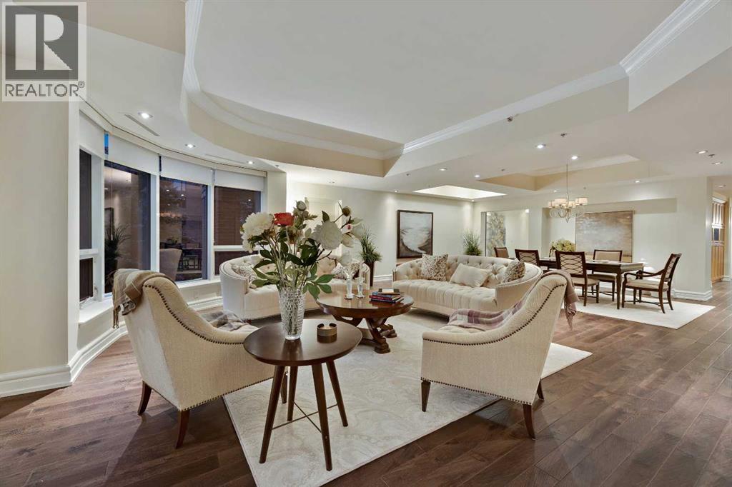Princeton Grande in Eau Claire offers one of the premiere executive addresses in Calgary. With first class concierge service, private elevators, amazing amenities, two guest suites and a location that overlooks the river pathways and Prince’s Island Park, this is the pinnacle of luxury urban living. The impressive design and subtle luxury are evident and amplified by the recent modernization and design updates that have only been lightly enjoyed since being completed a few years back. The appointments include high quality finishings, extensive custom built-ins, and modernized paint, flooring and décor throughout. Enjoy the urban park setting from your massive covered balcony facing the river or take in the city skyline form your other covered balcony on the opposite side of the suite. You get the best of both worlds with a floorplan that is ideal for entertaining yet cozy enough for those quiet family times. There is a formal living area surrounded by windows overlooking the park and a gas fireplace for ambiance. The formal dining area will easily accommodate a table for 10-12 and also takes in the park views. The gourmet kitchen is spacious and offset from the living area for privacy when you need it. Adjacent to that is a south facing breakfast nook and outdoor terrace which captures the city views as well as a cozy family room and another gas fireplace. There is a separate laundry room, a storage area/pantry and seemingly endless closets and storage spaces. This home includes a built-in speaker system, central vacuum system, high coffered ceilings, large bright windows, a guest bedroom that includes an ensuite, two titled parking stalls and a fully enclosed titled storage locker. The amenities of the luxury residence include 24 hour security/concierge service with closed circuit monitoring, front seating area with fireplace, conference board room, temperature controlled wine storage lockers and tasting room, a social room with full kitchen/TV/terrace, two exercise rooms, a yoga room, steam room all with showers and change rooms, underground car wash bay and separate freight elevator for move in/move out. The location is extraordinary and the residence is outstanding. Come and see for yourself today! (id:6769
