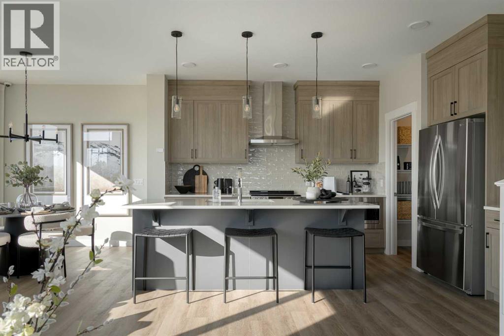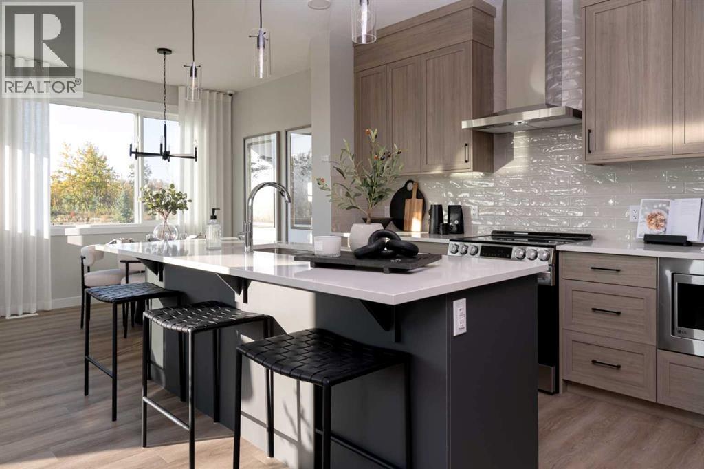 With a west-facing backyard that backs directly onto green space, this brand new home in Wedderburn makes the most of its location, offering evening sun and views of the Rocky Mountains. Anthem’s Front Drive 110 model offers 1,971 sq. ft. of thoughtfully designed living space with 3 bedrooms, 2.5 bathrooms, and a flexible layout for family life. The main floor features a front den, a spacious great room with a fireplace, and a dining area that opens onto a rear deck with a gas line rough-in for future barbecues. The kitchen blends modern style with everyday function, including quartz countertops, quality cabinetry, an undermount Silgranit sink, and a premium stainless steel appliance package with a gas range. Upstairs, a central bonus room creates separation between the two large secondary bedrooms and the primary suite, which includes a walk-in closet and a private ensuite with dual sinks and a tiled shower. The upper floor also includes a full main bath, laundry room, and plenty of storage. A side entrance and 9-foot basement provide options for future development. Located in the growing community of Wedderburn, close to schools, playgrounds, and future retail, this home offers lasting value in a family-friendly setting. (Rendering and photos are representative) (id:6769